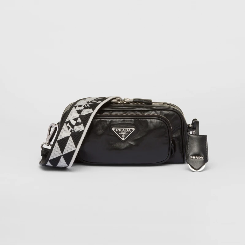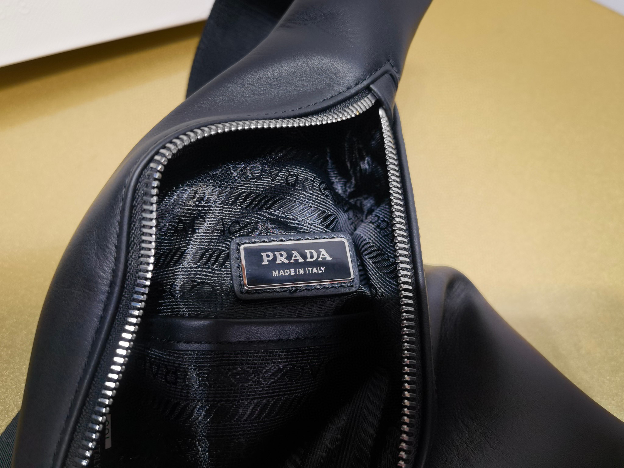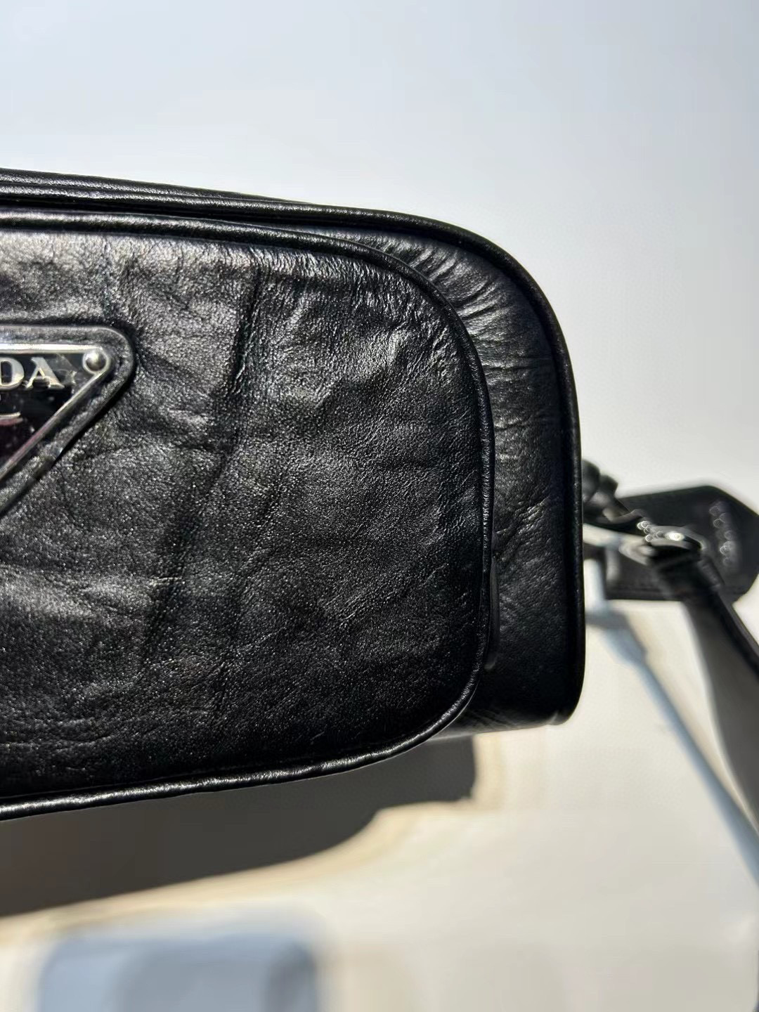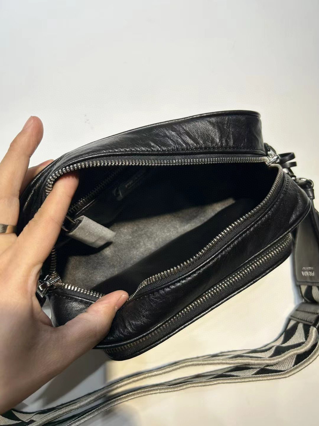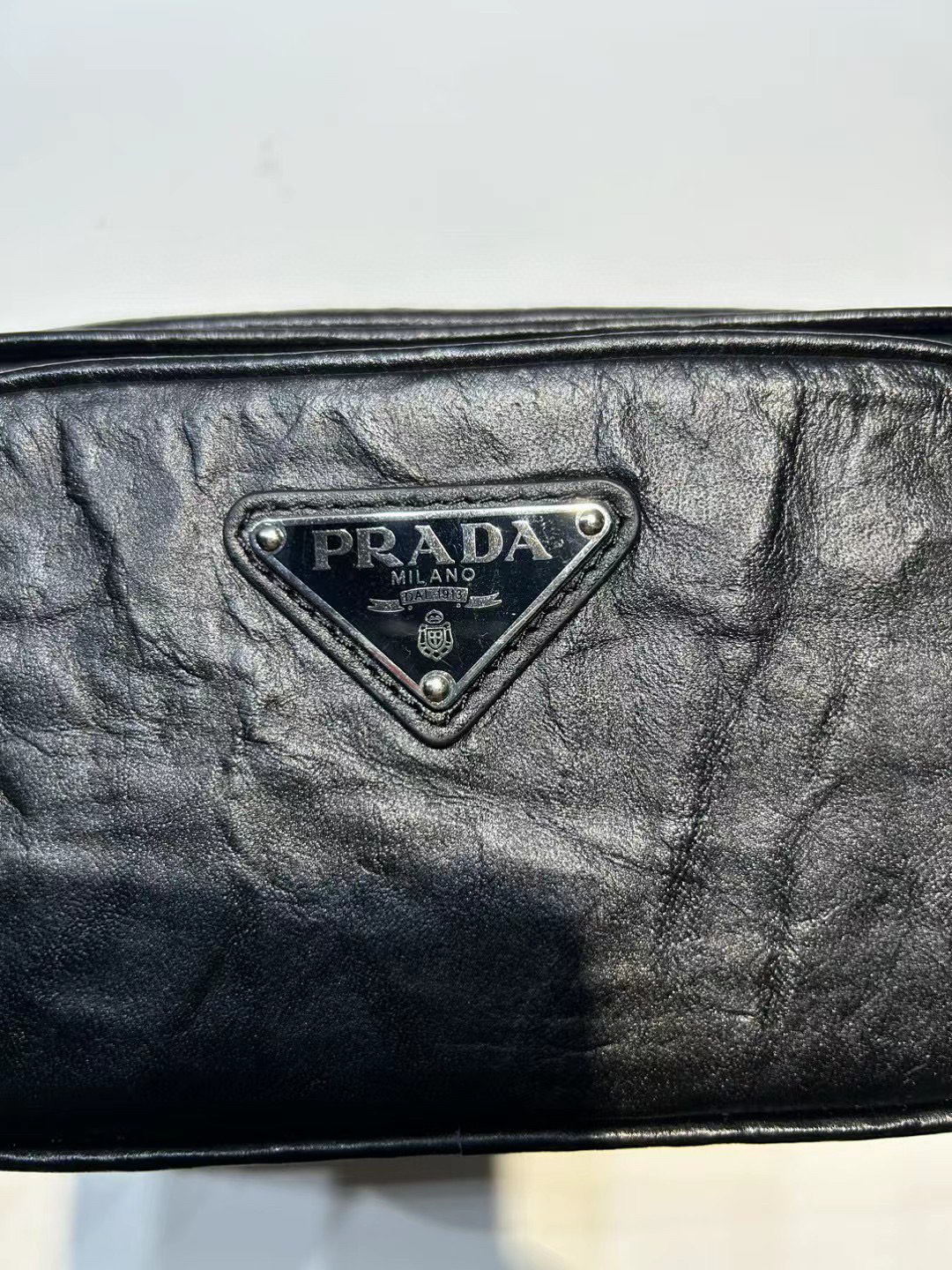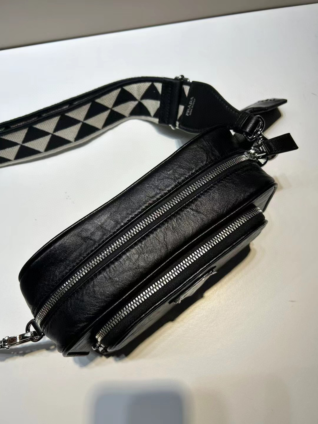 Prada NIGO Black Leather Long Shoulder Strap Crossbody Bag #nigo57423
