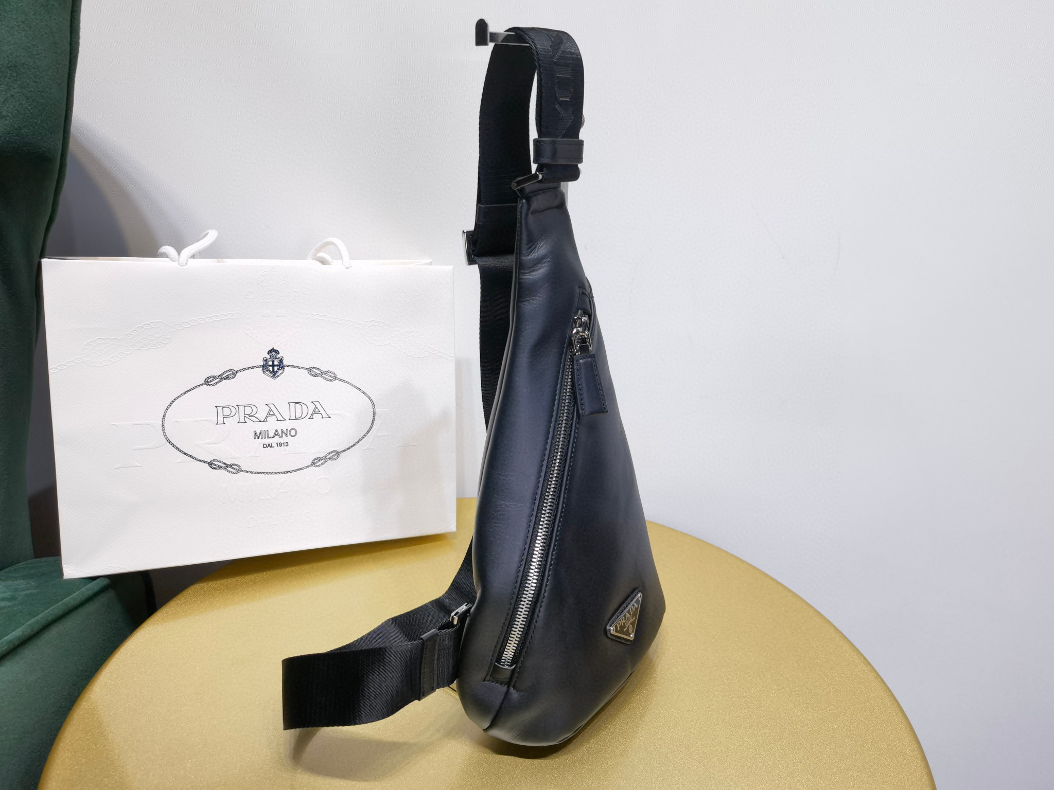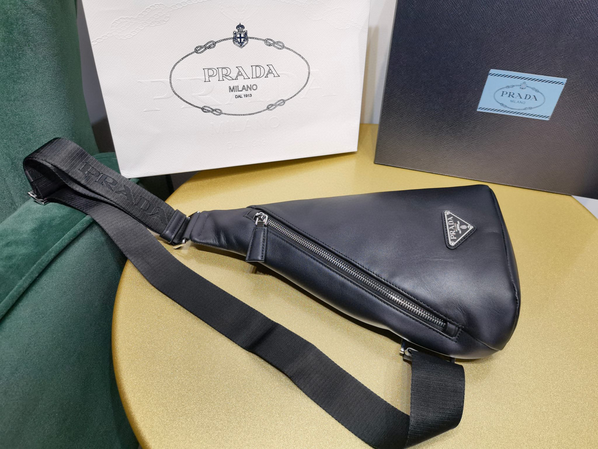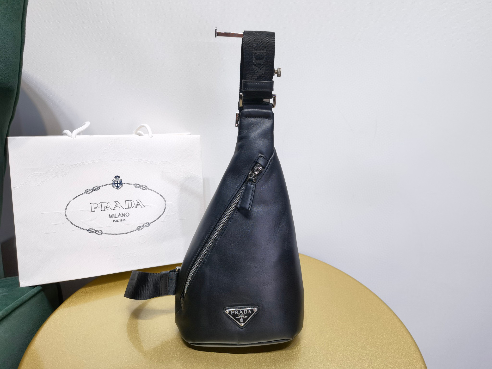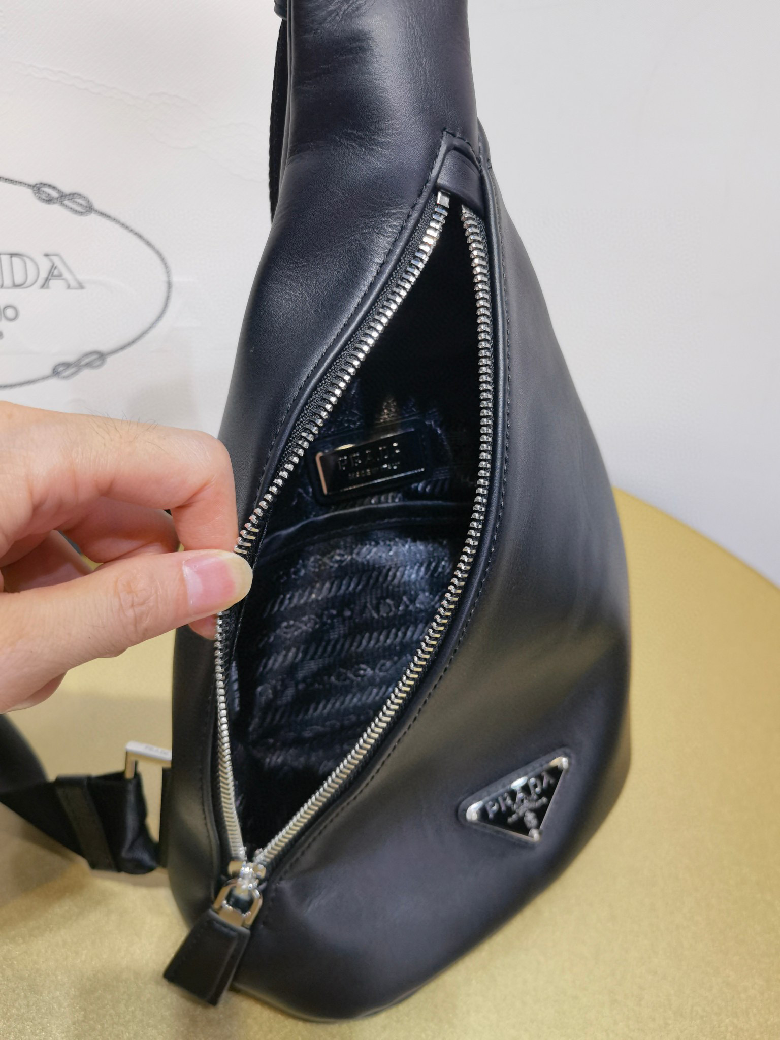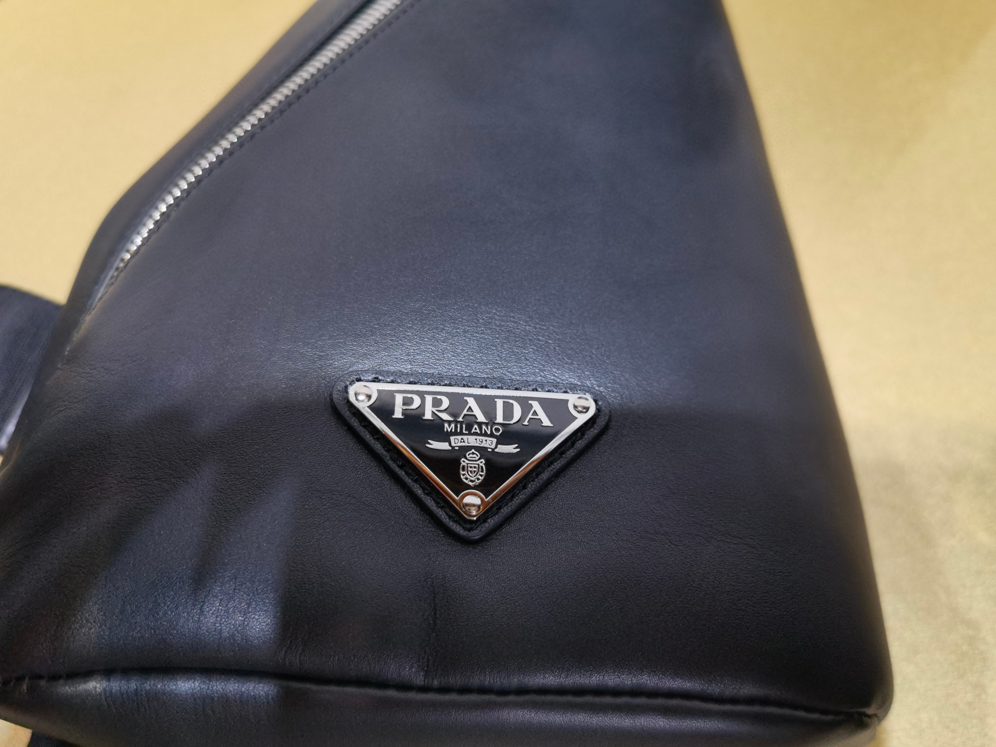 Prada NIGO Black Leather Long Shoulder Strap Crossbody Bag #nigo57423