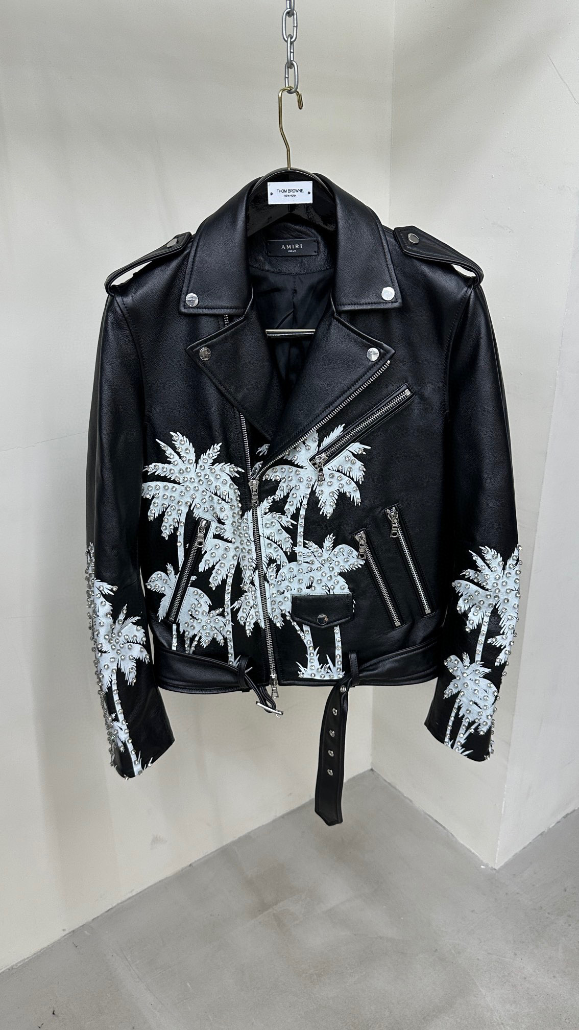 NIGO AMIRI Men's Autumn and Winter Diamond Printed Short Long Sleeve Leather Jacket Ngvp #nigo6947