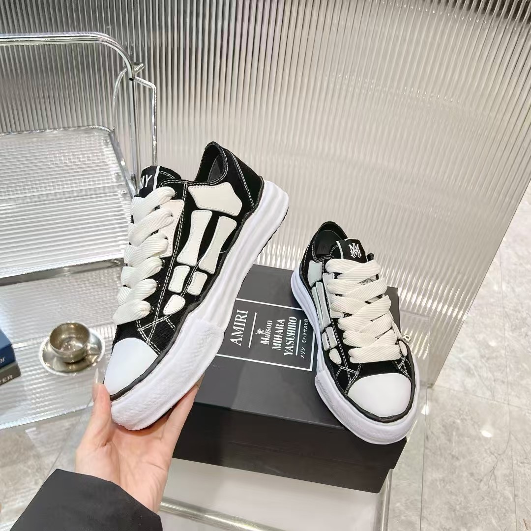 NIGO Maison Mihara Yasuhiro x AMIRI Men's and Women's Seasonal Black and White Low Top Canvas Lace-Up Casual Shoes #nigo75442