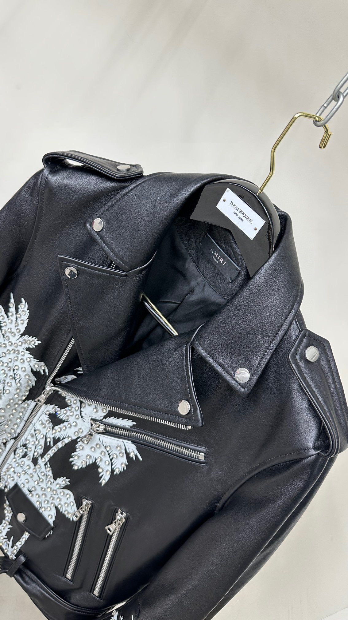 NIGO AMIRI Men's Autumn and Winter Diamond Printed Short Long Sleeve Leather Jacket Ngvp #nigo6947