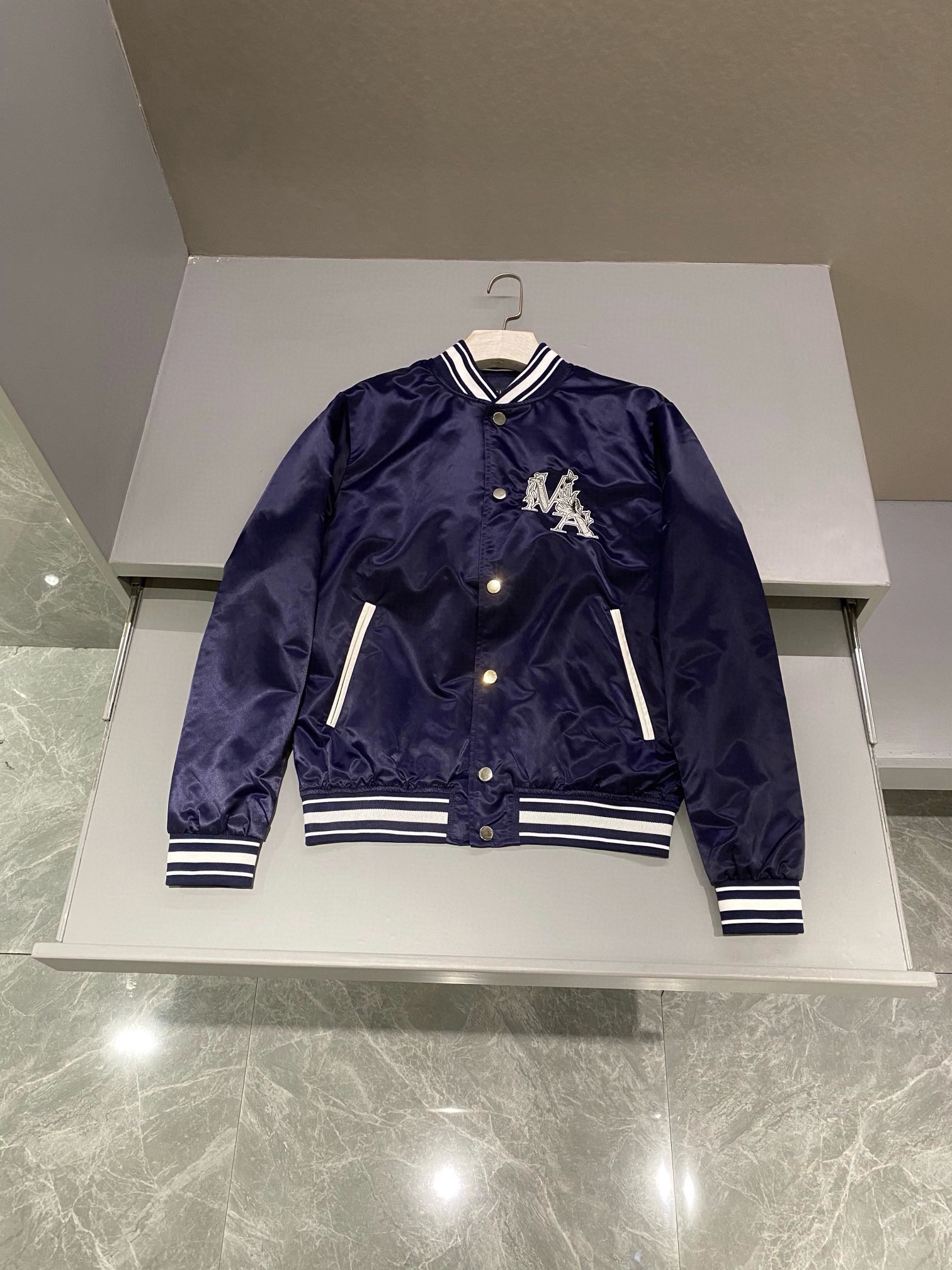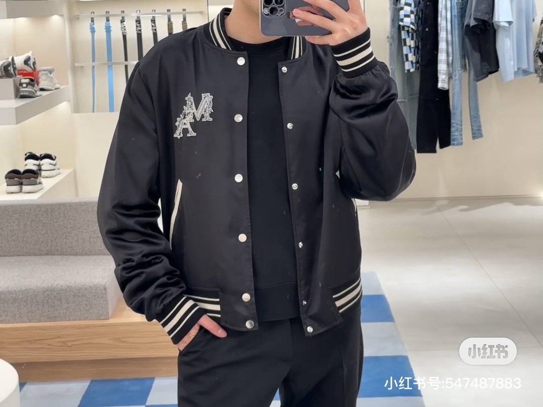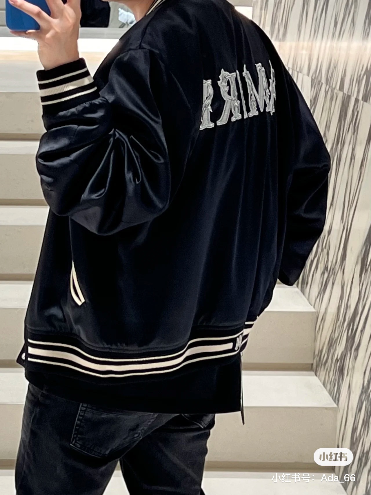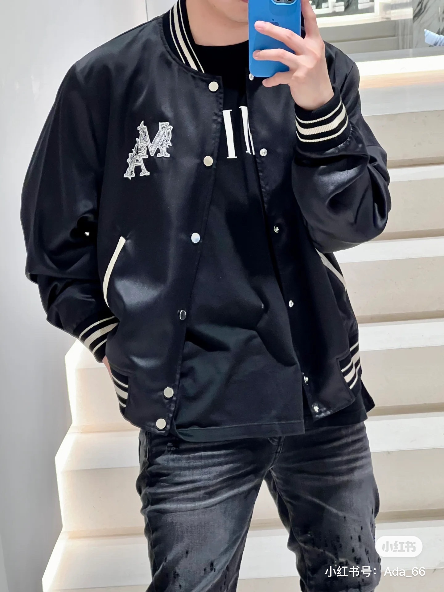NIGO AMIRI Men's Spring & Fall Satin Nylon Embroidered Logo Zipper Baseball Long Sleeve Jacket #nigo73273