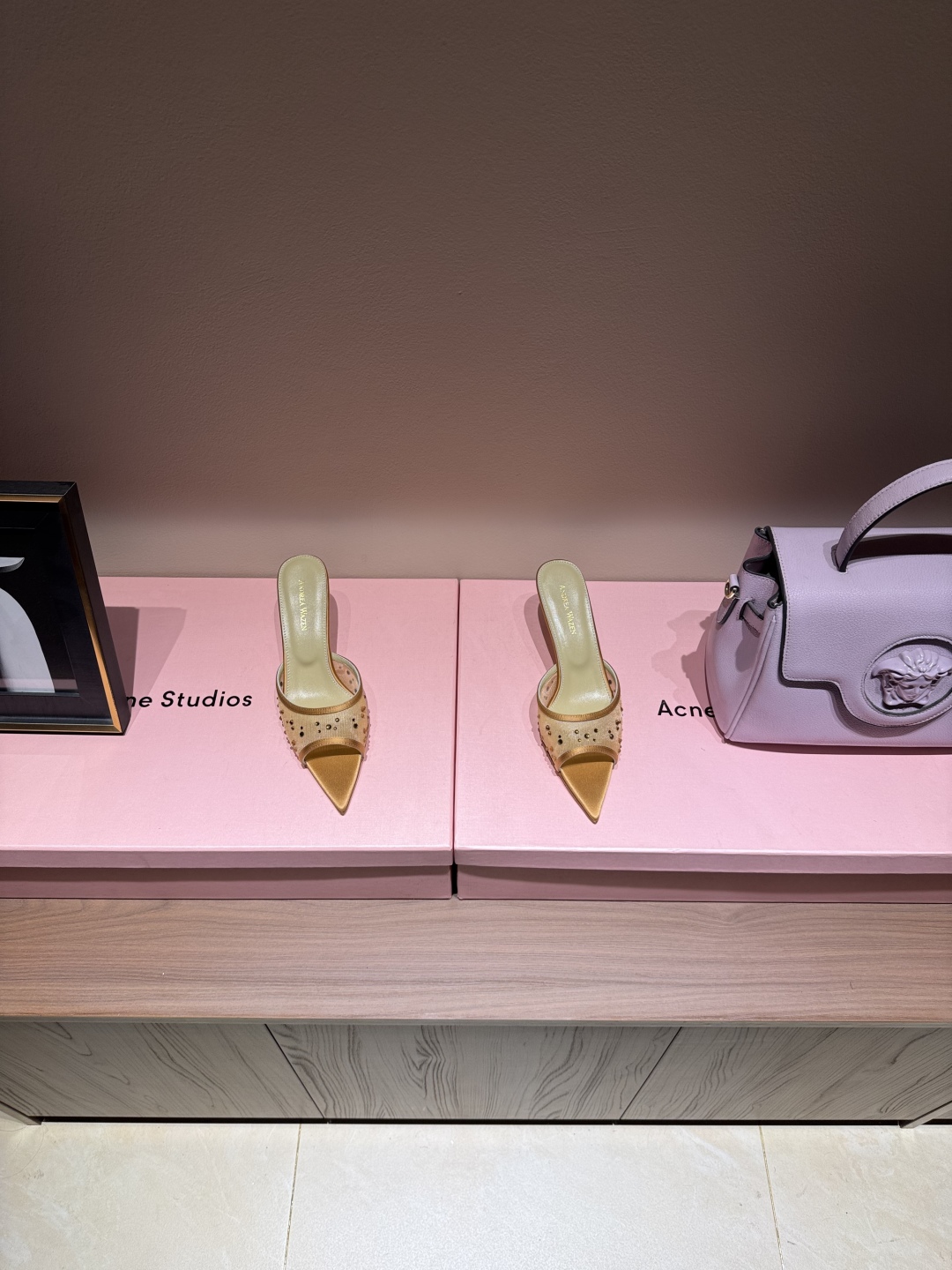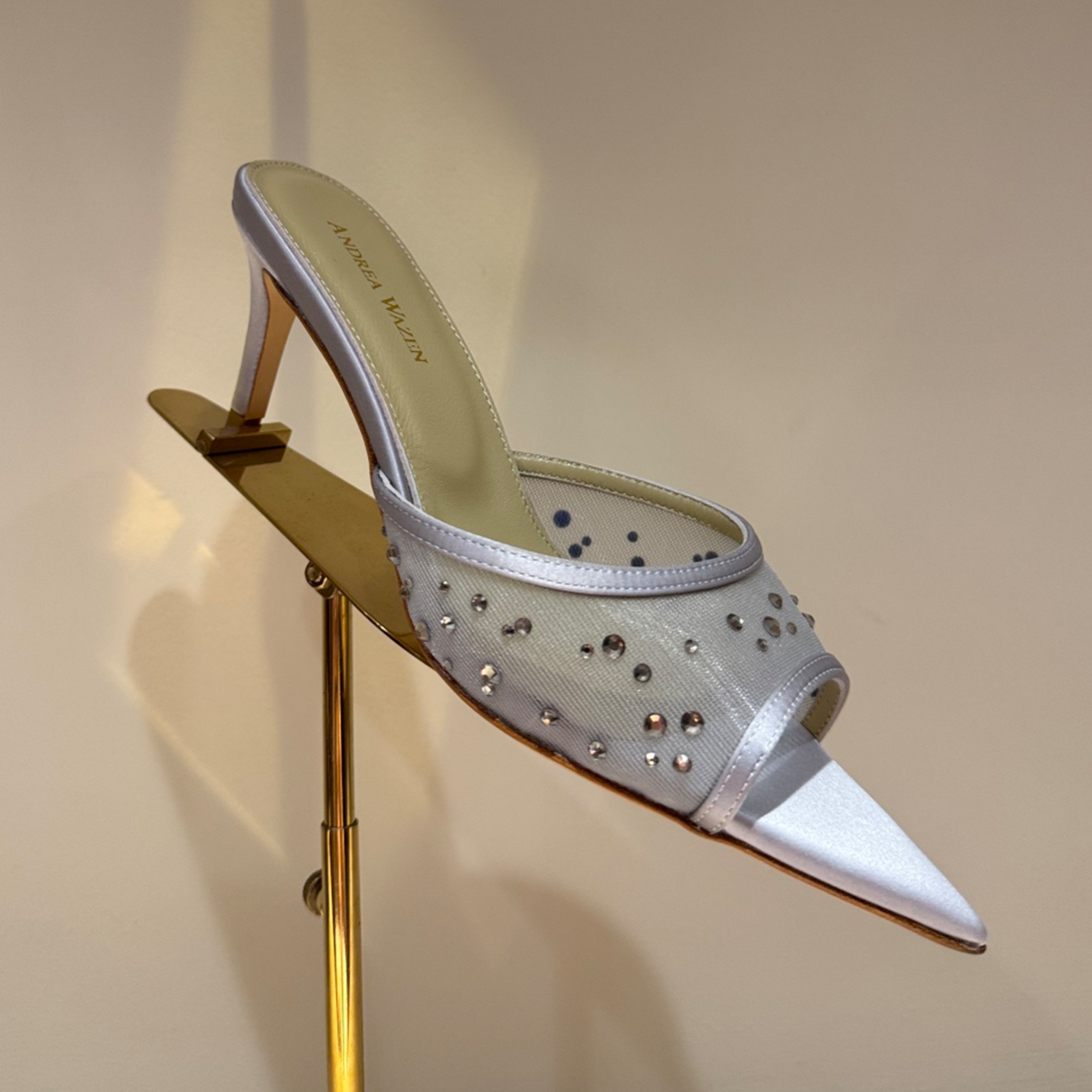 NIGO Andrea Wazen Women's Summer Rhinestone Lace Mesh High Heels Fine With Pointed Temperament Sandals Slippers Heel Height 6.5cm Ngvp #nigo1496
