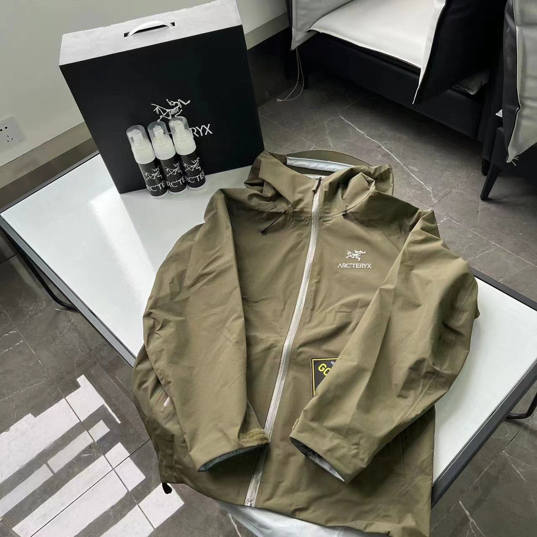 Arcteryx Men's Autumn and Winter Solid Color Waterproof Fabric Hooded Zipper Long Sleeve Jacket #76354