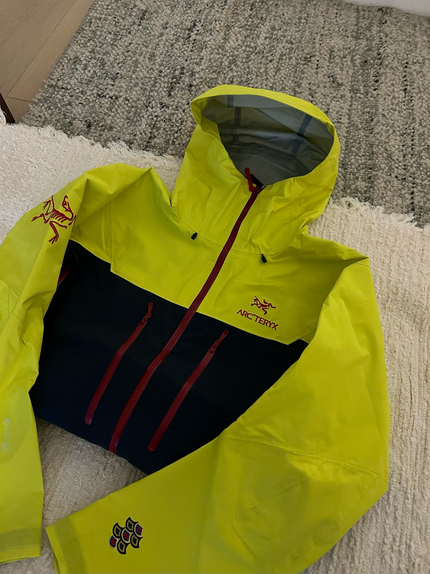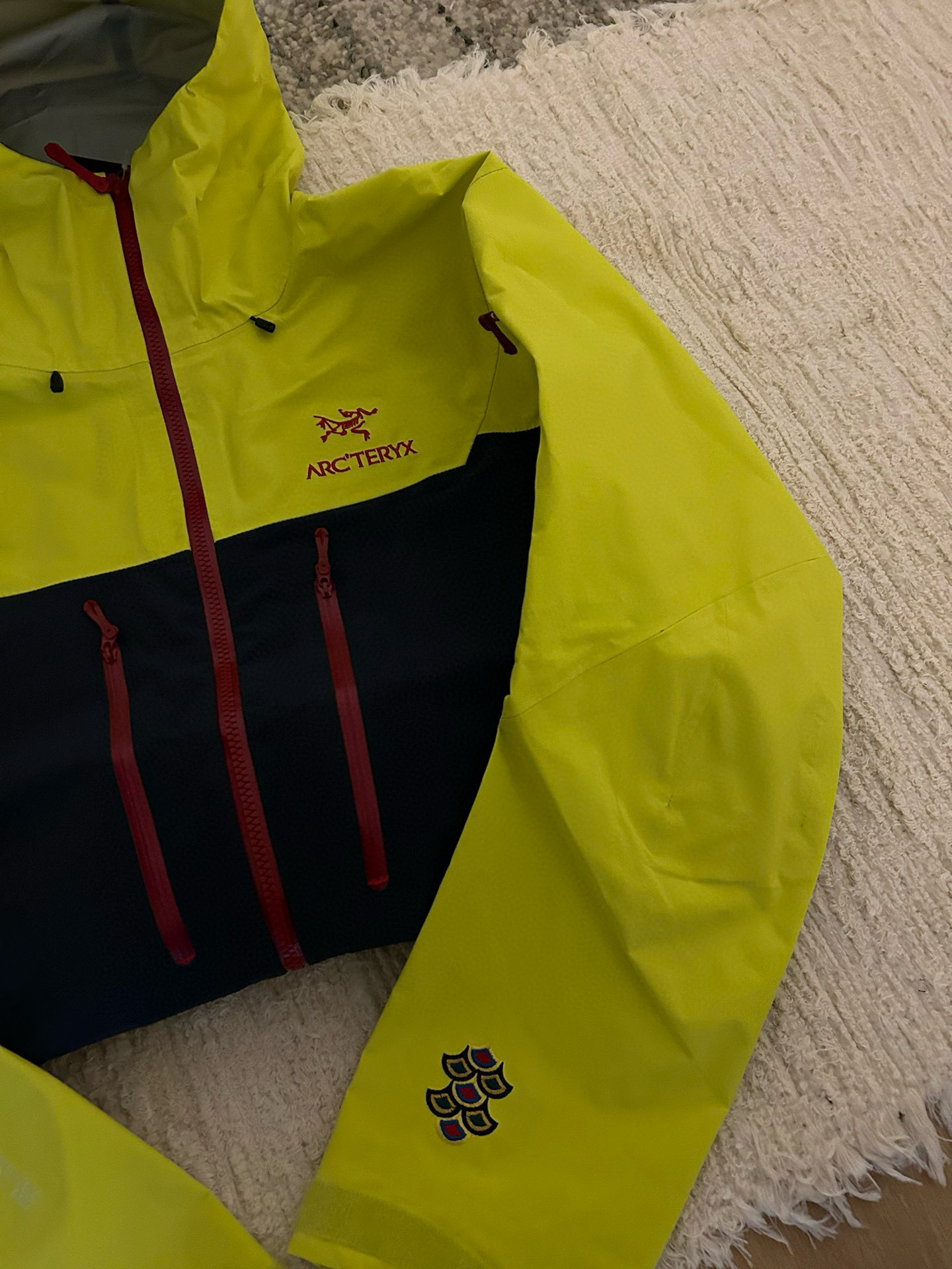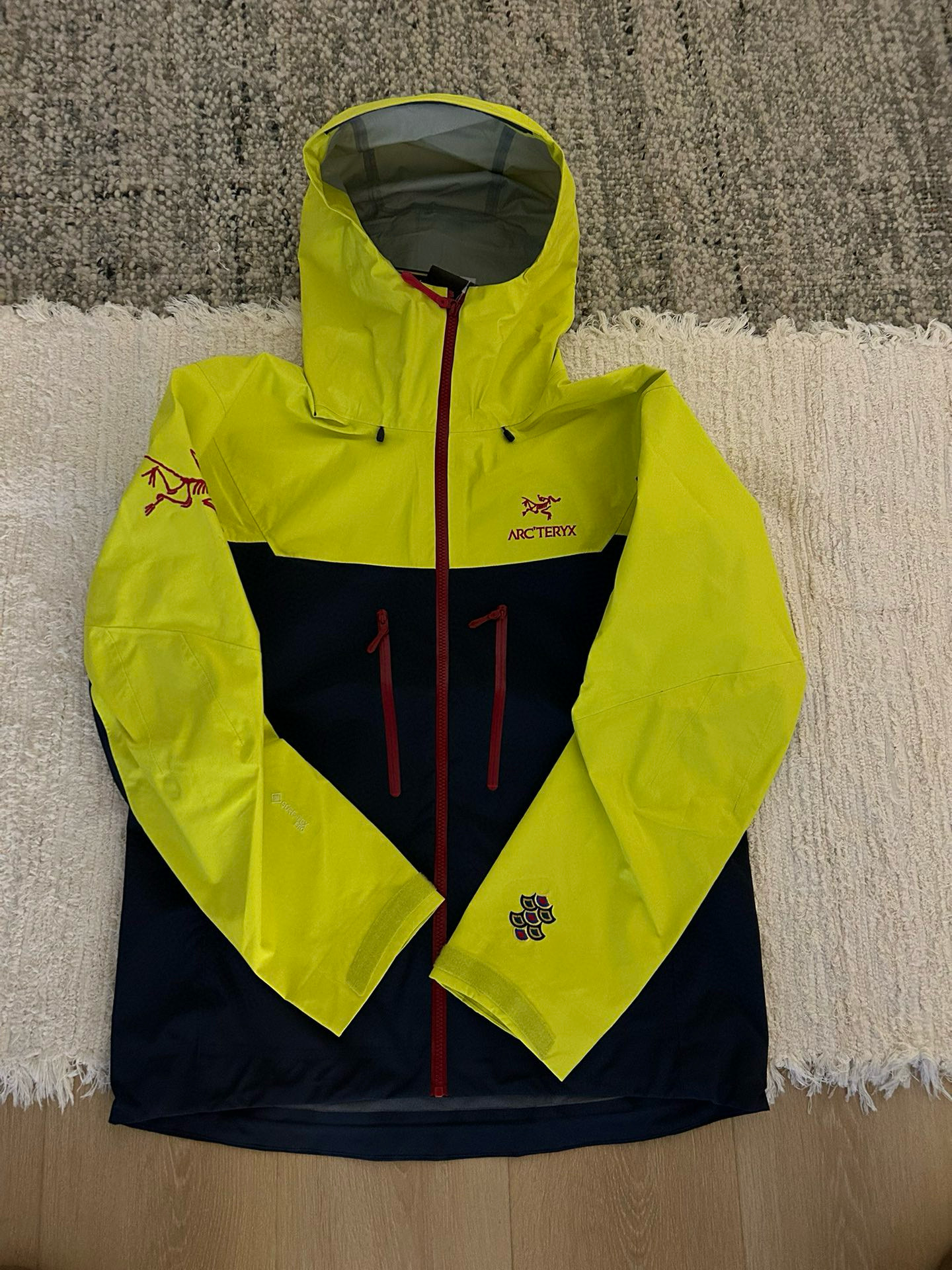 NIGO Arcteryx Men's Spring and Autumn ALPHA SV GORE-TEX Year of the Dragon Series Patchwork Outdoor Hooded Waterproof Windproof Jacket #nigo98372