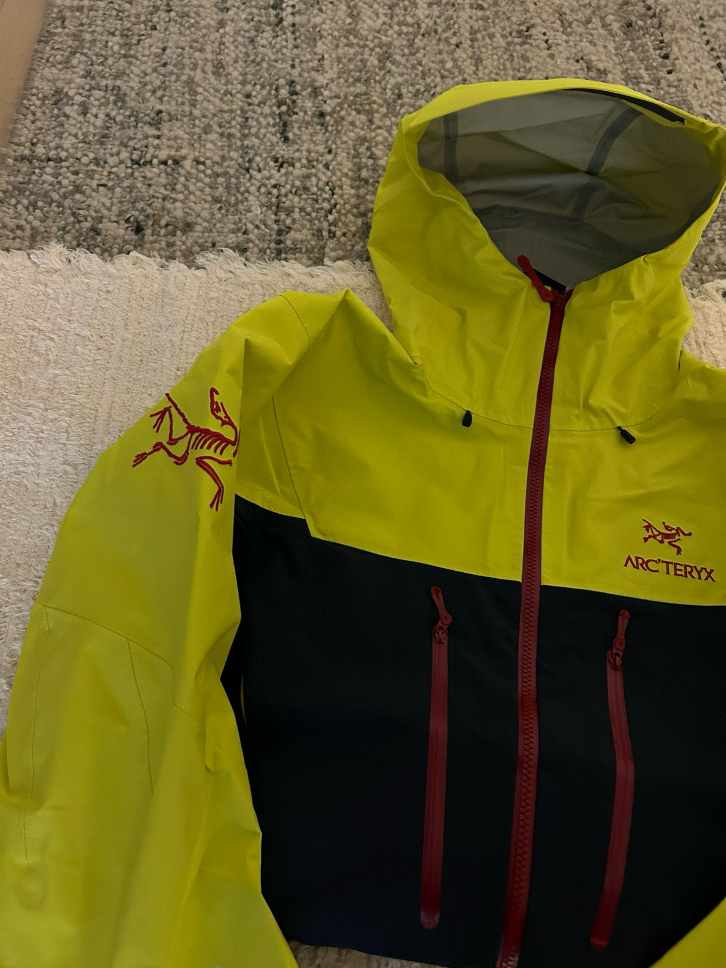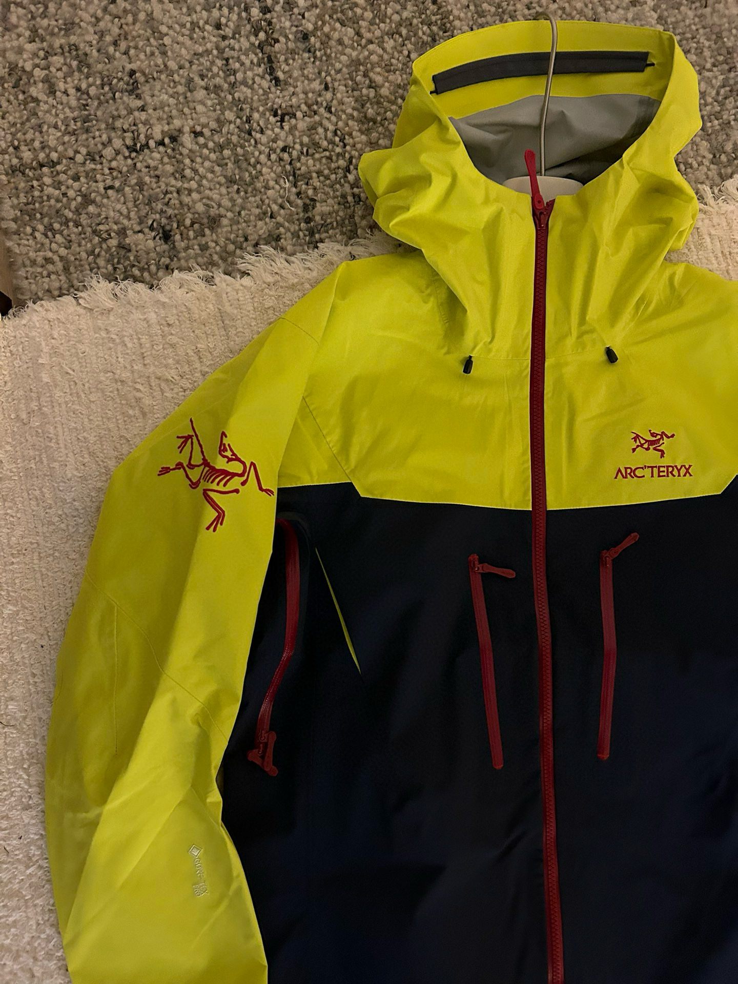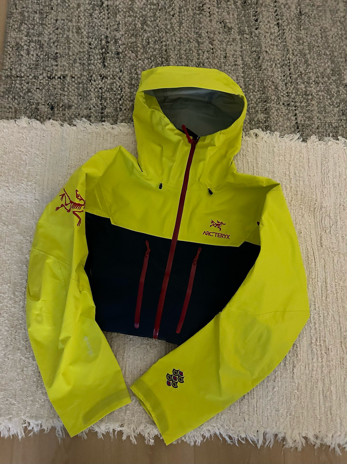 NIGO Arcteryx Men's Spring and Autumn ALPHA SV GORE-TEX Year of the Dragon Series Patchwork Outdoor Hooded Waterproof Windproof Jacket #nigo98372