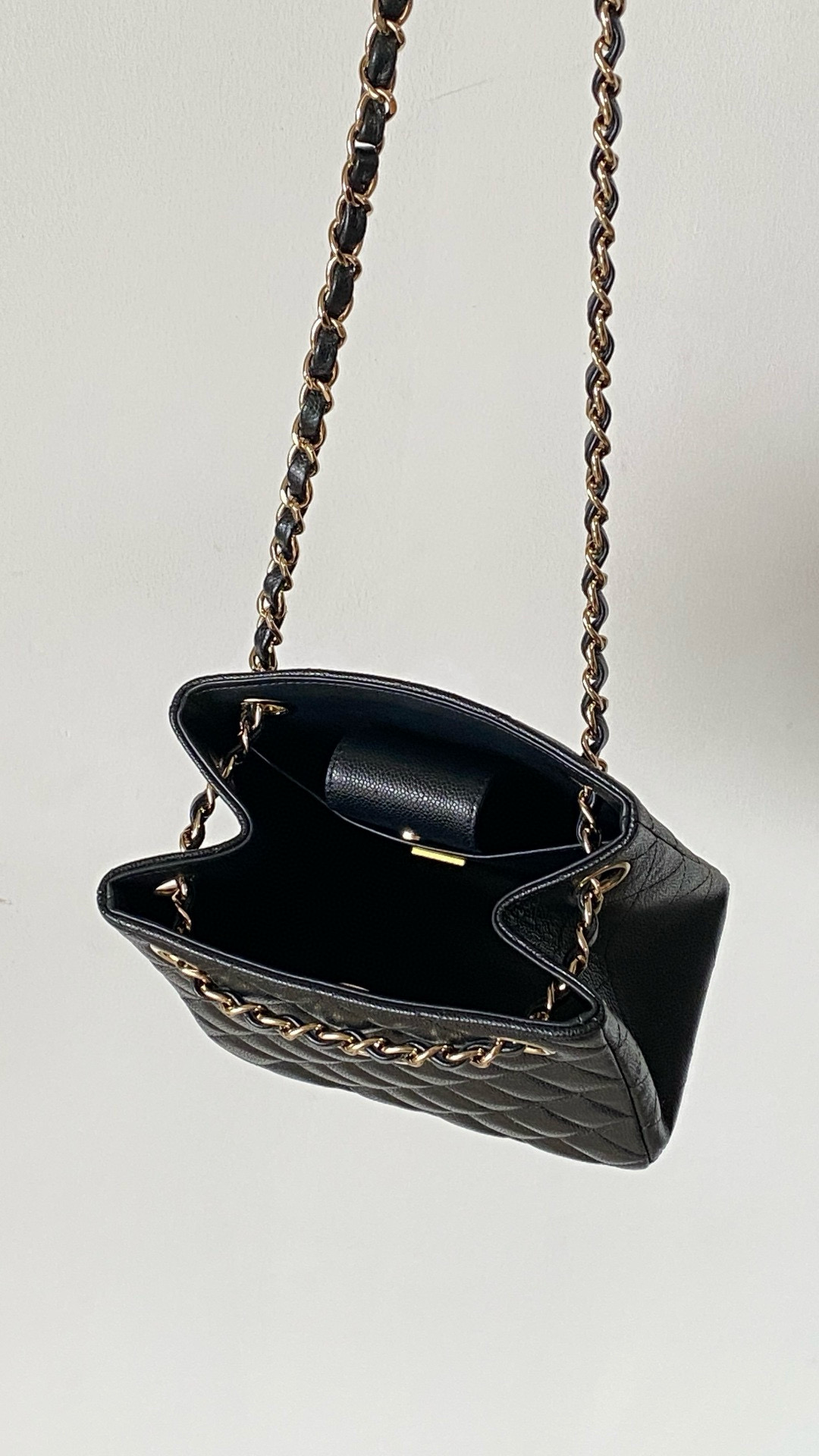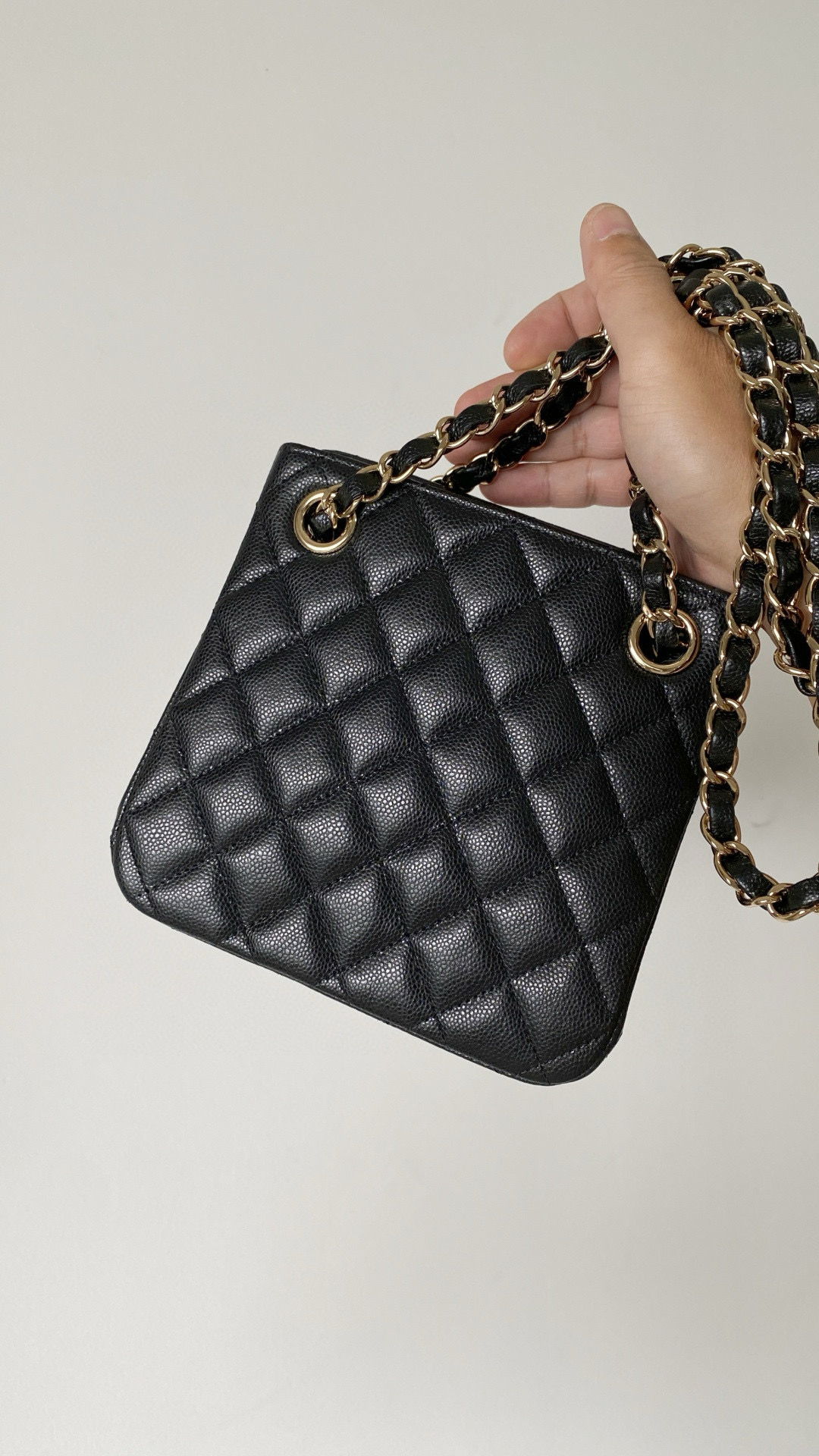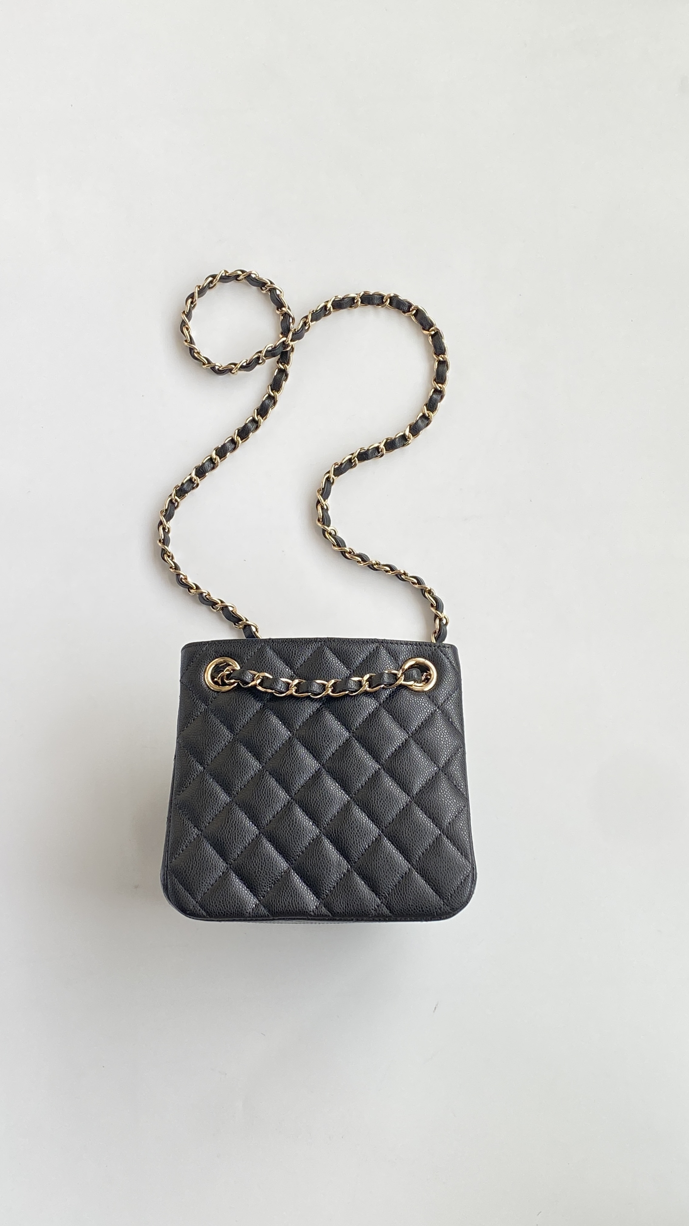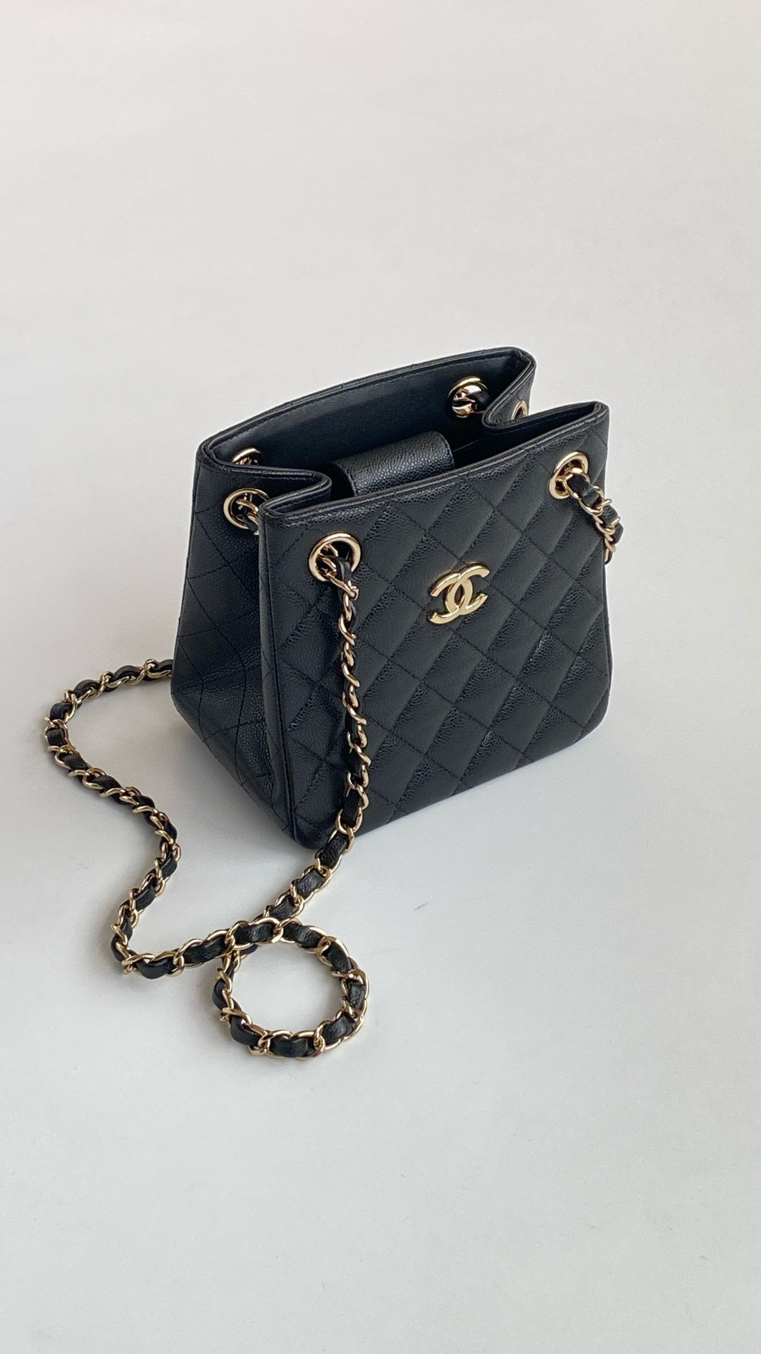 NIGO Chanel Mini Tote Diamond Double C Lychee Grain Cowhide Black Gold Double Chain Bucket Mini Tote Crossbody Bag Bags As3176 #nigo76835