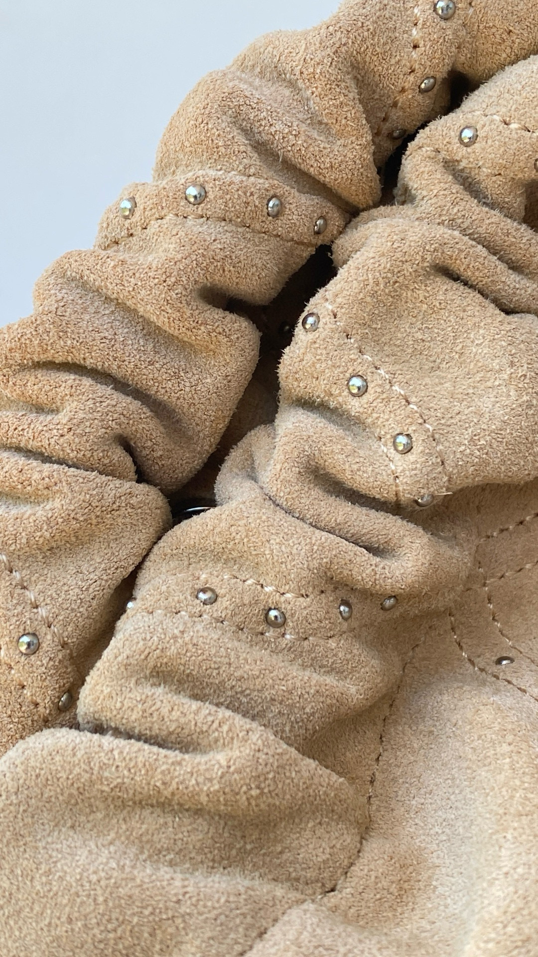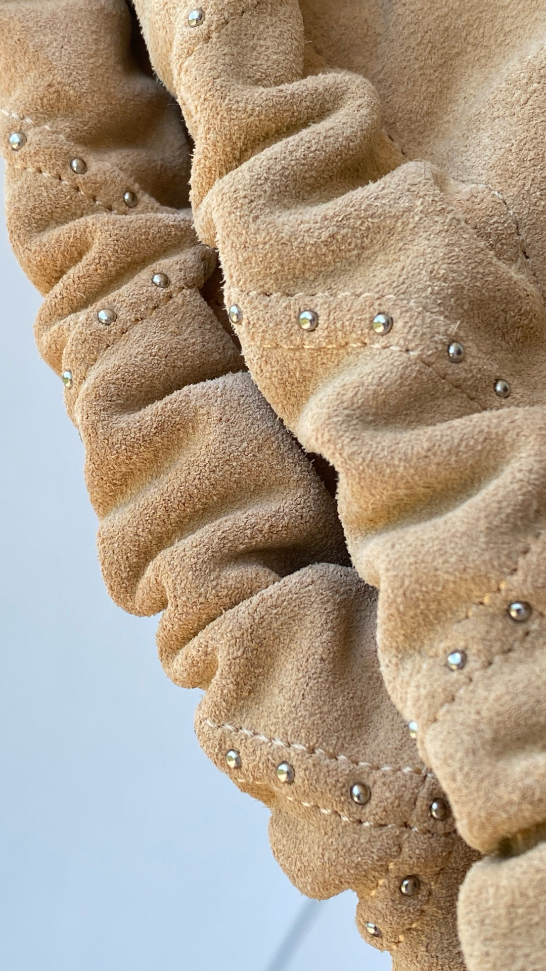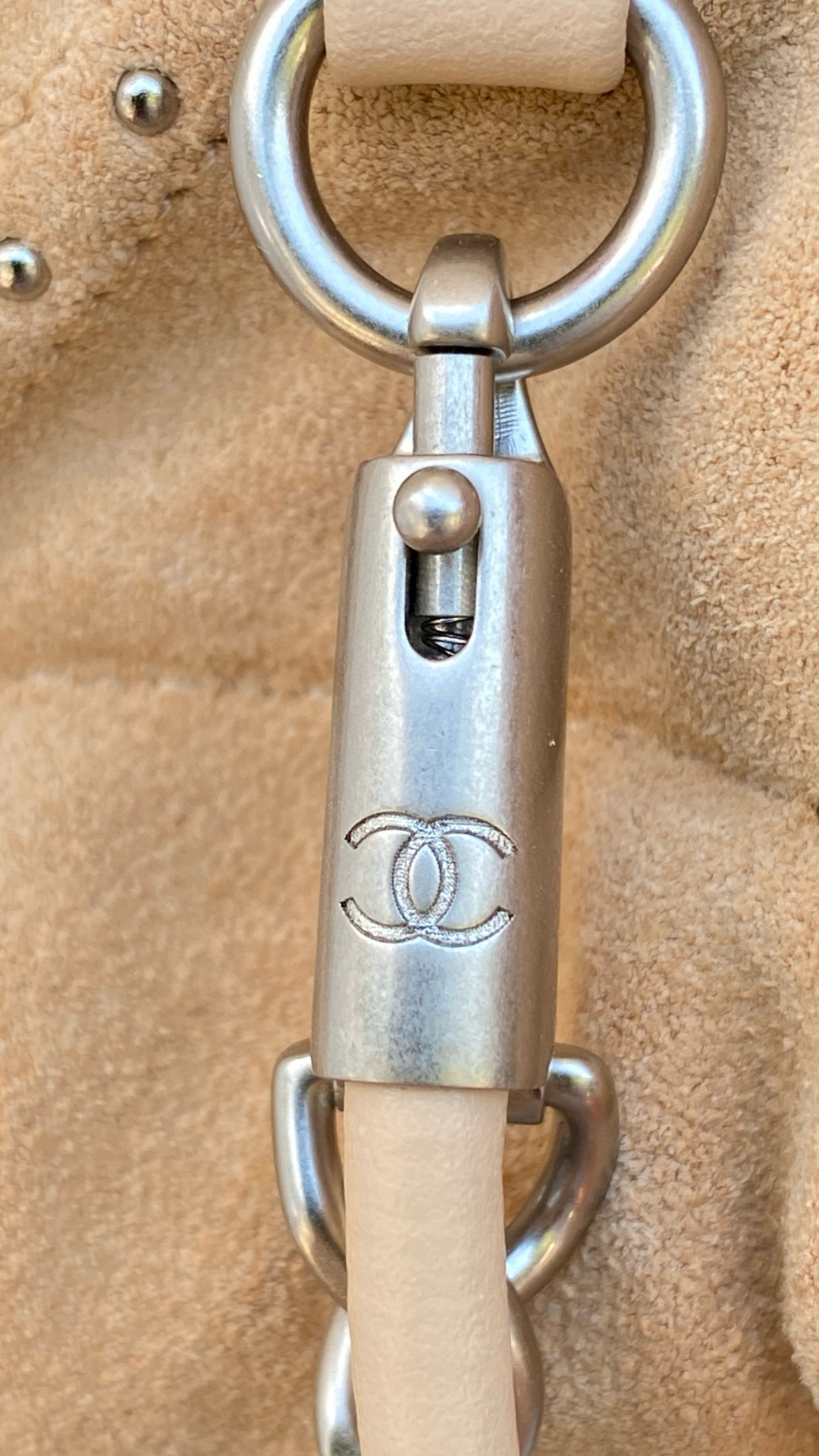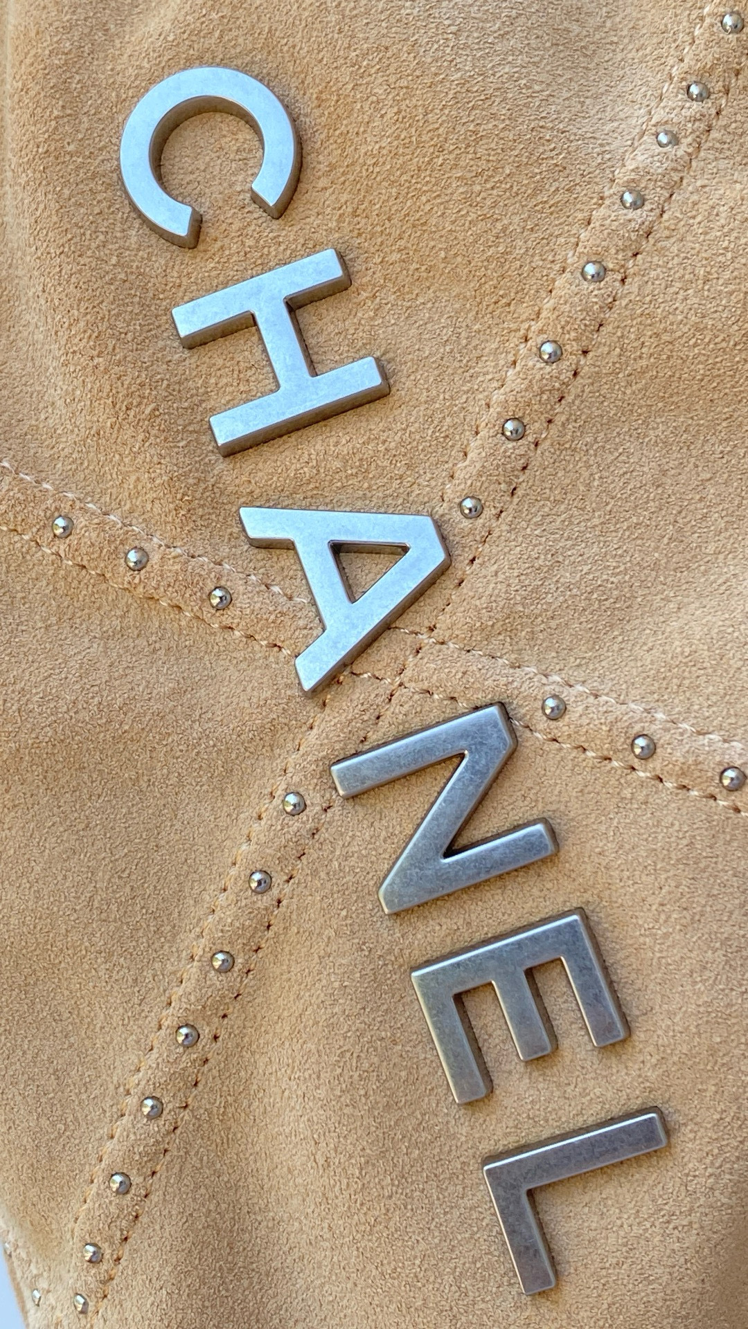NIGO Chanel Suede Rivet Style 22 Bag Mini Antique Silver Buckle Italian Bonaudo Suede Calfskin Apricot Silver Buckle Women's Luxury Chain-strap Tote Bag Bags #nigo81448