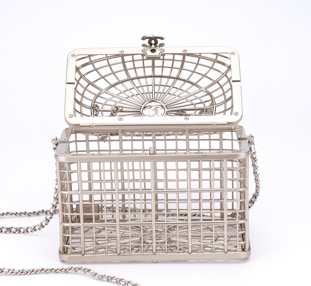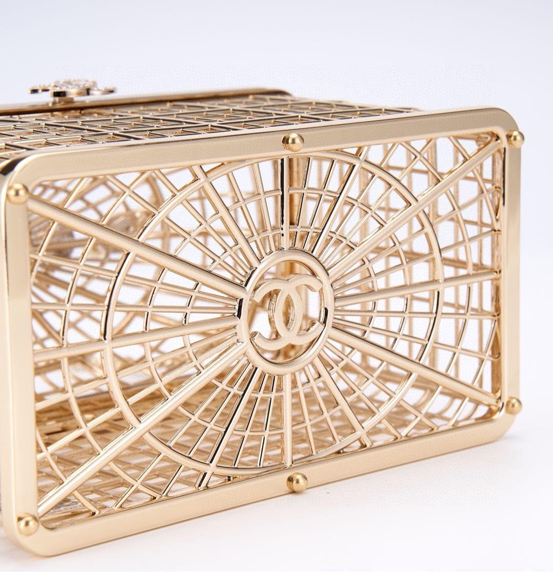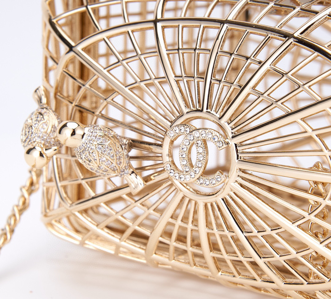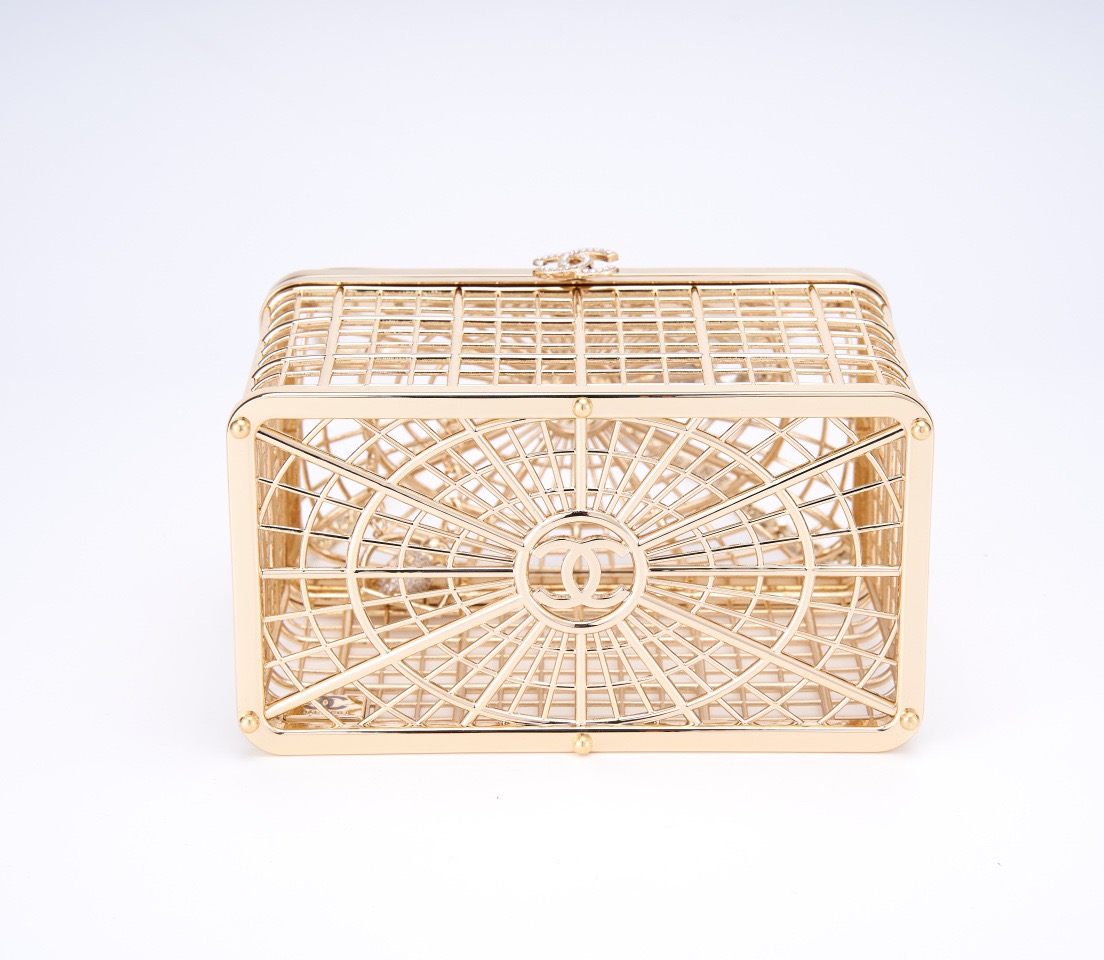 NIGO Chanel Women's Fashion Classic Metal and Rhinestone Birdcage-Shaped Rigid Evening Clutch Bag Bags #nigo78572