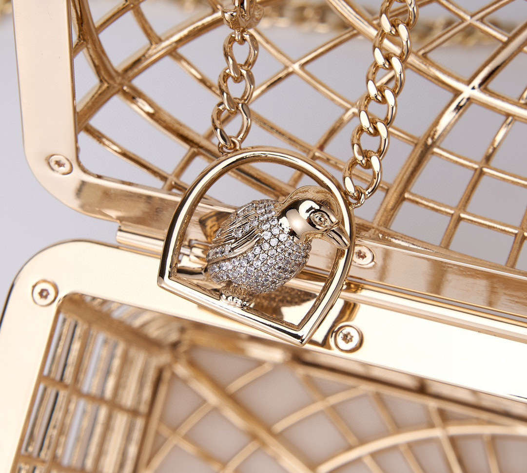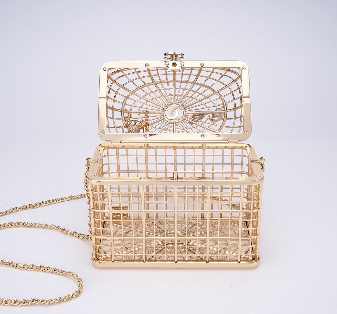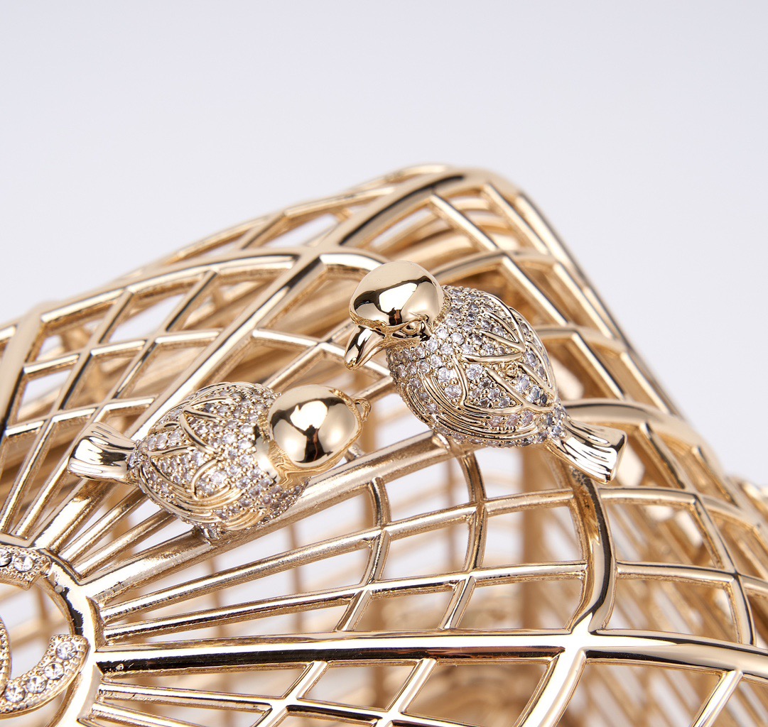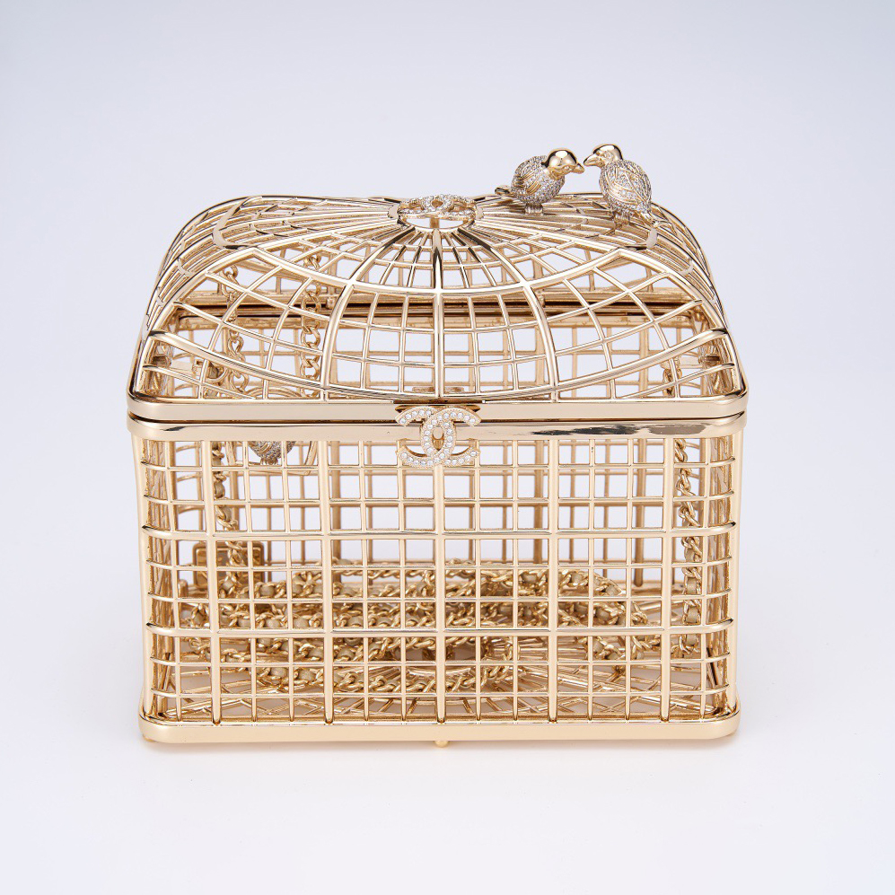 NIGO Chanel Women's Fashion Classic Metal and Rhinestone Birdcage-Shaped Rigid Evening Clutch Bag Bags #nigo78572