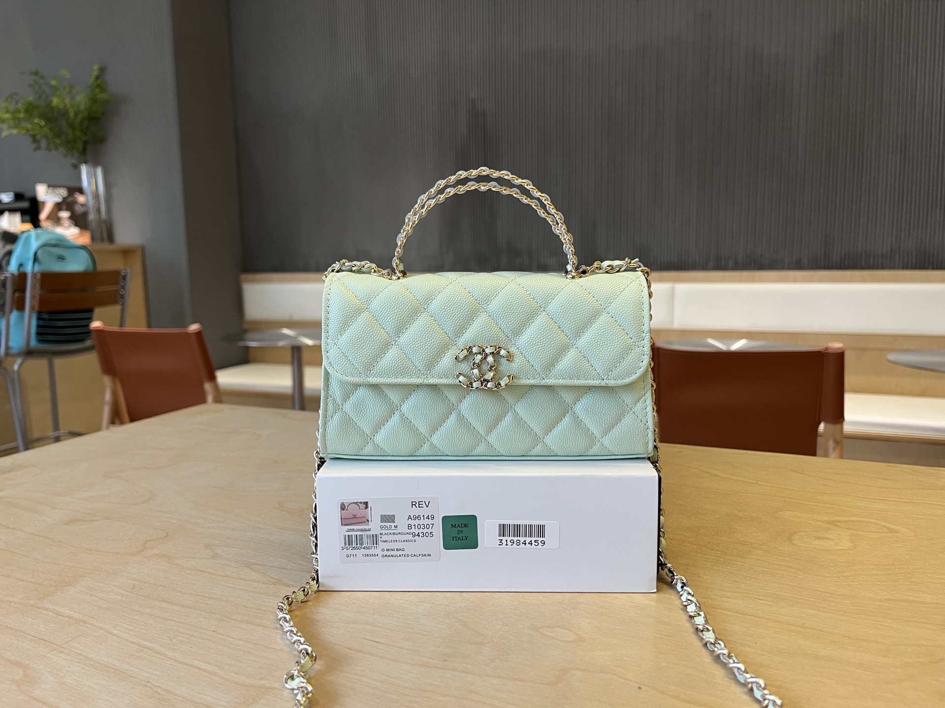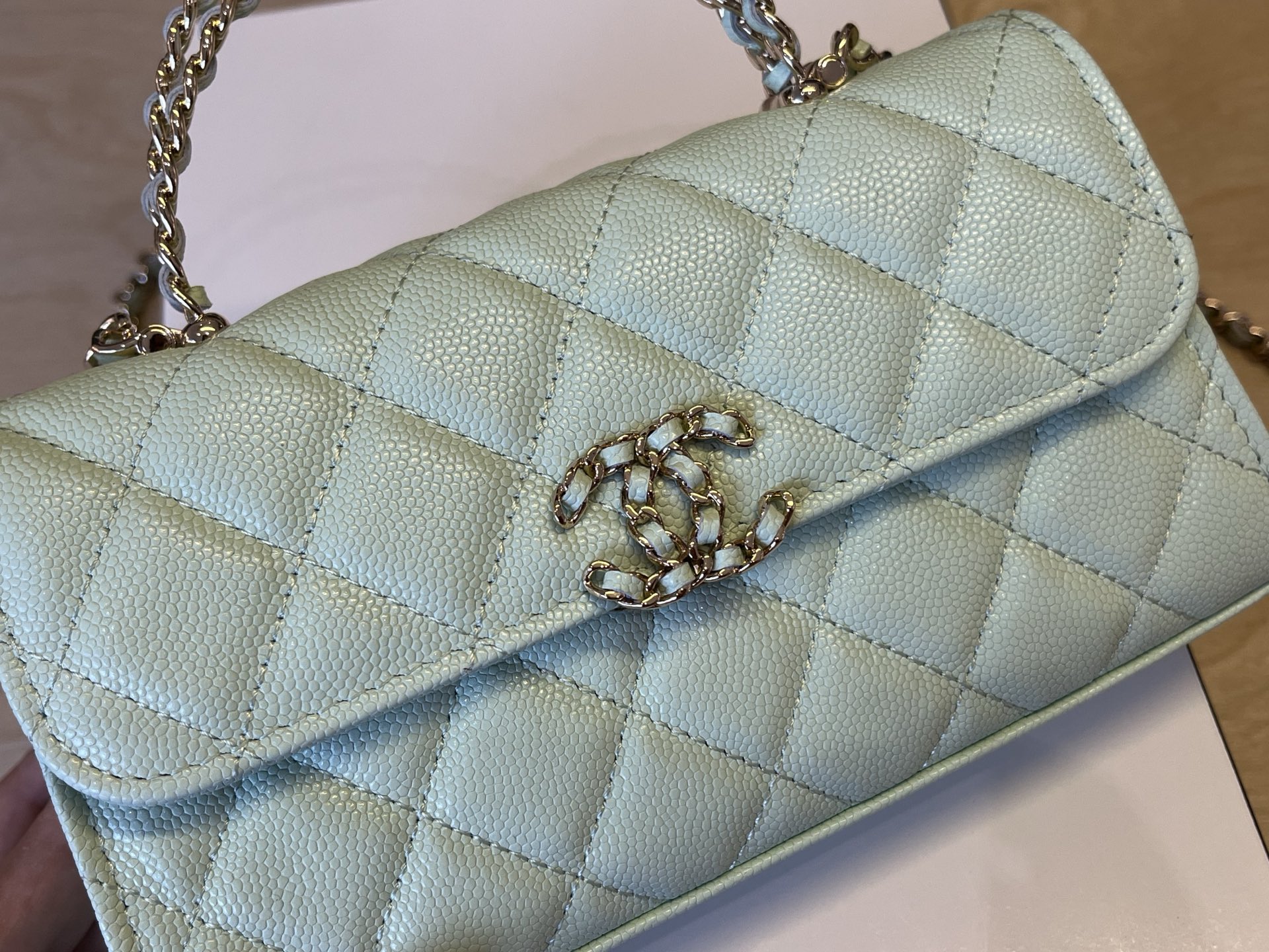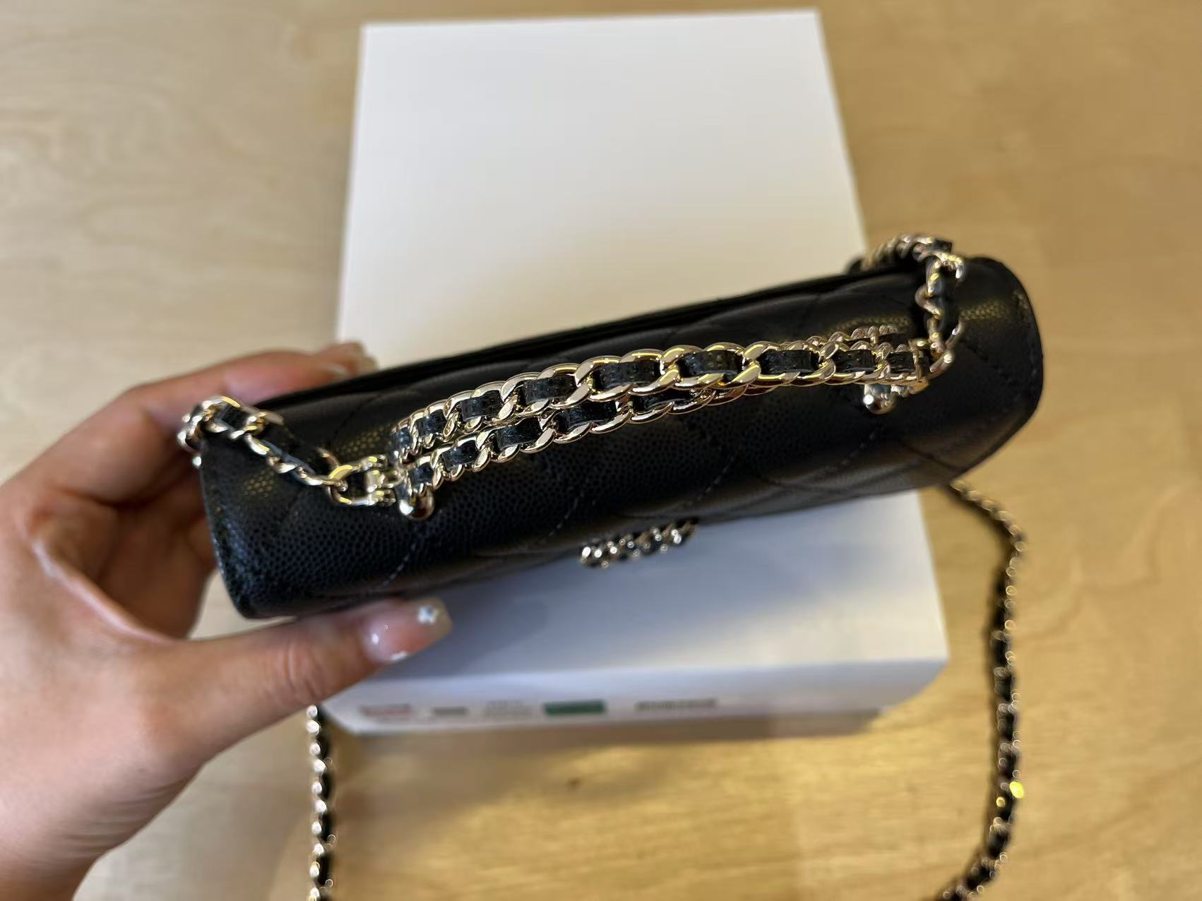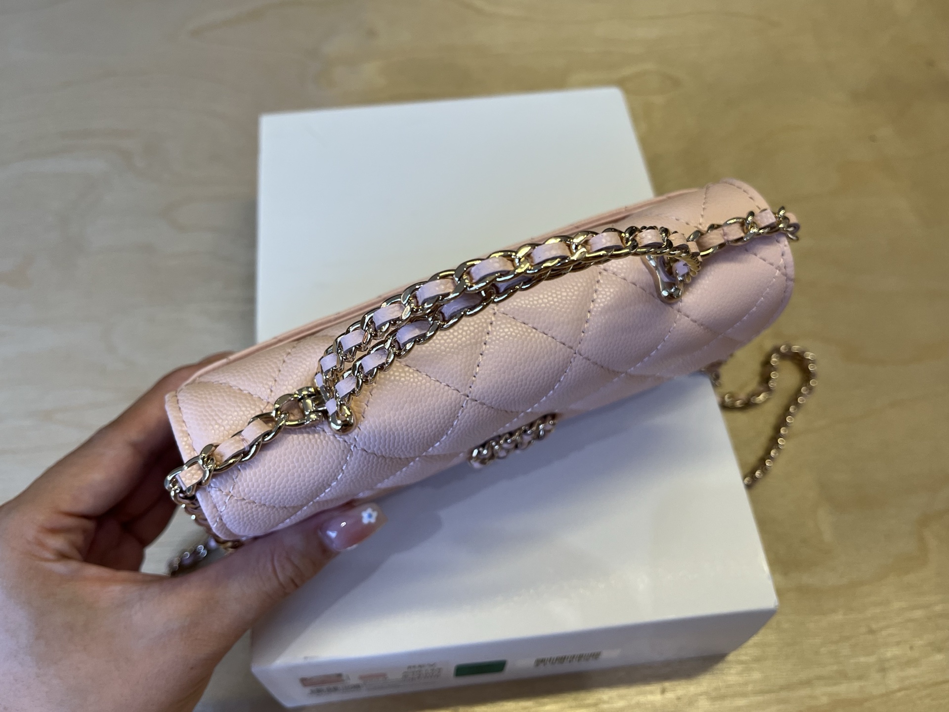 NIGO Chanel Women's Gold Metal Chain Grain Embossed Pure Colour Glossy Calfskin Shoulder Crossbody Handbag Bag Bags #nigo76647
