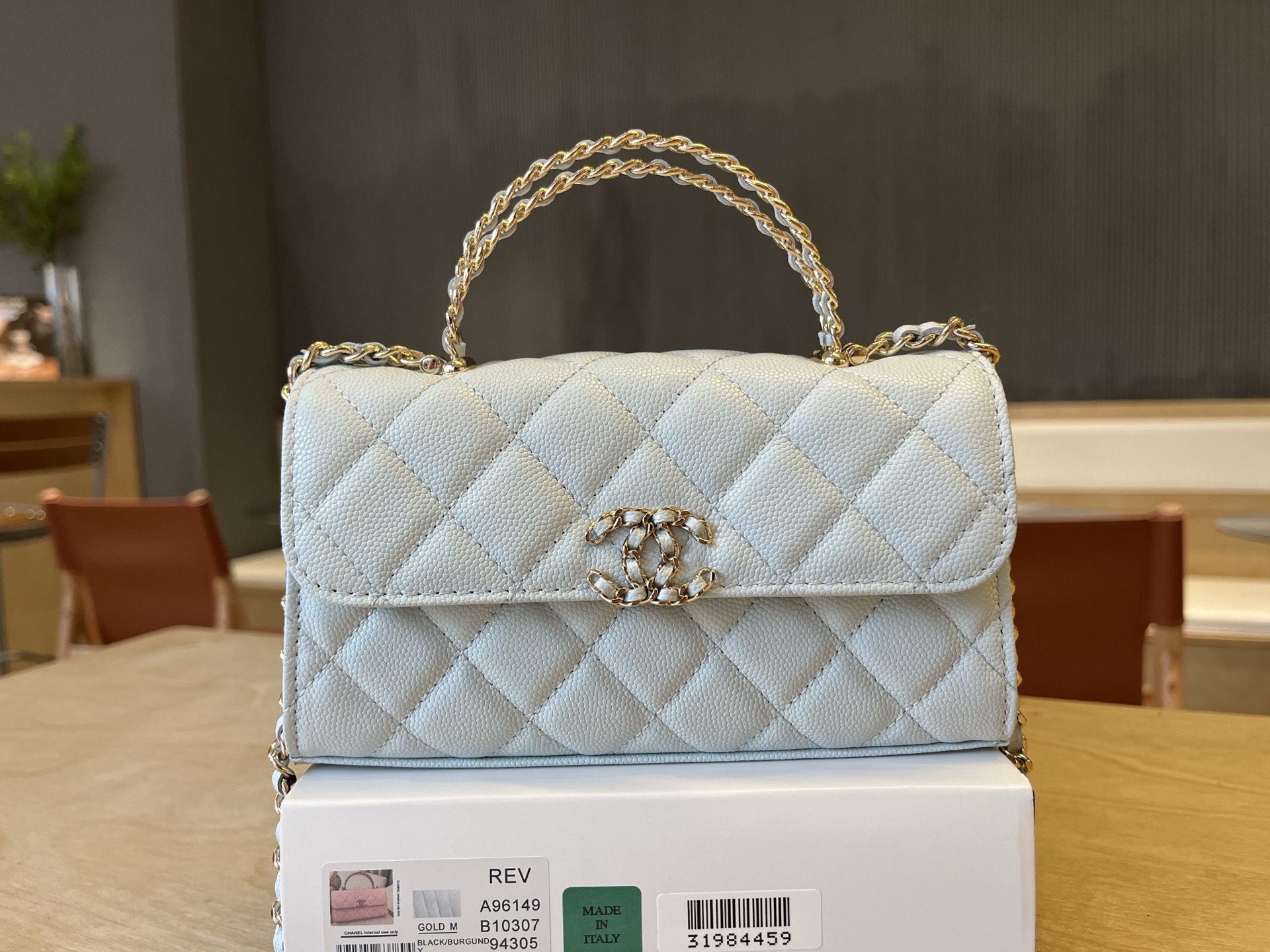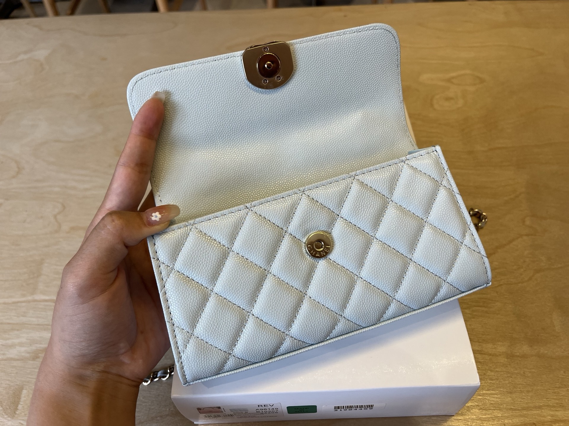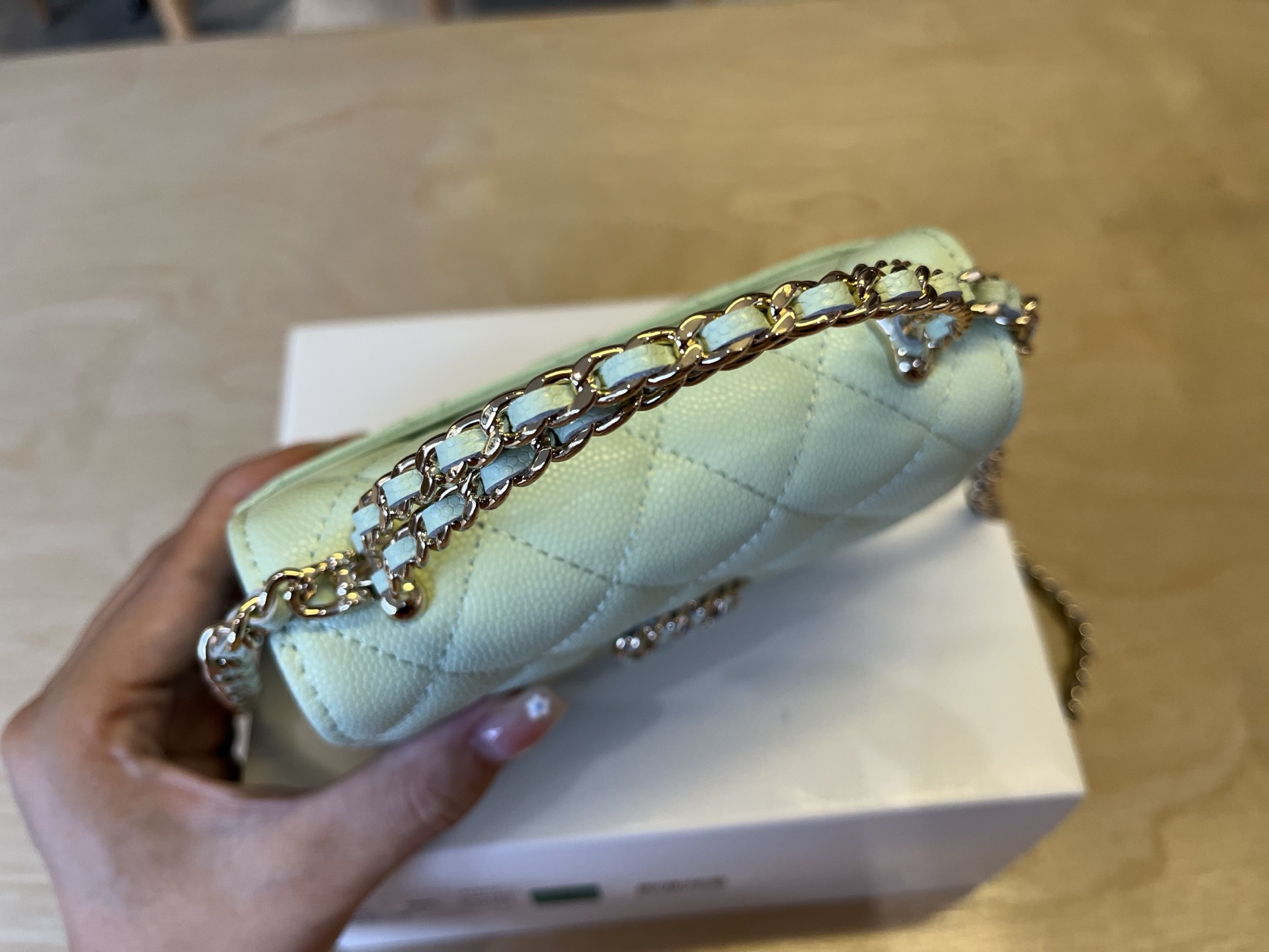 NIGO Chanel Women's Gold Metal Chain Grain Embossed Pure Colour Glossy Calfskin Shoulder Crossbody Handbag Bag Bags #nigo76647