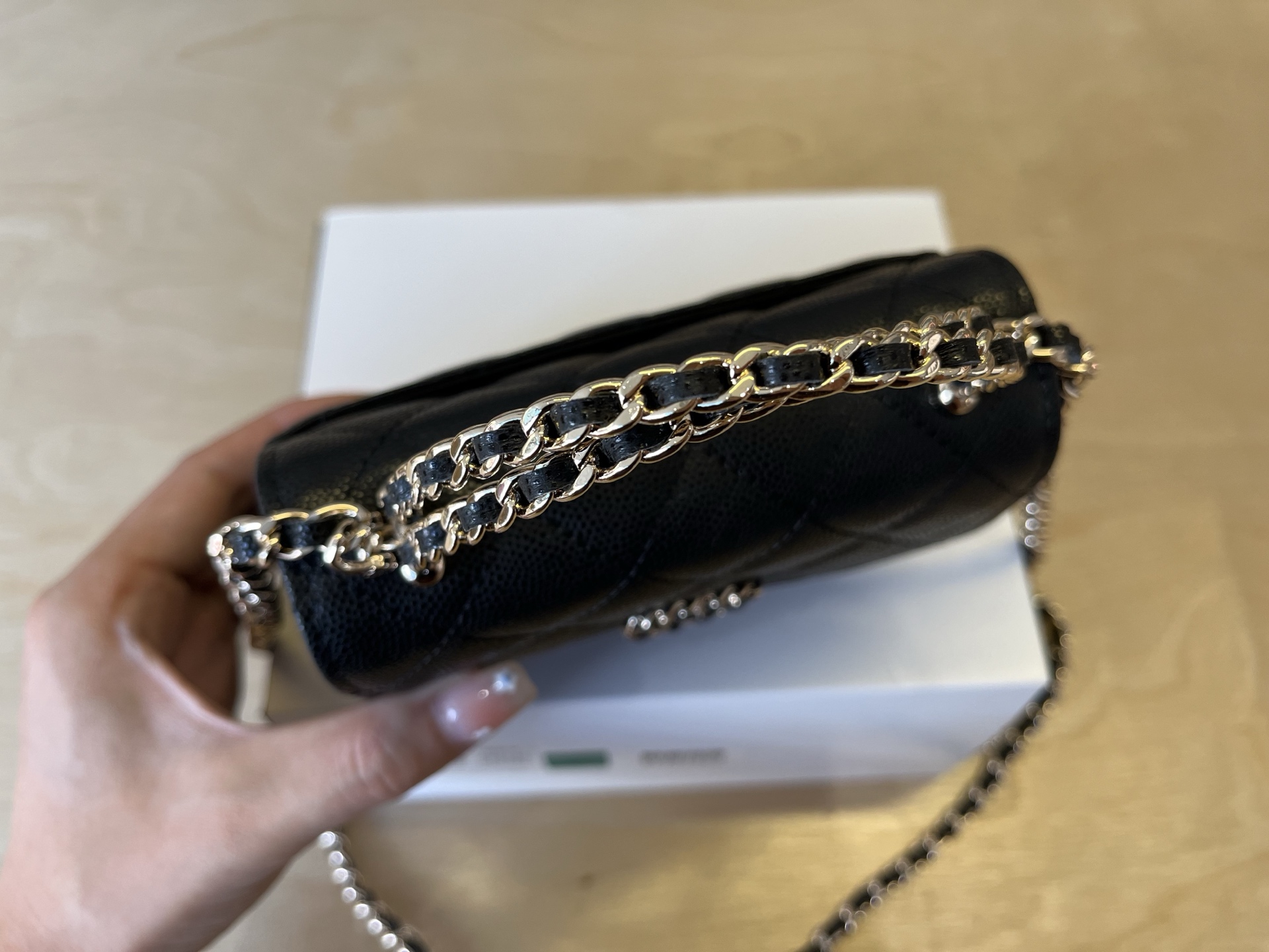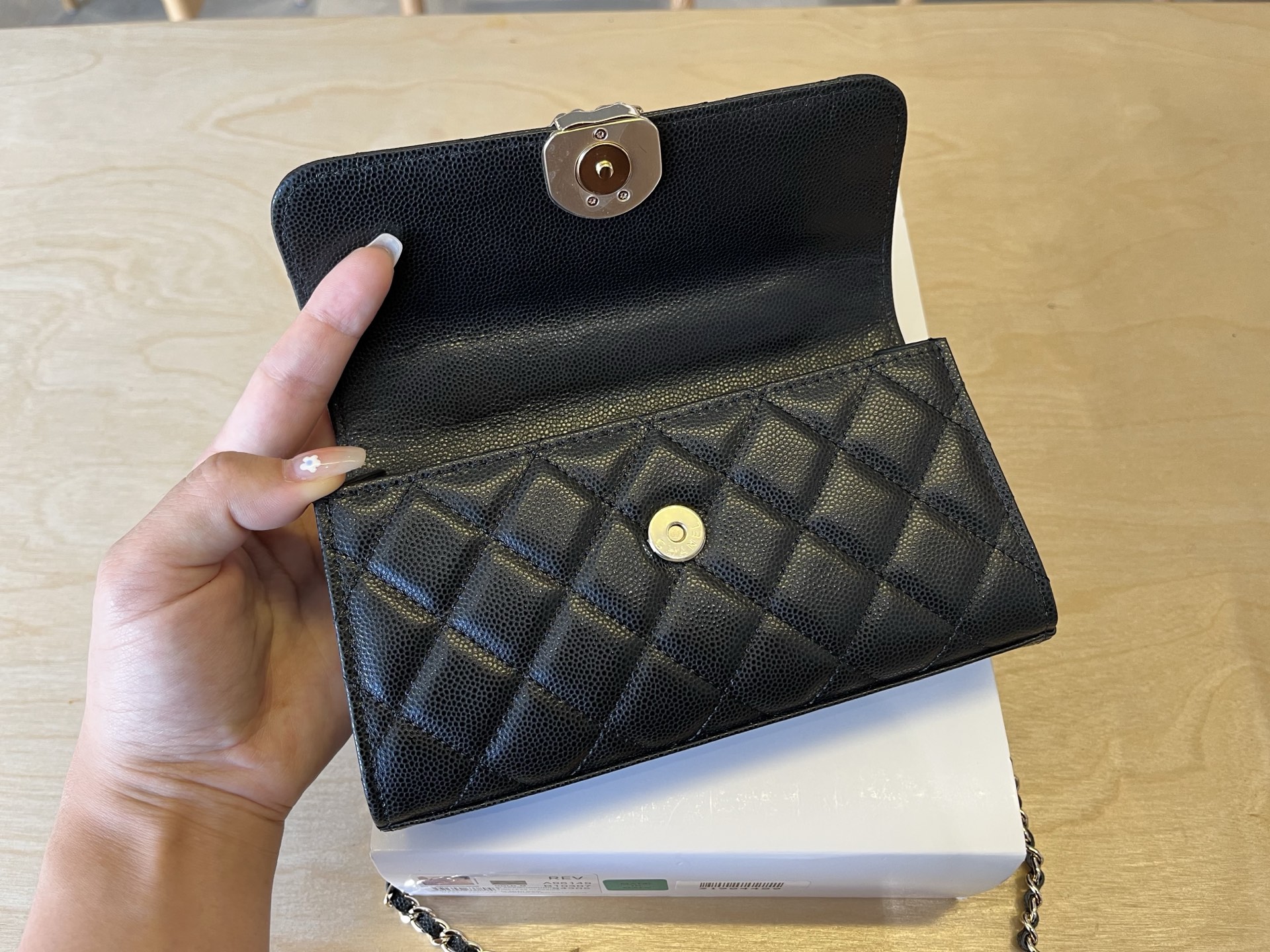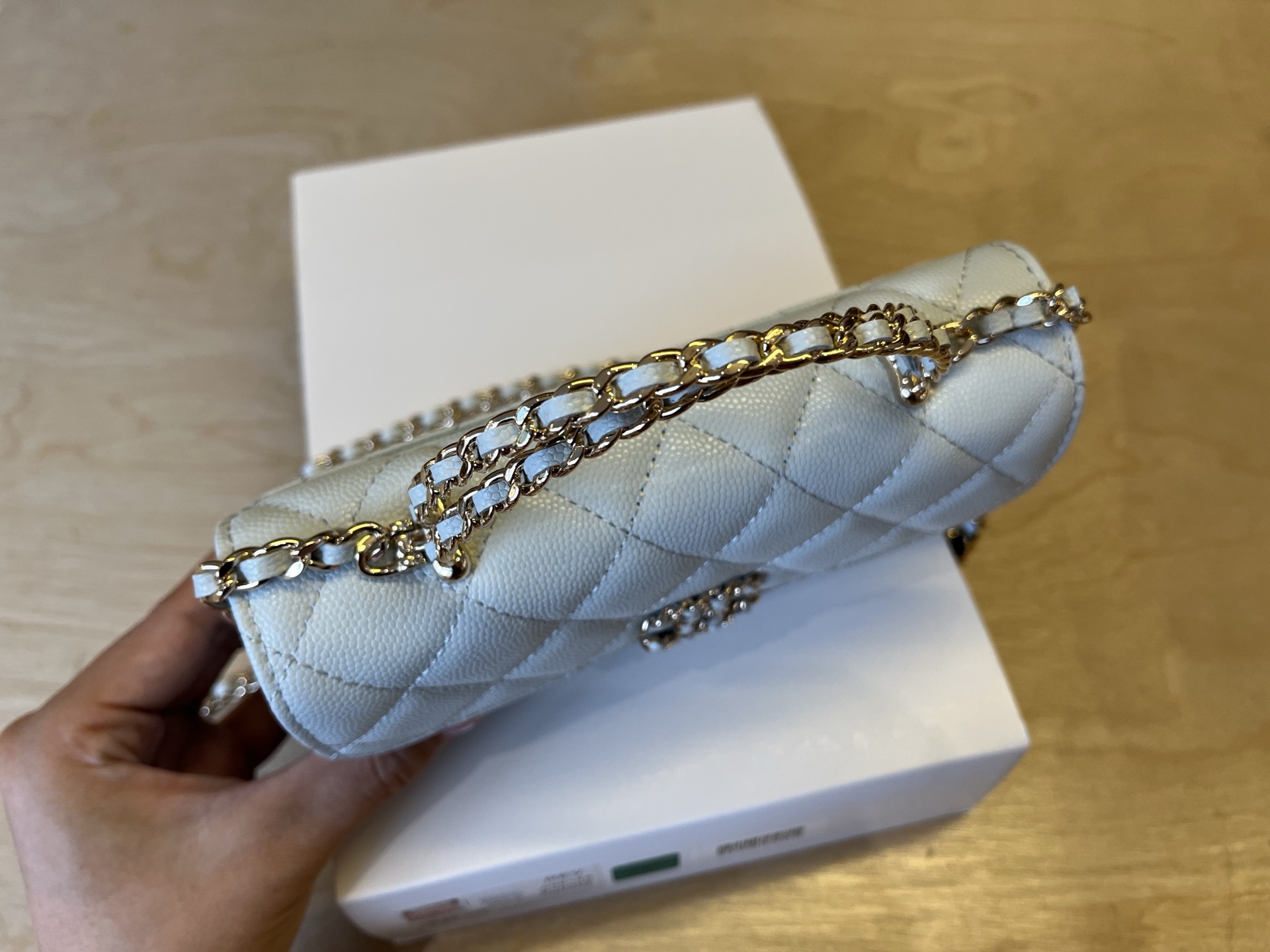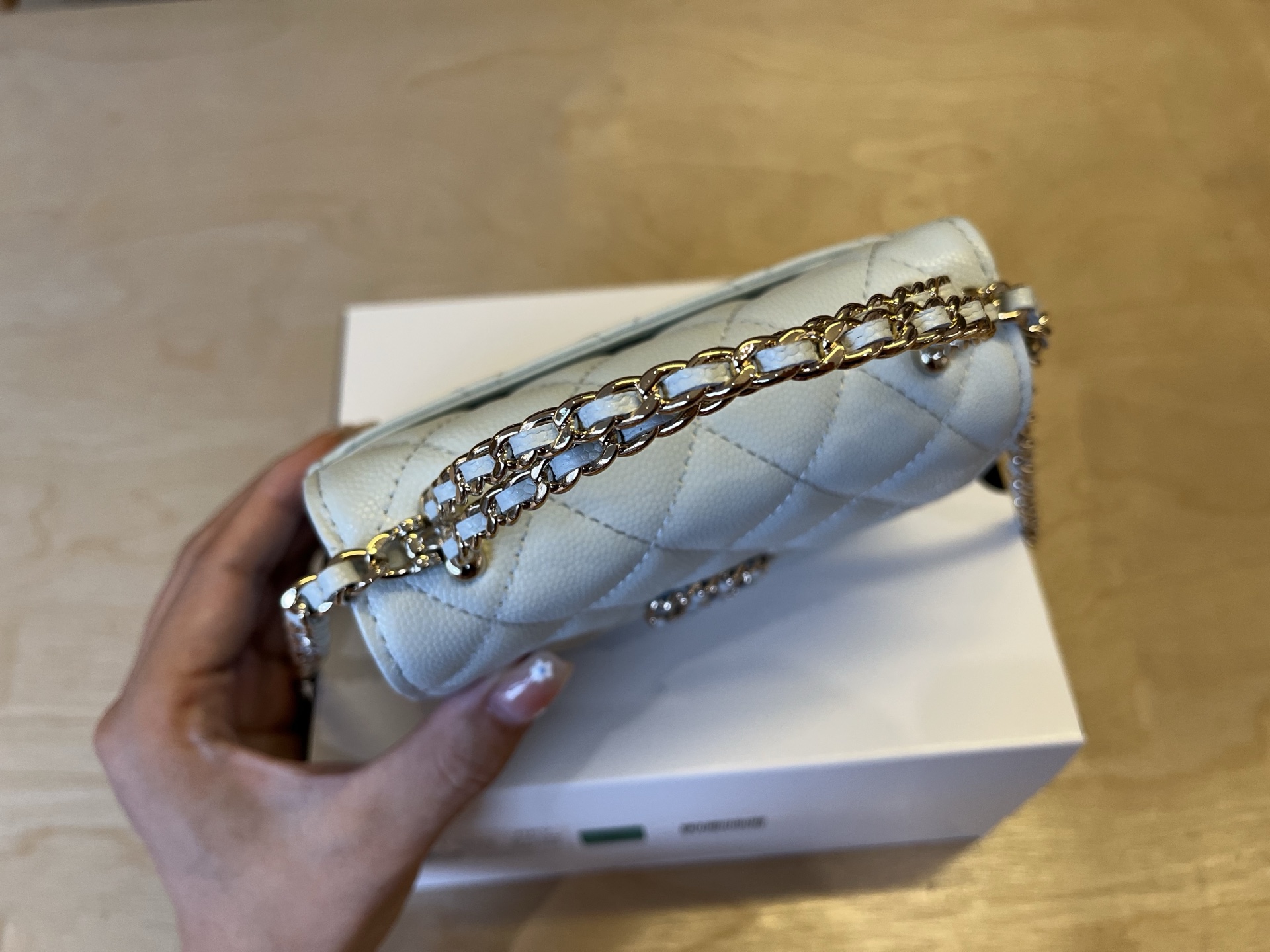 NIGO Chanel Women's Gold Metal Chain Grain Embossed Pure Colour Glossy Calfskin Shoulder Crossbody Handbag Bag Bags #nigo76647