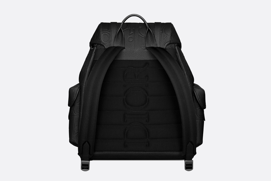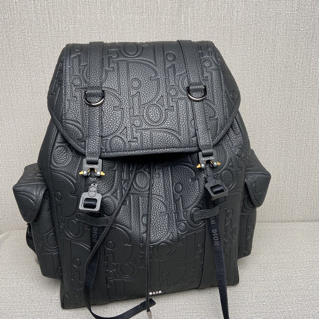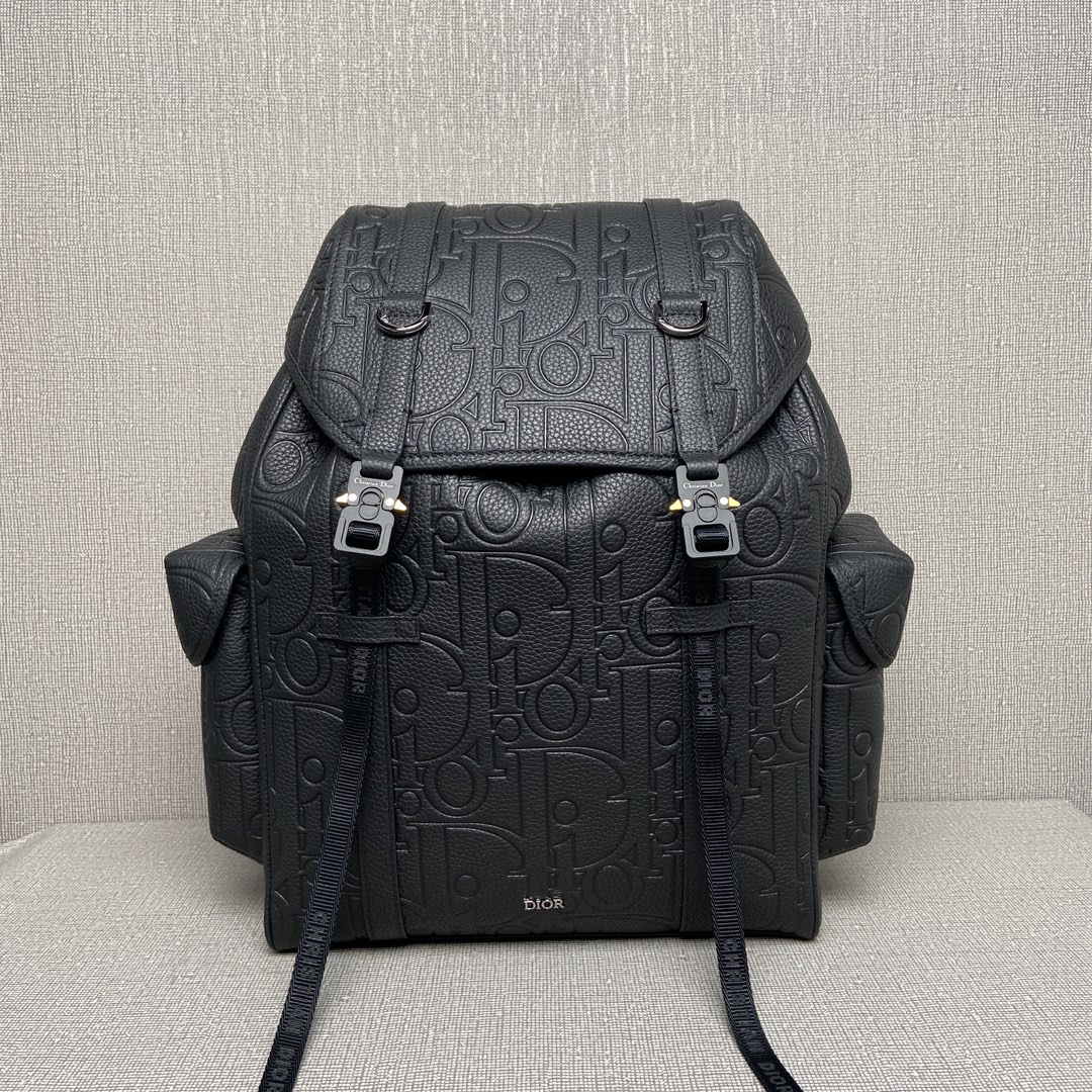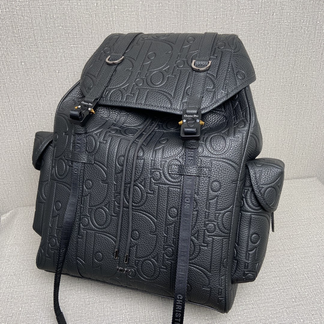 NIGO Dior Men's Black Adjustable Shoulder Strap Drawstring Closure Letter Embossed Grained Cowhide Shoulder Bag Bags #nigo72871