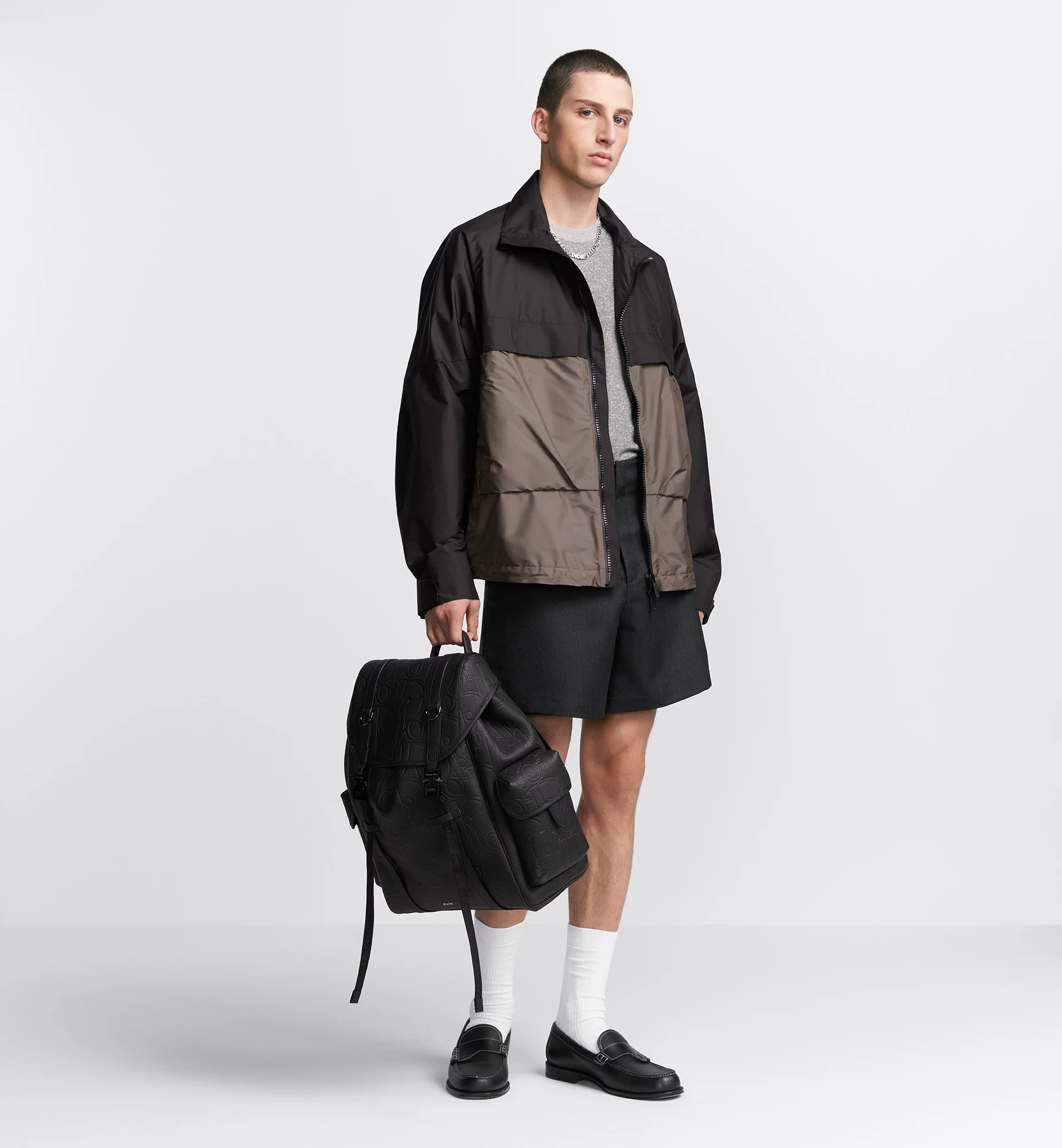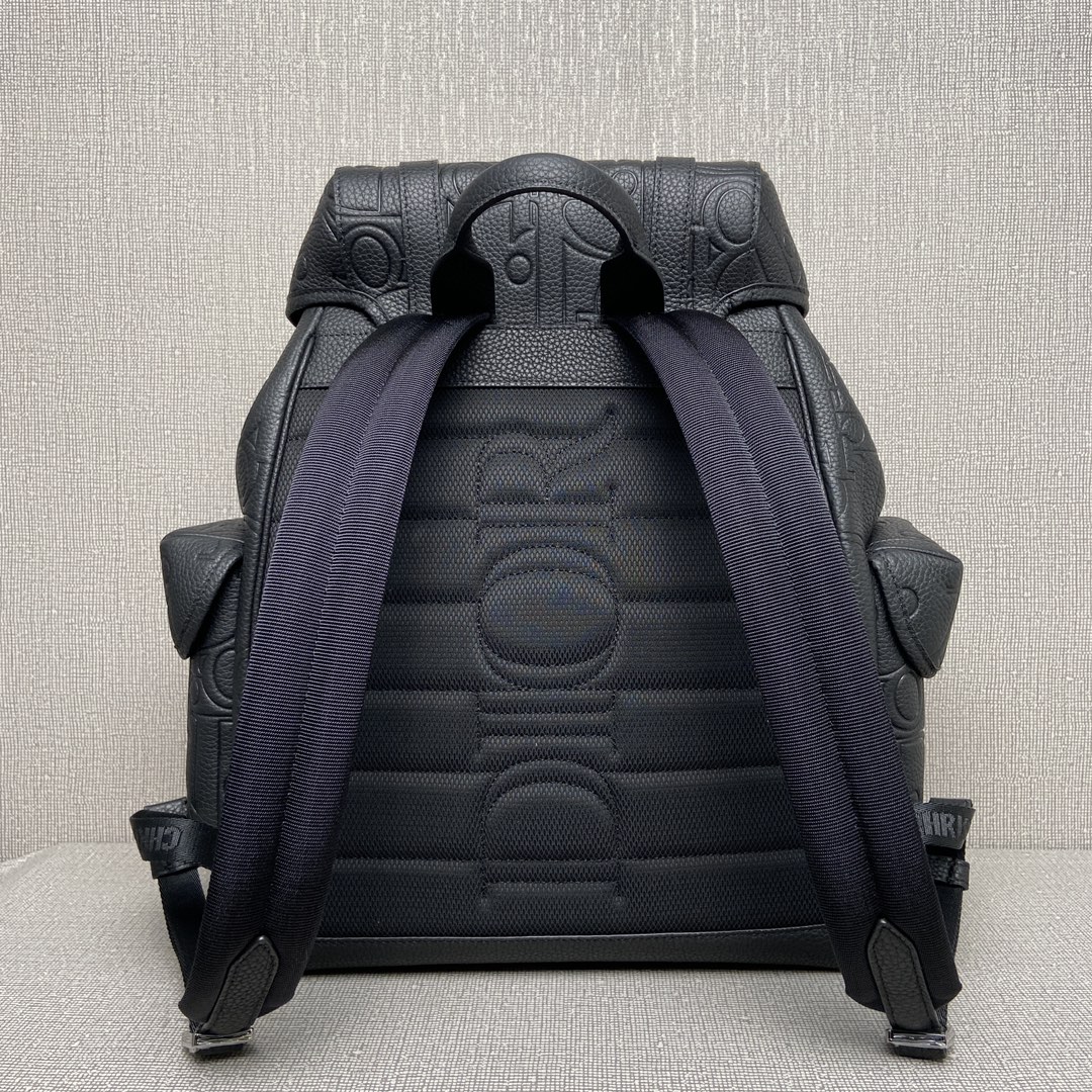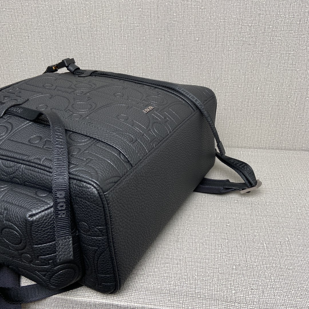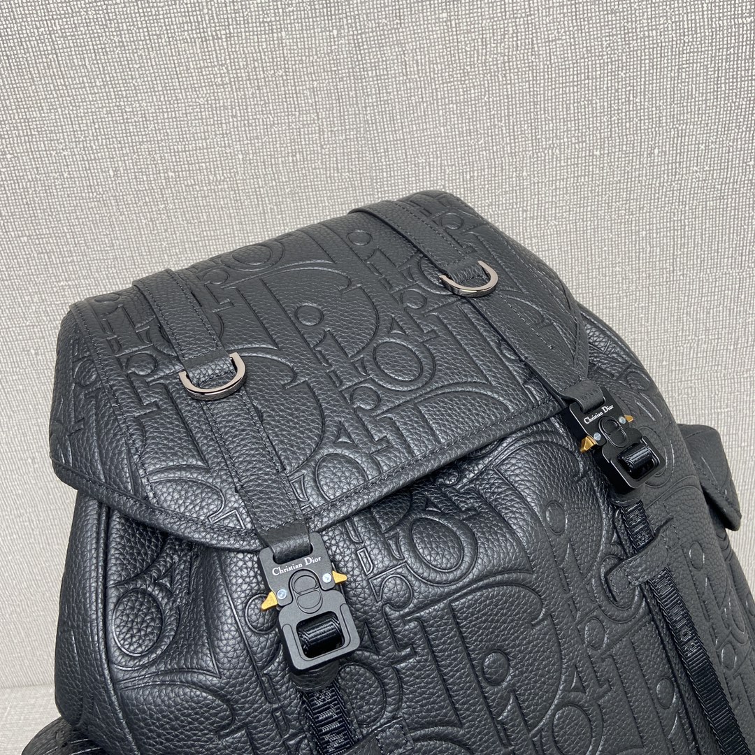 NIGO Dior Men's Black Adjustable Shoulder Strap Drawstring Closure Letter Embossed Grained Cowhide Shoulder Bag Bags #nigo72871