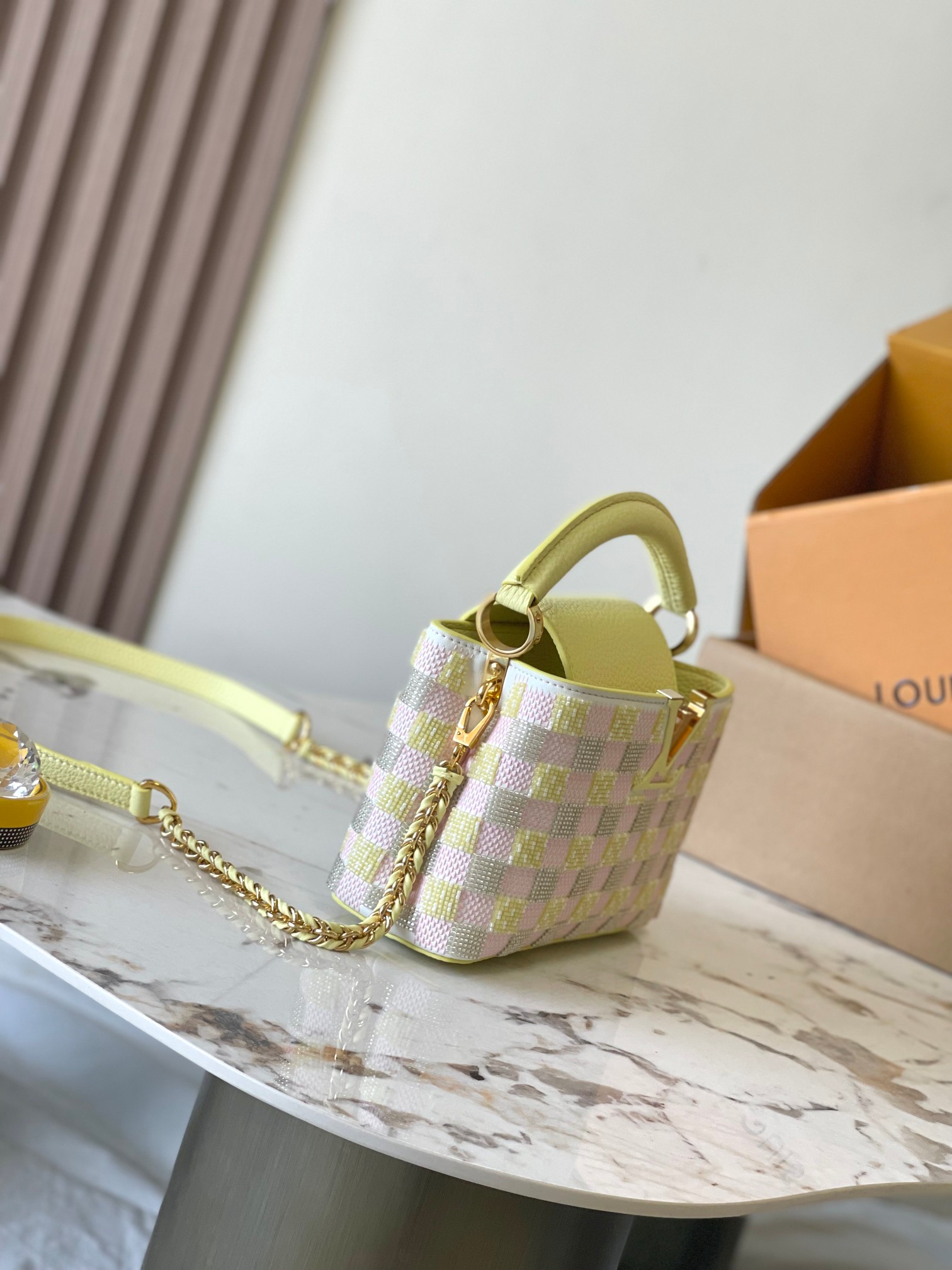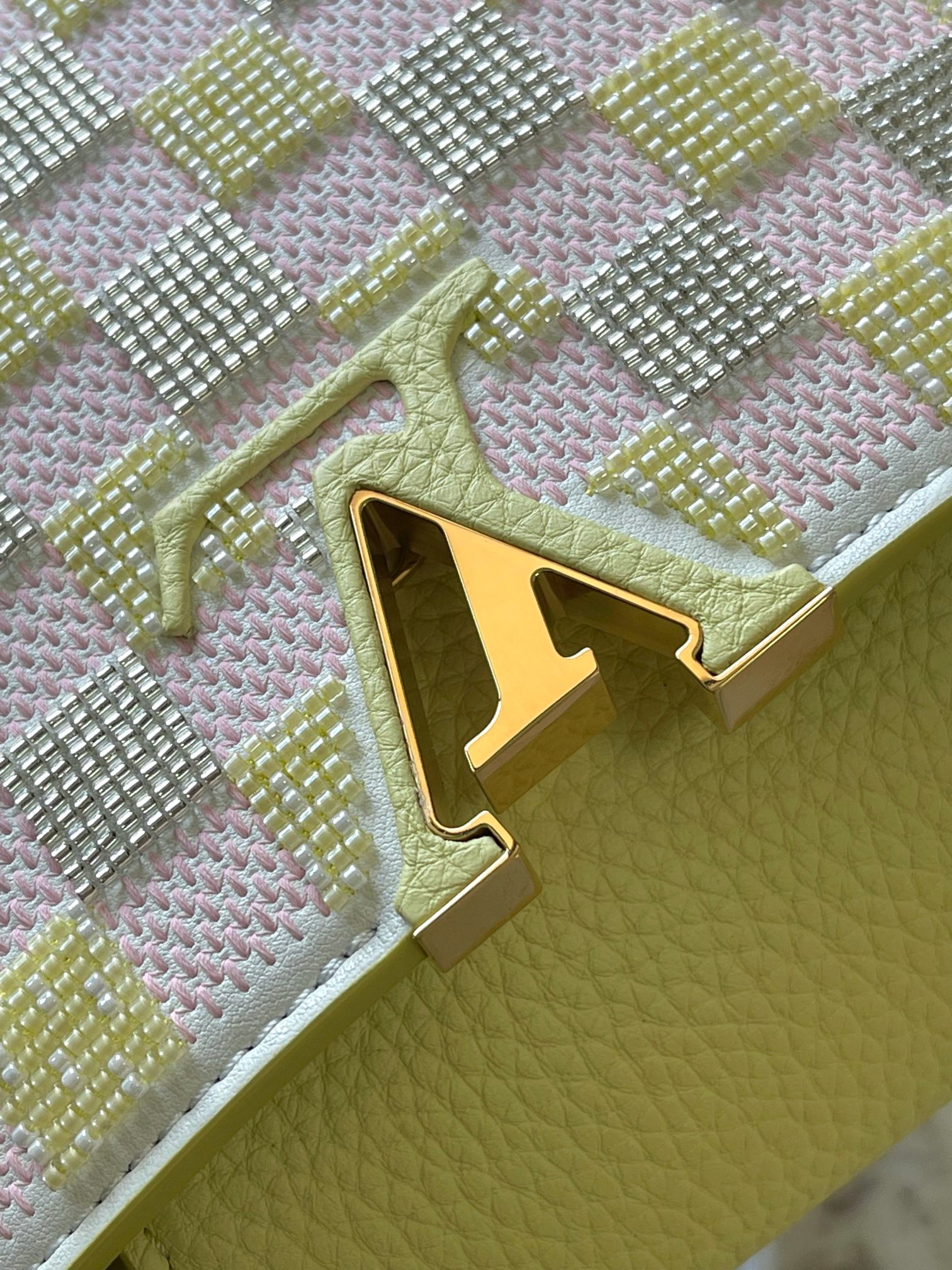 NIGO Louis Vuitton Capucines Women's Adjustable Removable Shoulder Strap Calfskin Leather Yellow Puzzle Pink Shoulder Crossbody Handbag Bag Bags #nigo73542