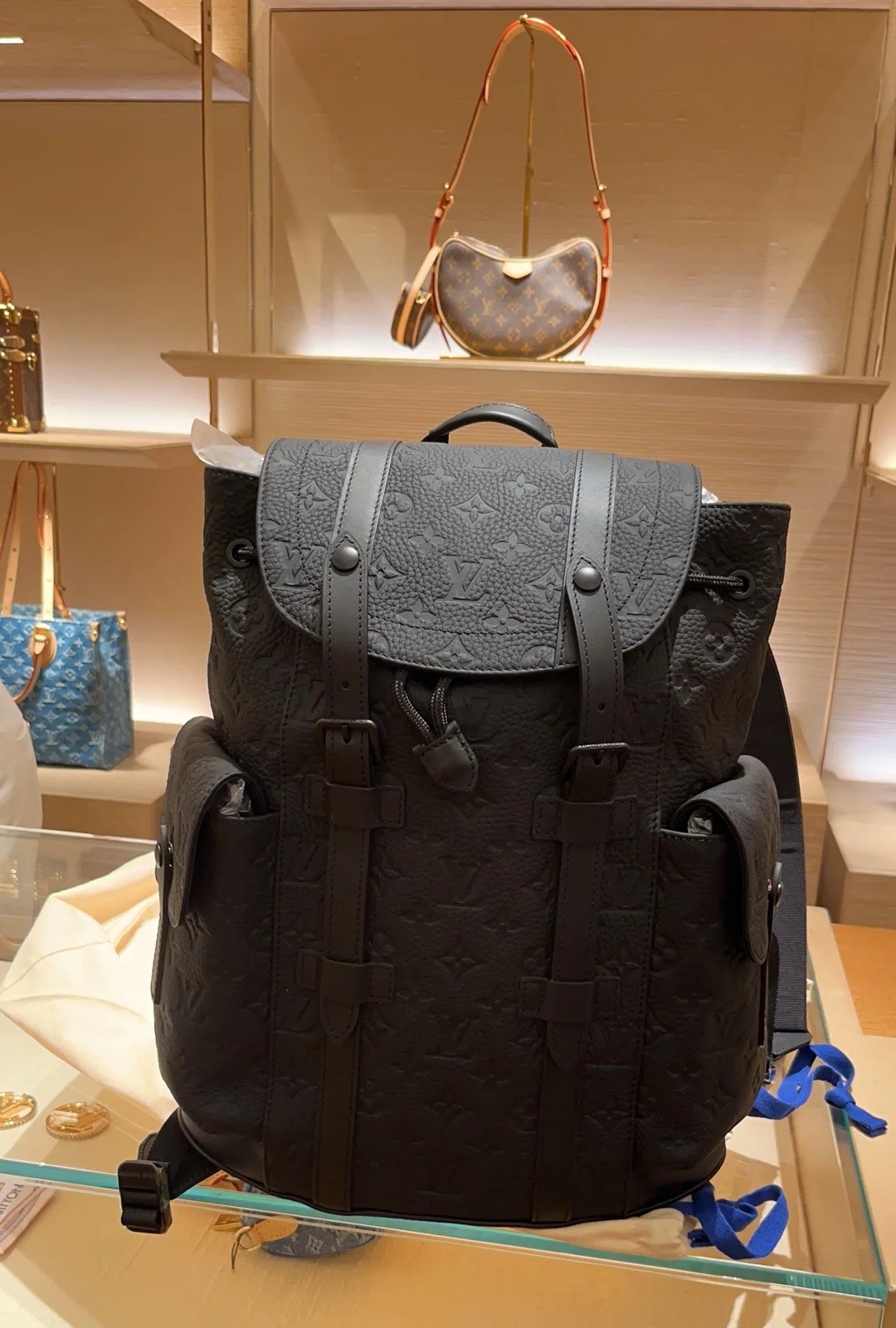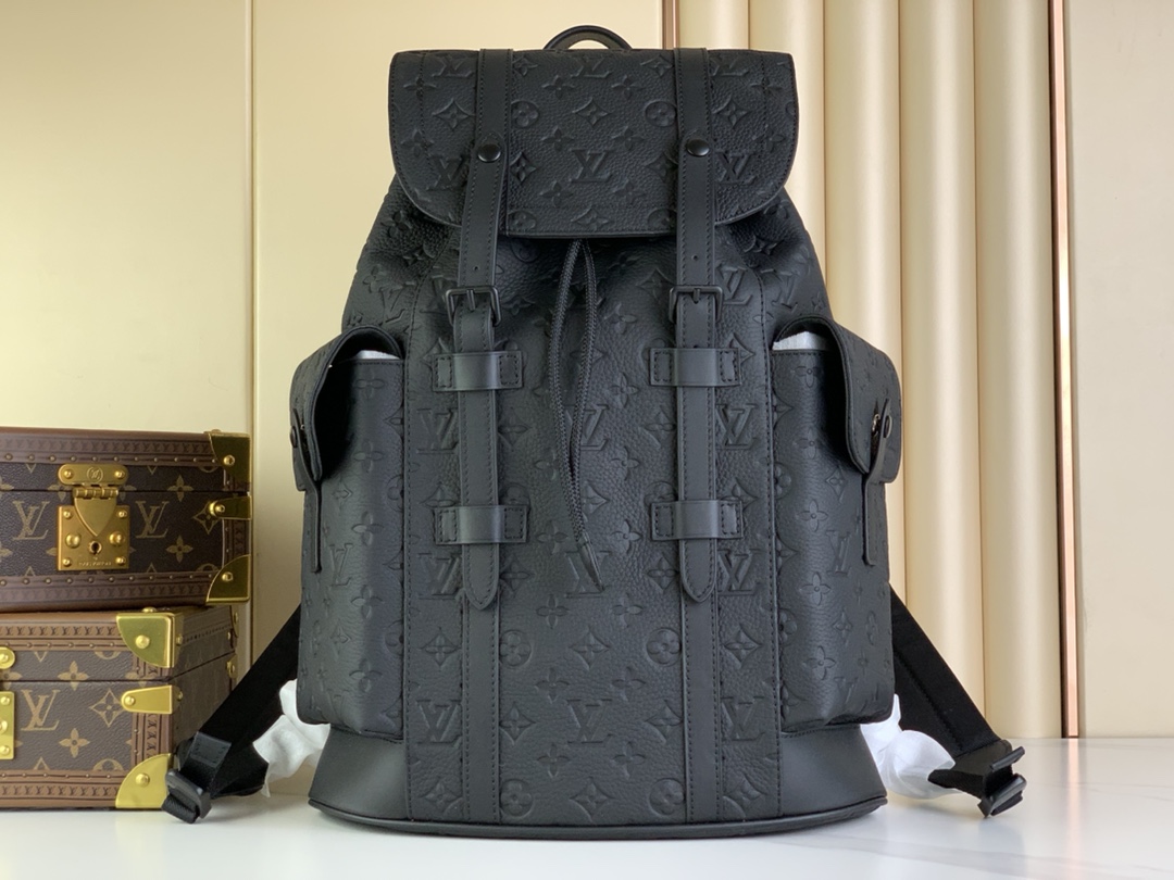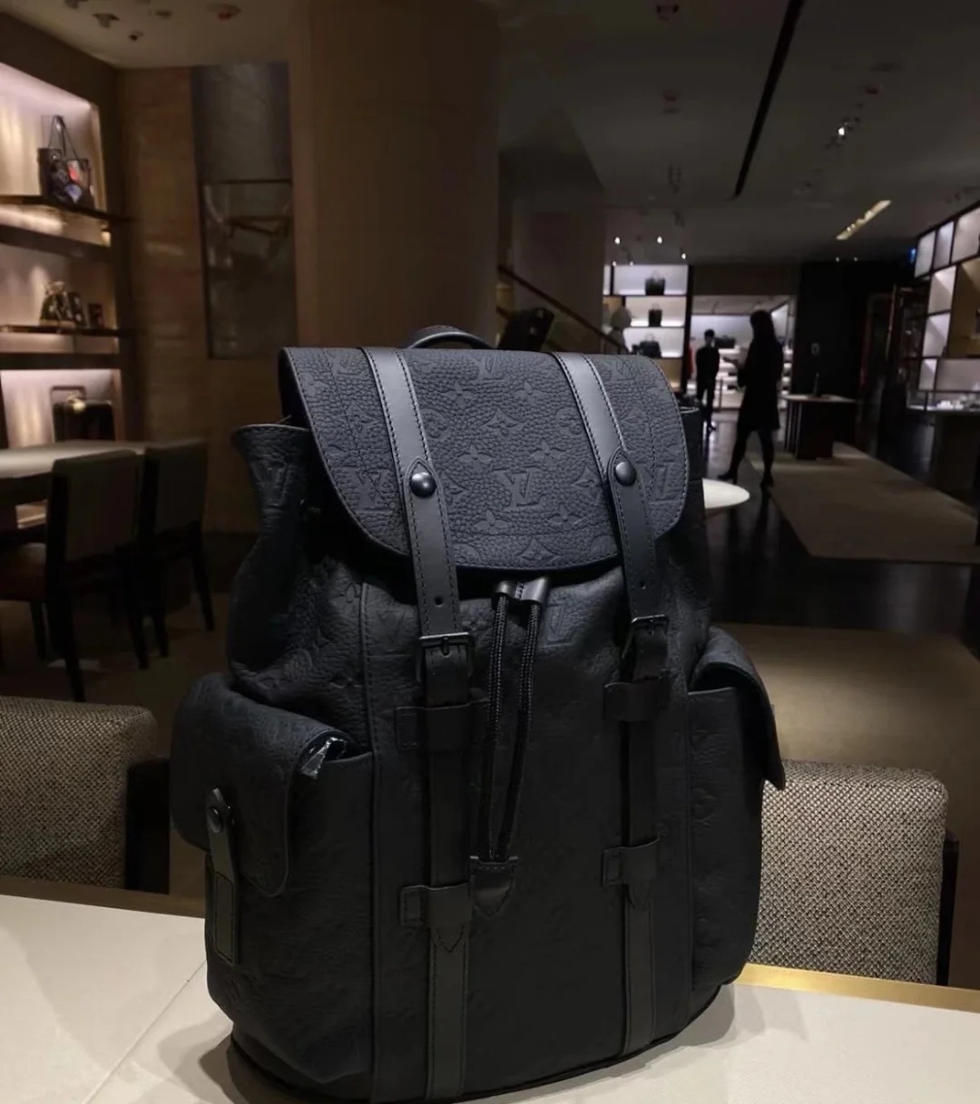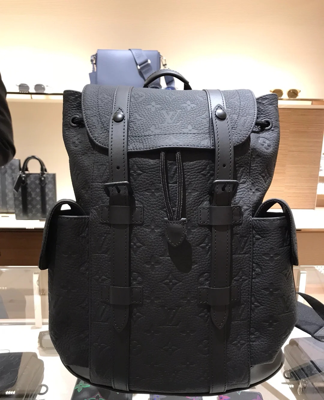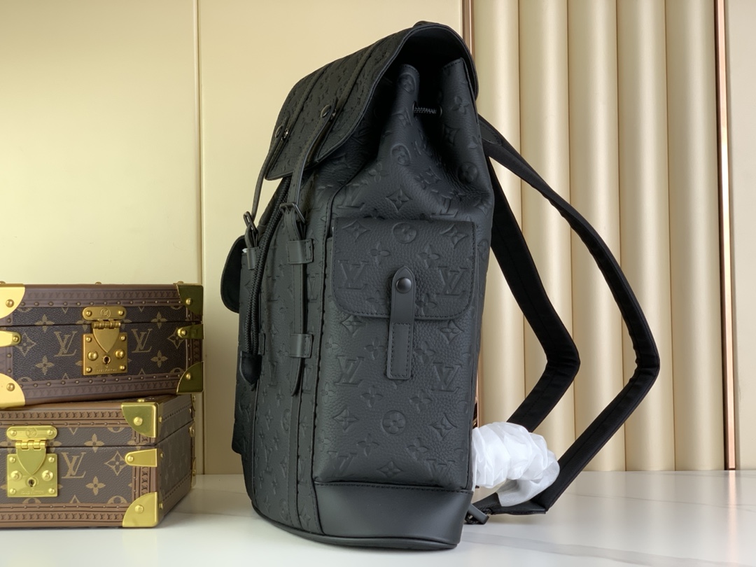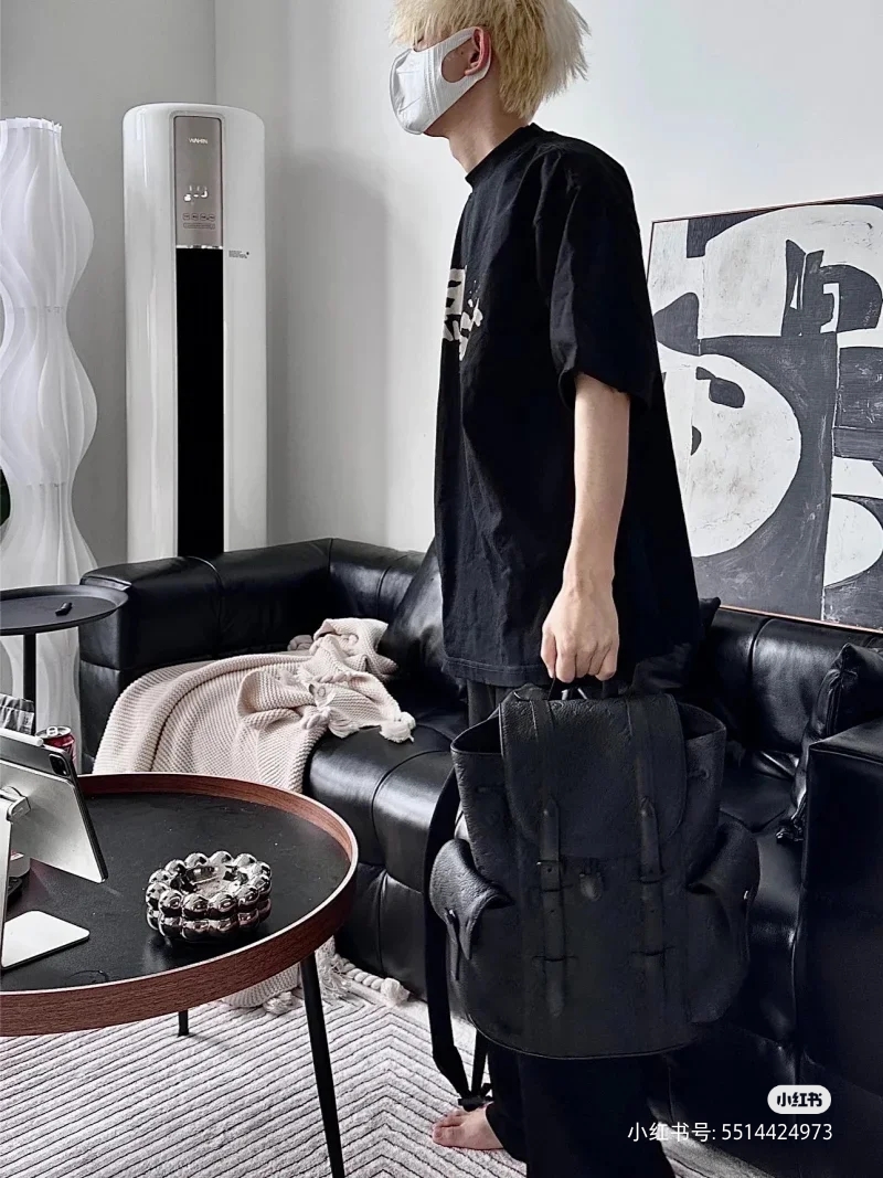 NIGO Louis Vuitton CHRISTOPHER Men's Black Dark Logo Printed Drawstring Flap Closure Cowhide Leather Backpack Shoulder Bag #nigo72947
