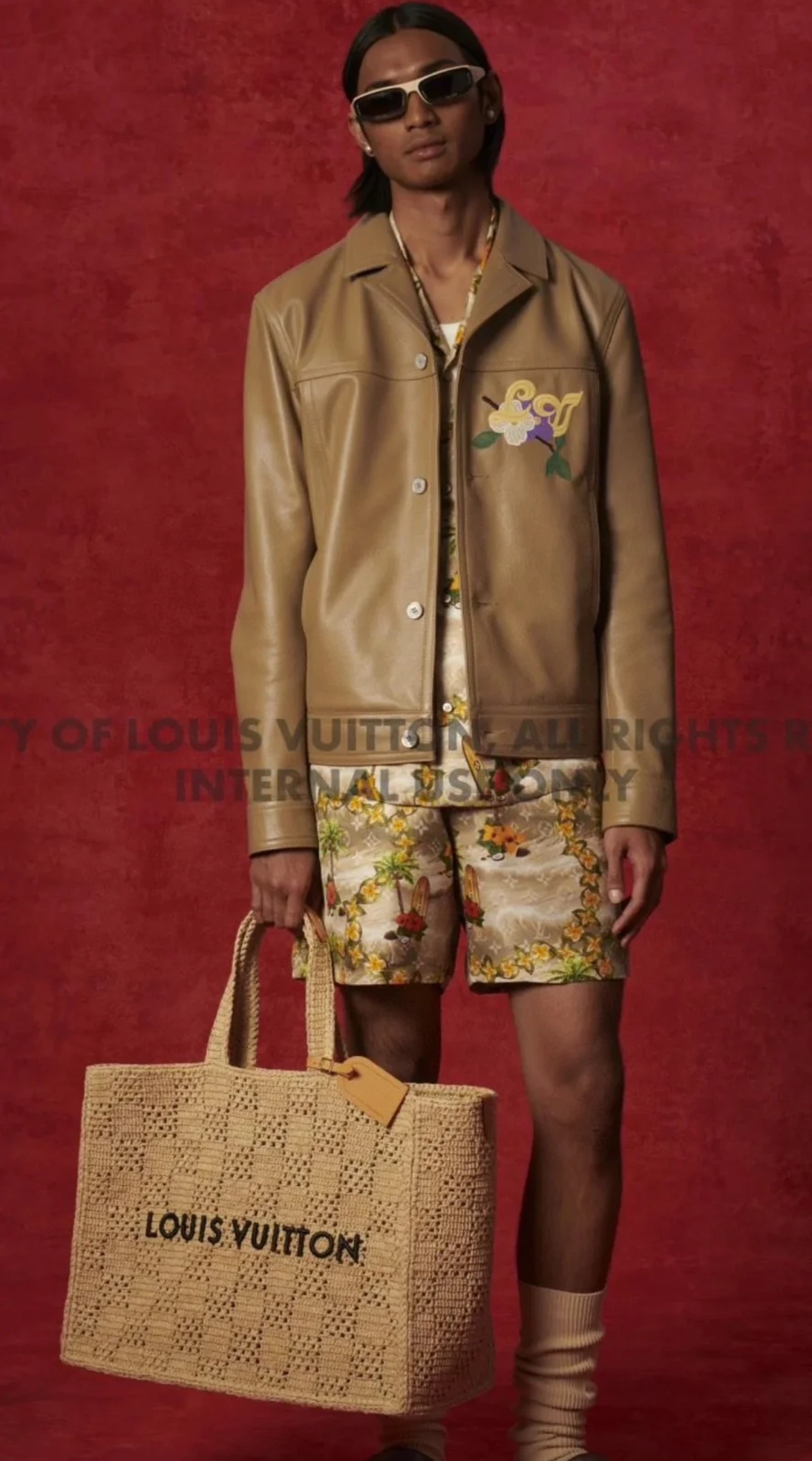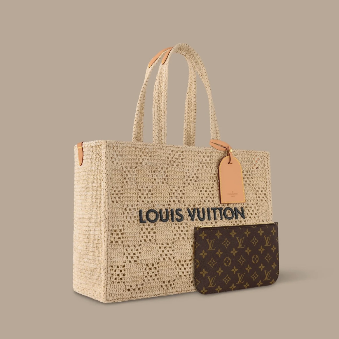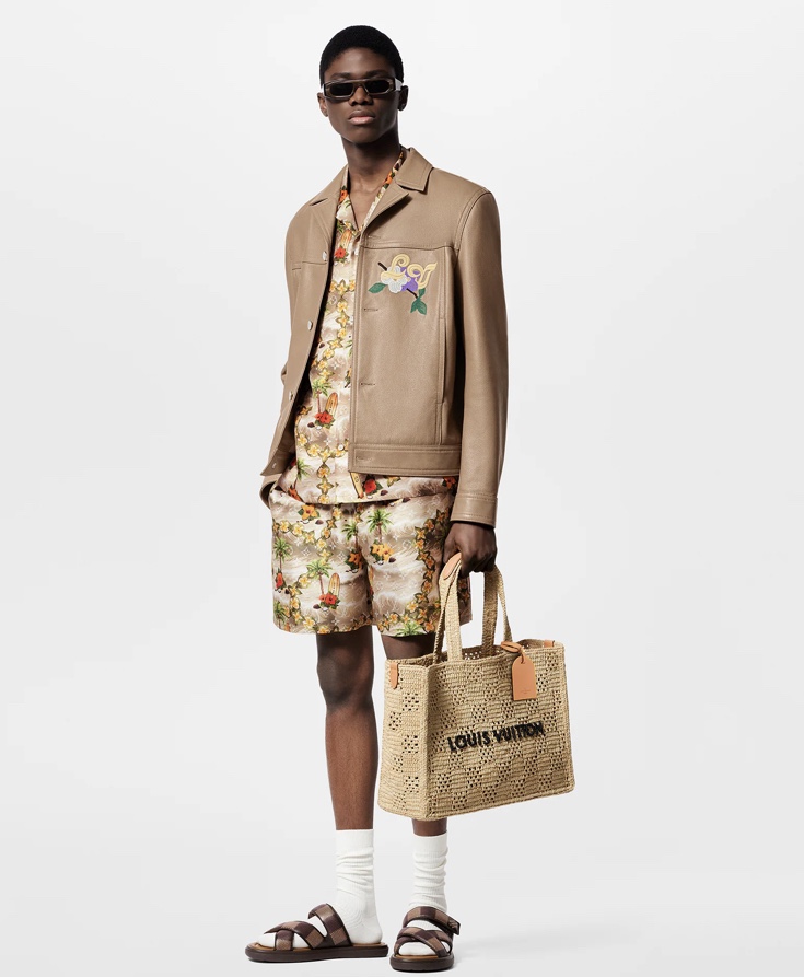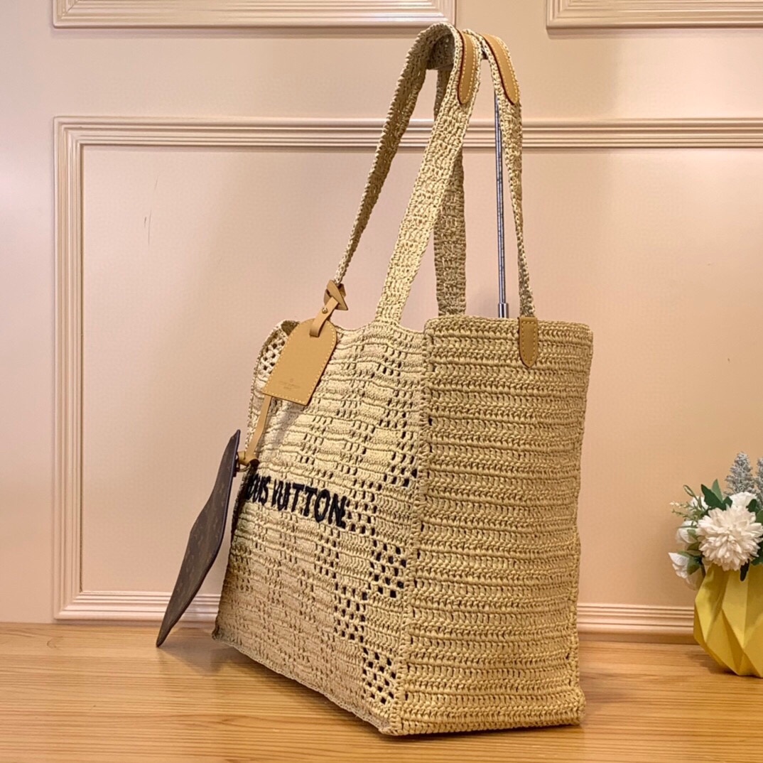 NIGO Louis Vuitton Men's and Women's Khaki Letter Printed Open Closure Leather Shopping Bag Handbag Tote Bags #nigo72965
