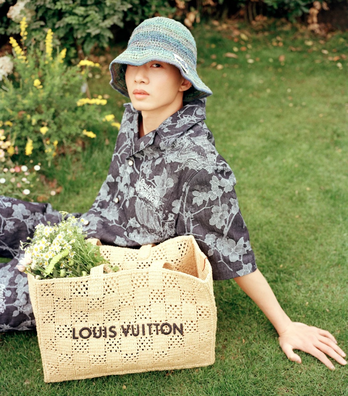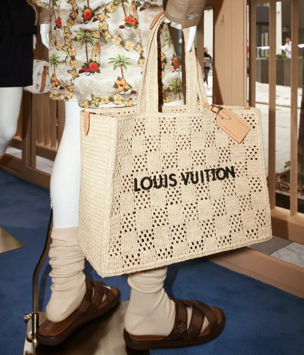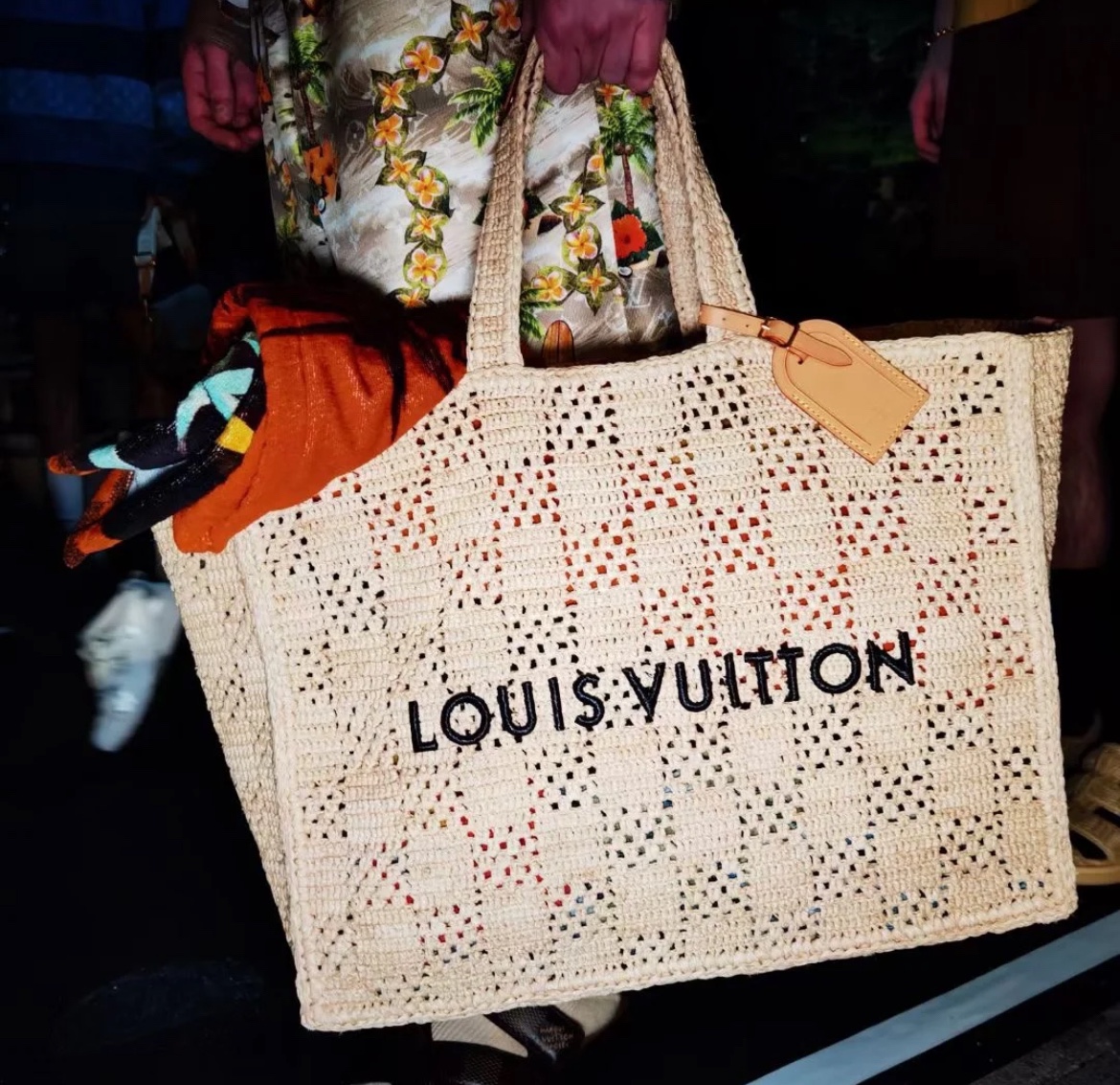 NIGO Louis Vuitton Men's and Women's Khaki Letter Printed Open Closure Leather Shopping Bag Handbag Tote Bags #nigo72965