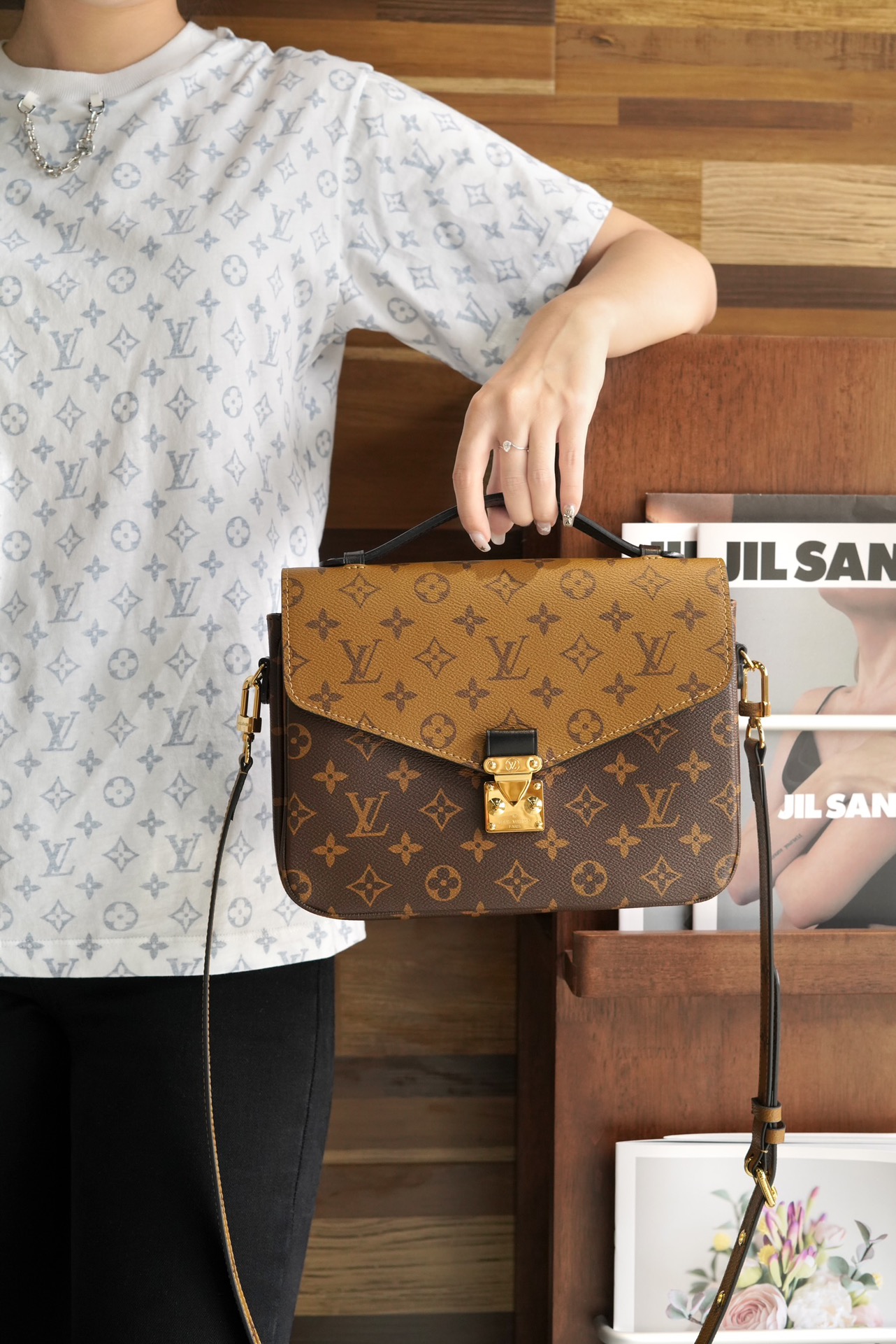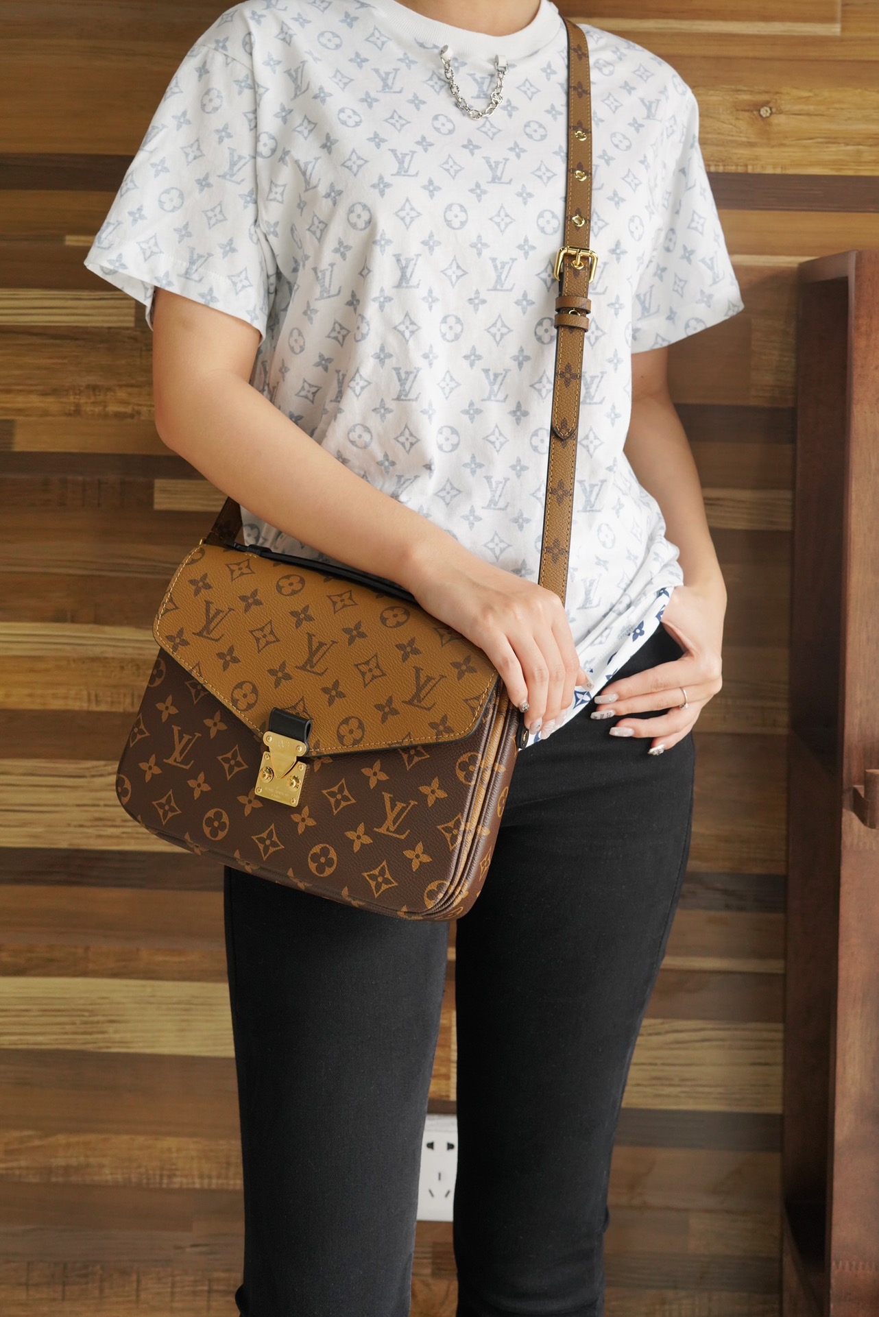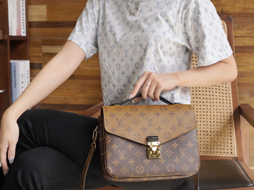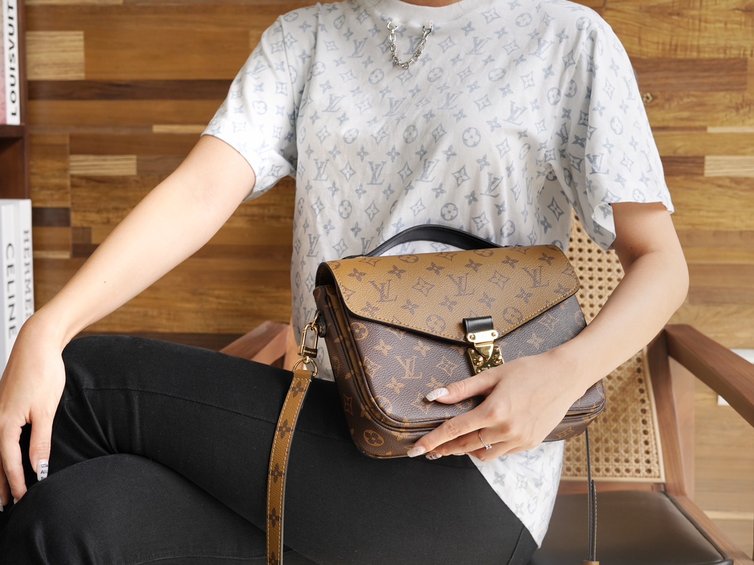 NIGO Louis Vuitton Pochette Métis Women's Brown Letter Printed Coated Canvas Patchwork Cowhide Underarm Bag Shoulder Crossbody Bags #nigo72976