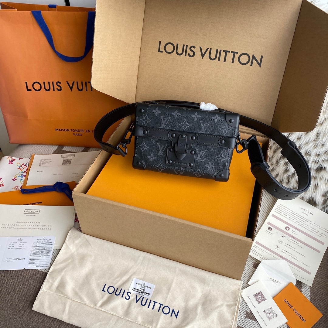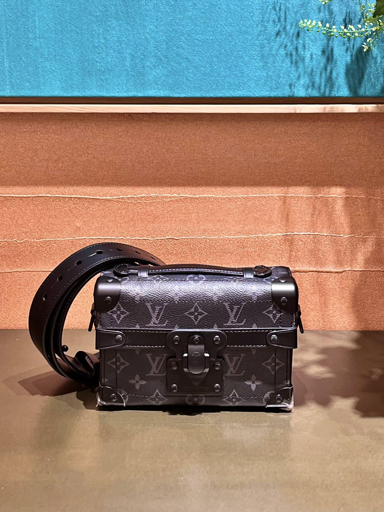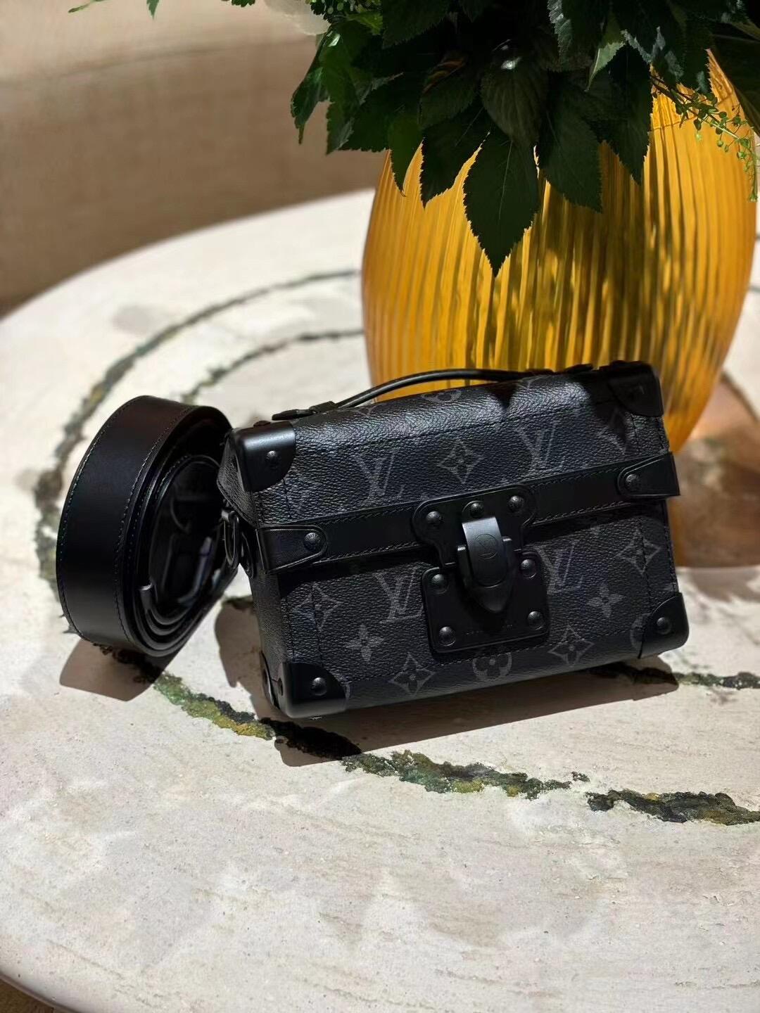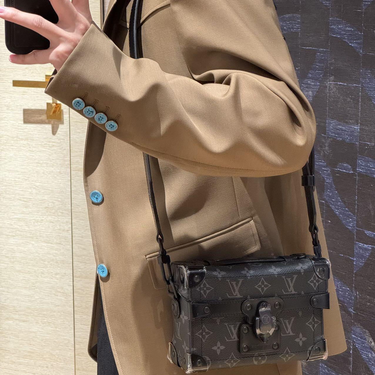 NIGO Louis Vuitton SOUL TRUNK Men's Black Removable Adjustable Shoulder Strap Letter Printed Coated Canvas Quilted Cowhide Messenger Bag Single Shoulder Crossbody Handbag Bags #nigo72744