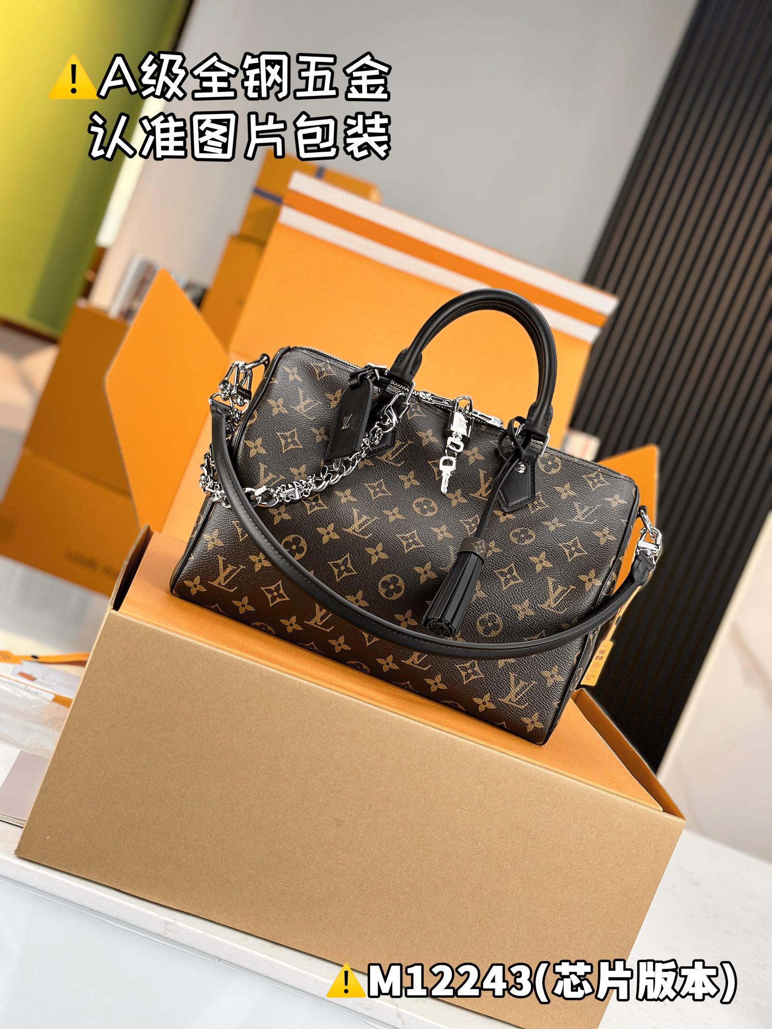 NIGO Louis Vuitton SPEEDY SOFT 30 DARK Women's Brown Detachable Adjustable Shoulder Strap Zipper Closure Bowling Bag Shoulder Slanting Handbag Bags #nigo75634