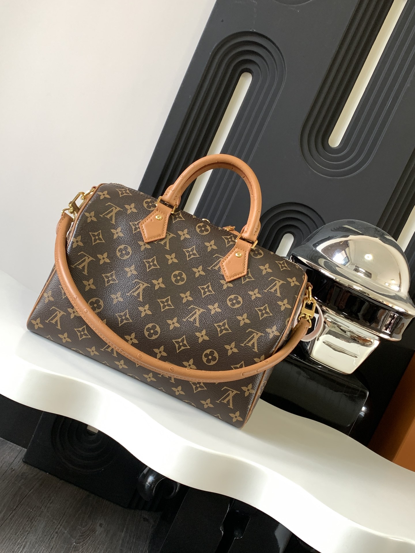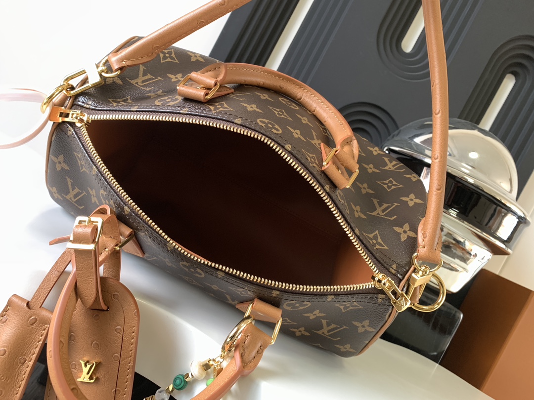 NIGO Louis Vuitton SPEEDY SOFT 30 Women's Brown Detachable Adjustable Shoulder Strap Leather Trimmed Shoulder Crossbody Handbag Bag Bags #nigo74548