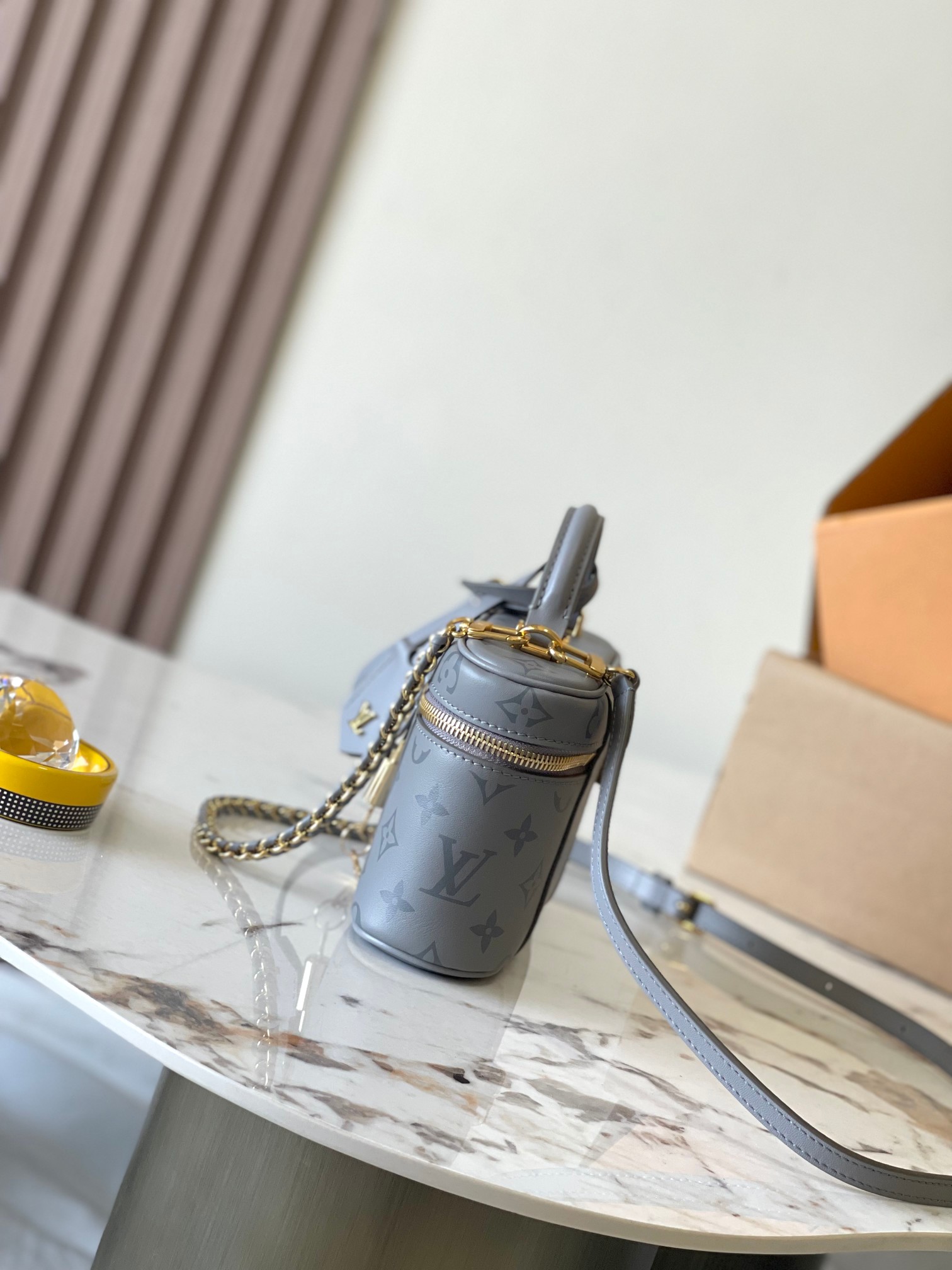 NIGO Louis Vuitton Vanity Chain Pouch Women's Gray Monogrammed Pendant Zipper Closure Calfskin Gloves Cosmetic Bag Bags #nigo73543