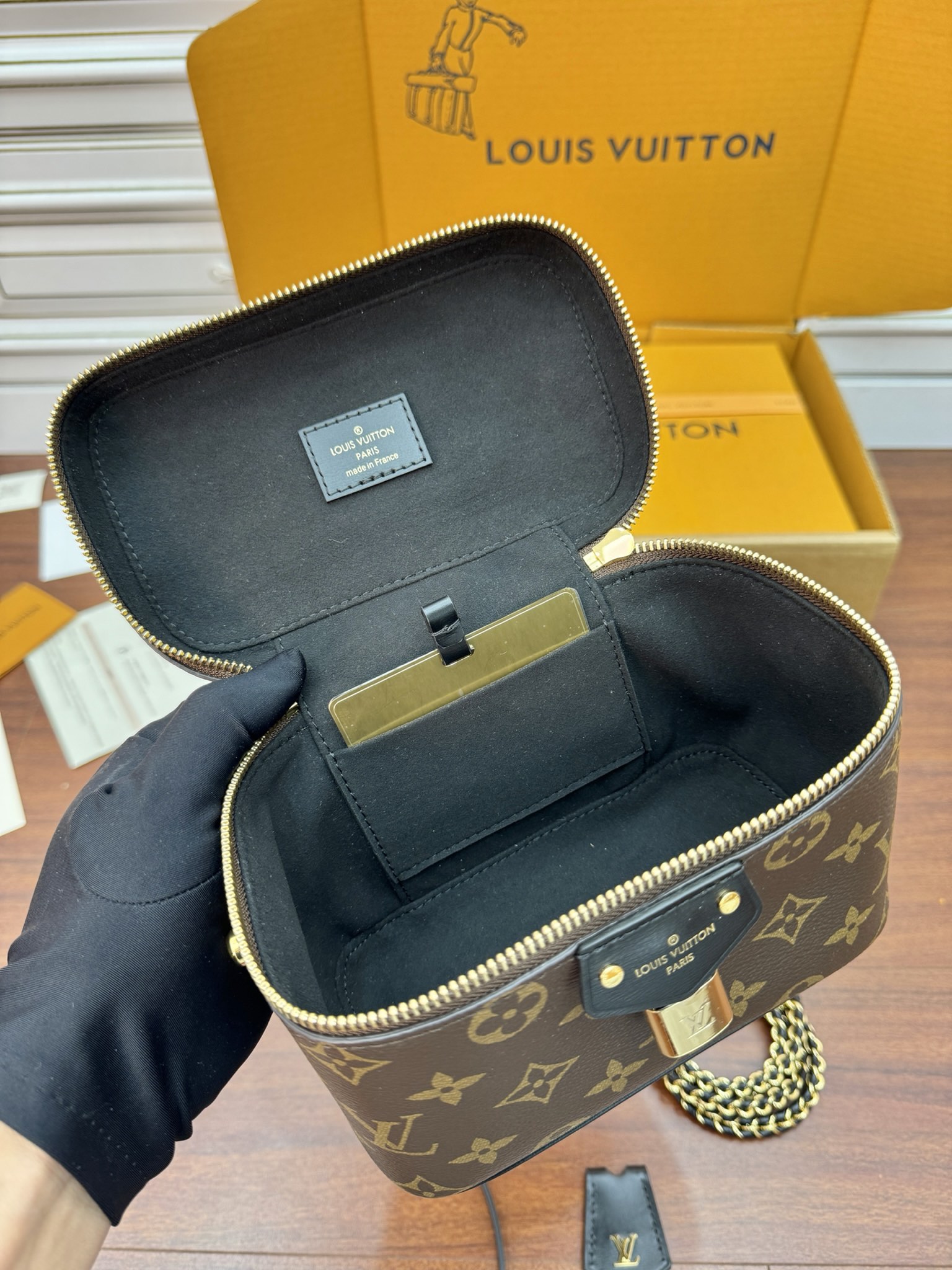 NIGO Louis Vuitton VANITY Women's Brown Old Flower Full Print Zipper Closure Leather Tote Cosmetic Bag Bags #nigo73331