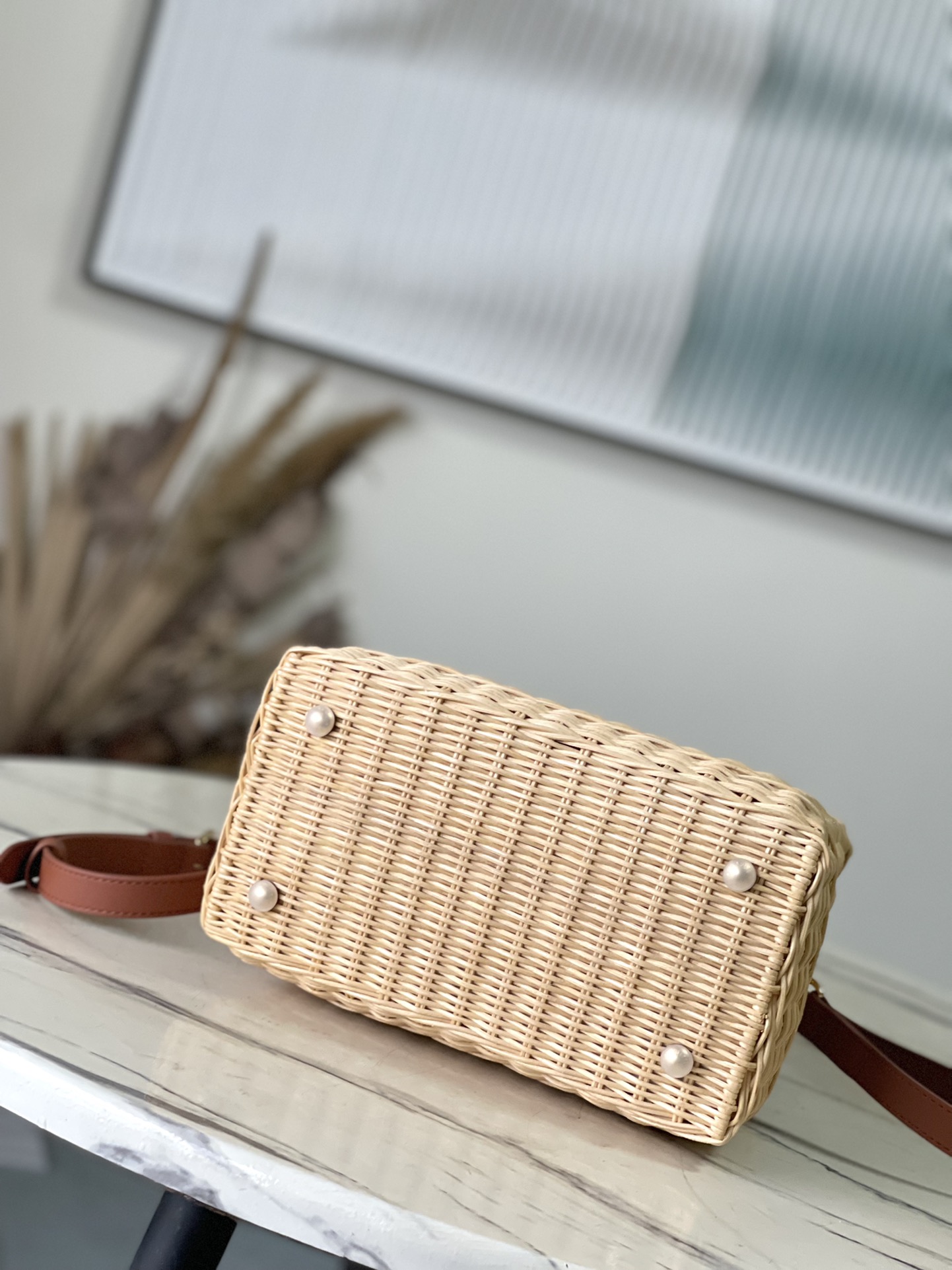 NIGO Louis Vuitton Women's Woven Rattan Patchwork Leather Tote Shoulder Bag Bags #nigo73476