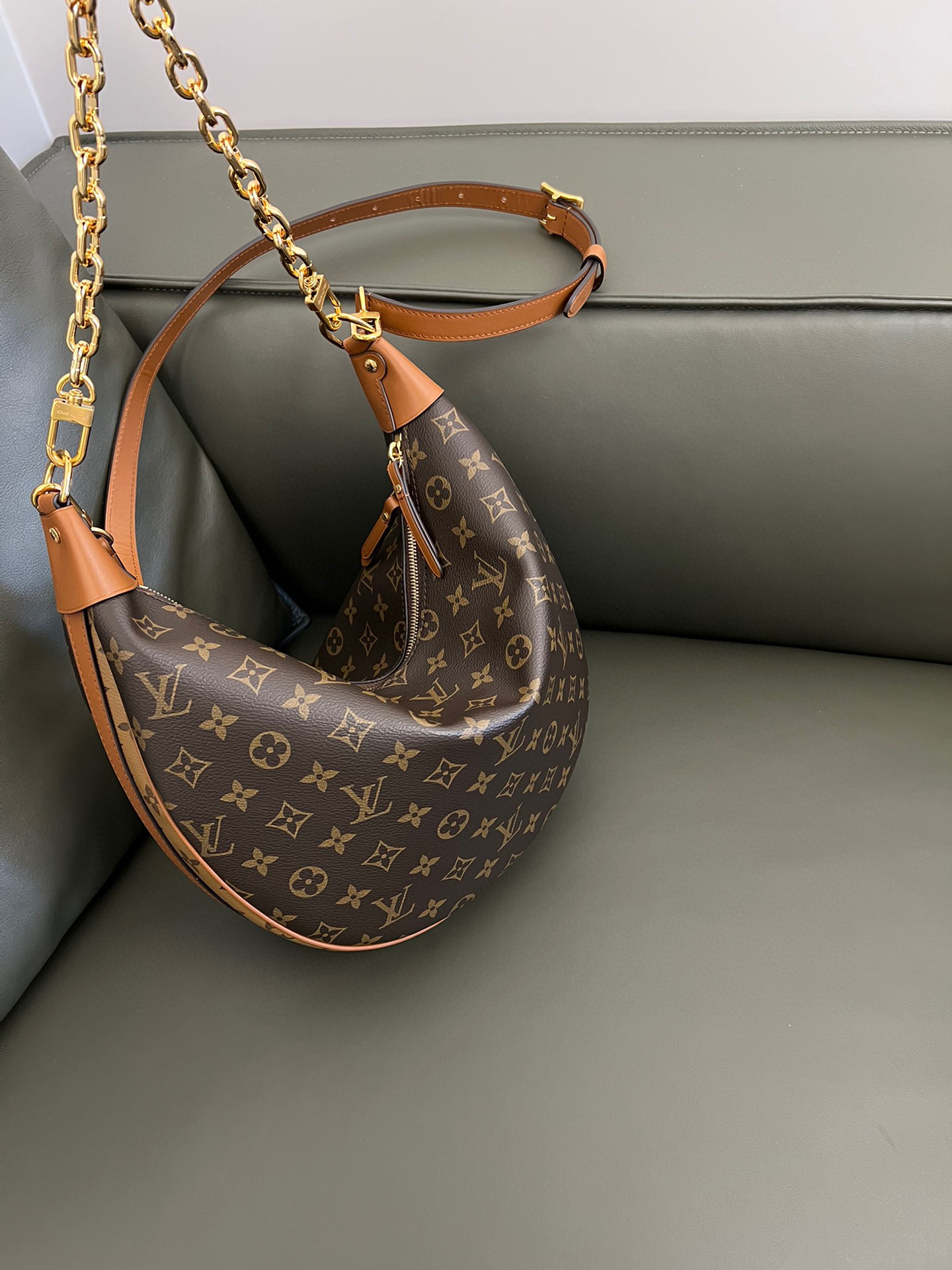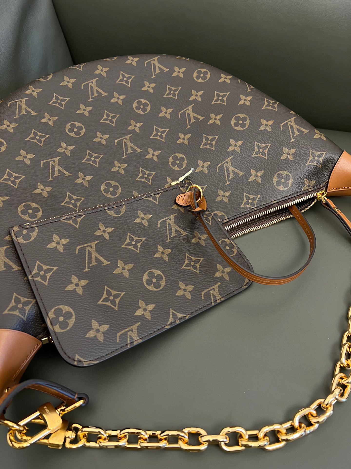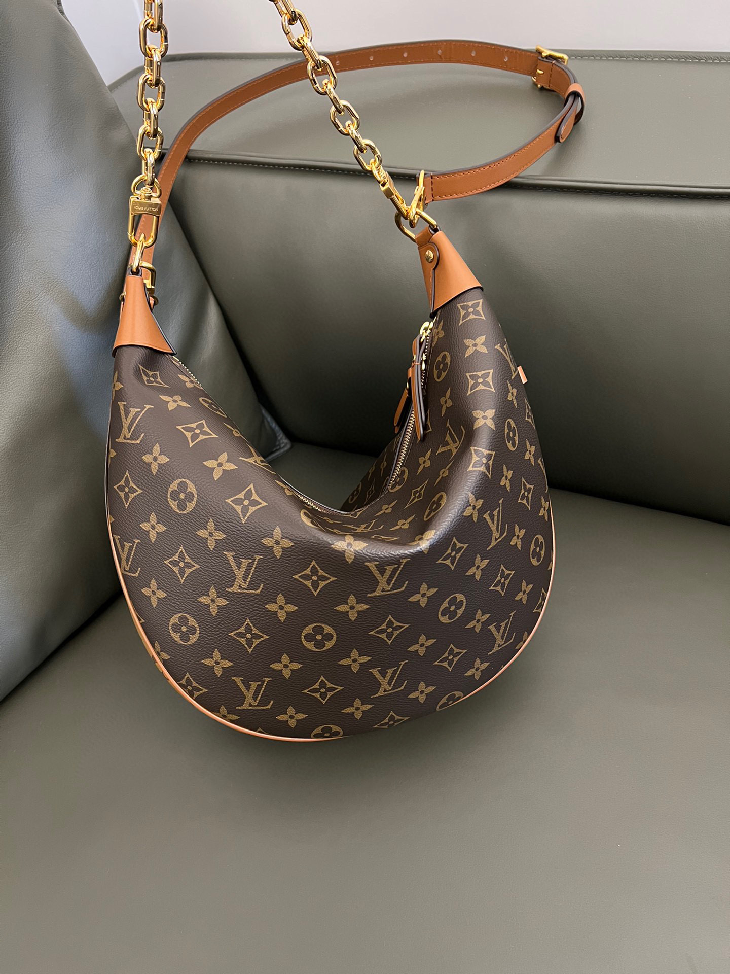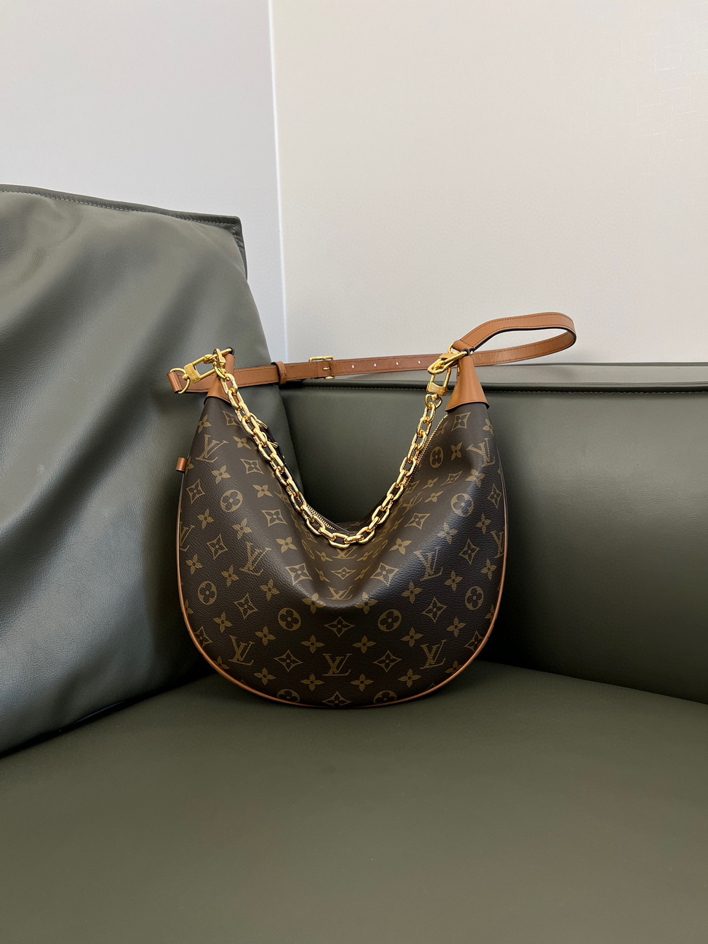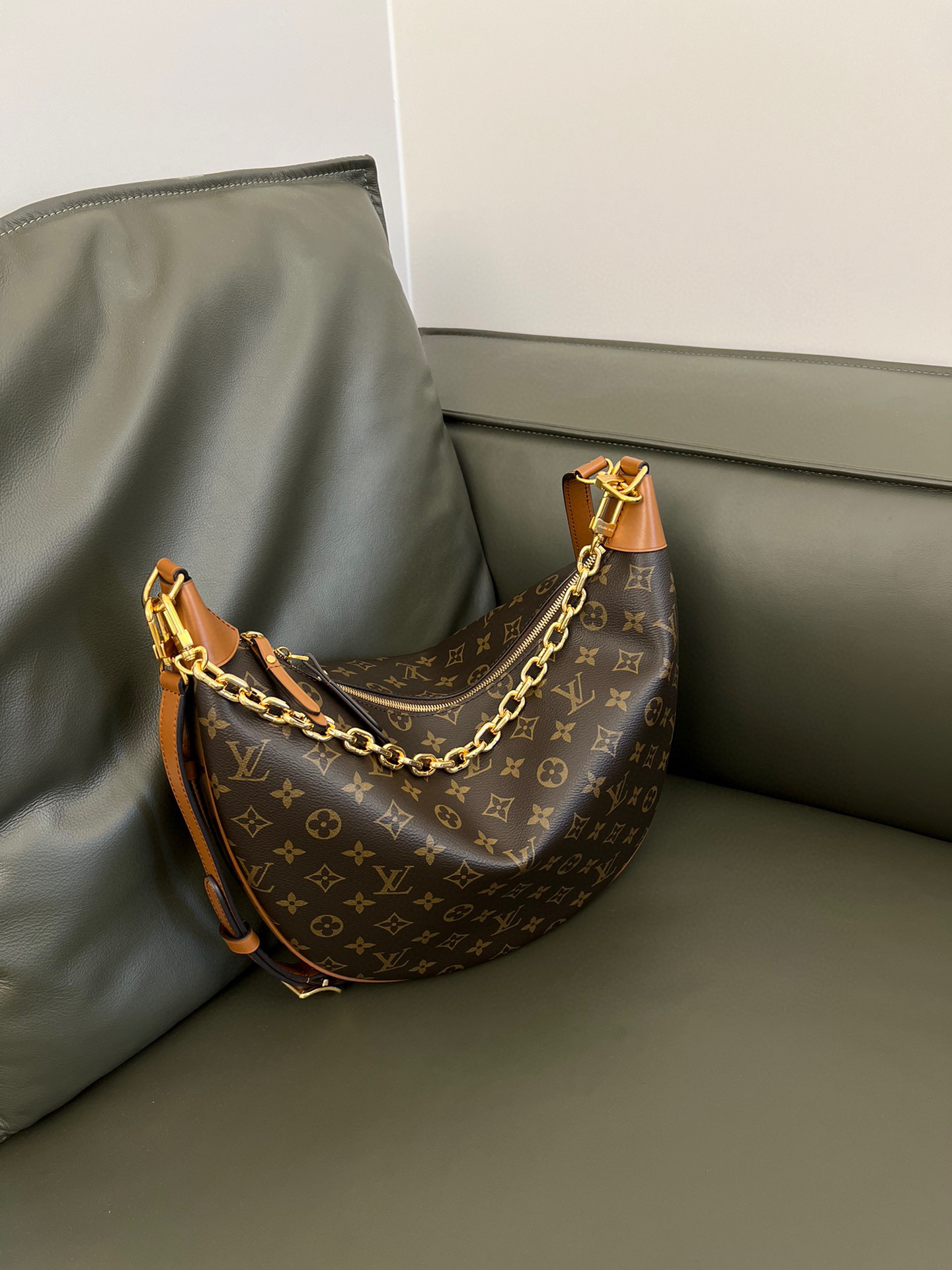 Louis Vuitton Loop Hobo Curry Leather Printed Chain Pea Bun Bag #nigo21736