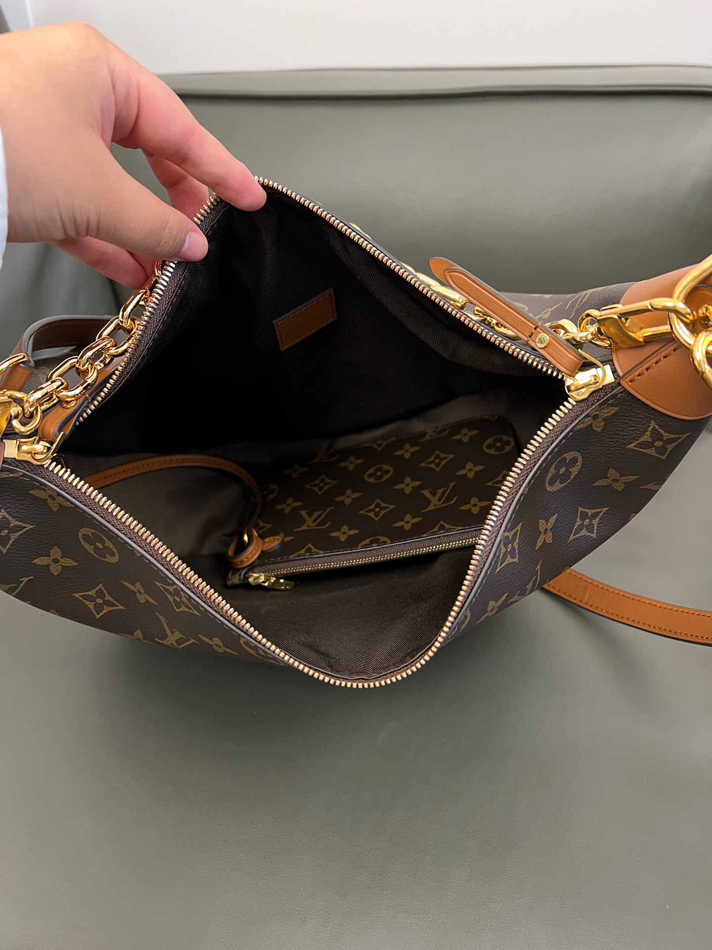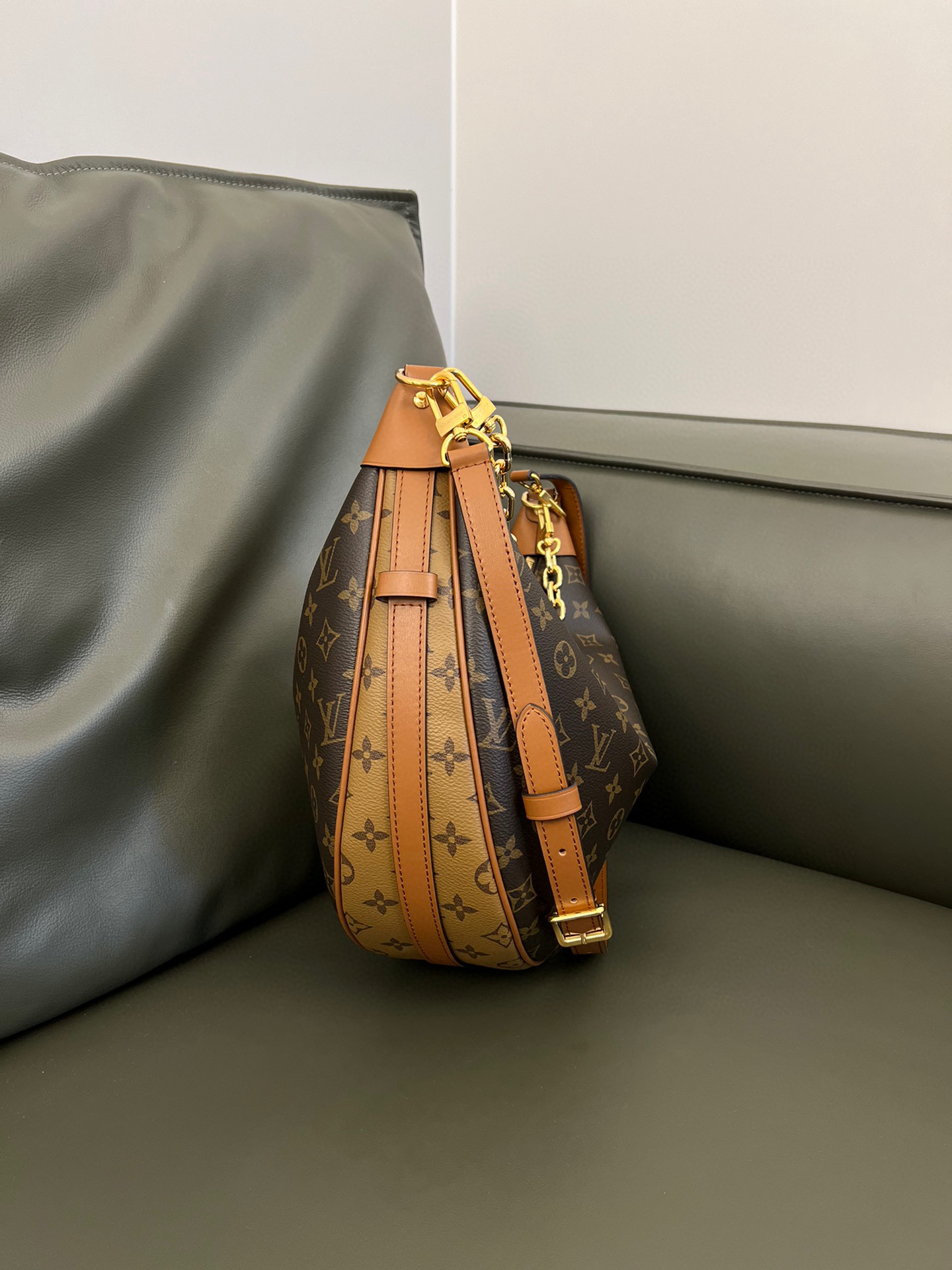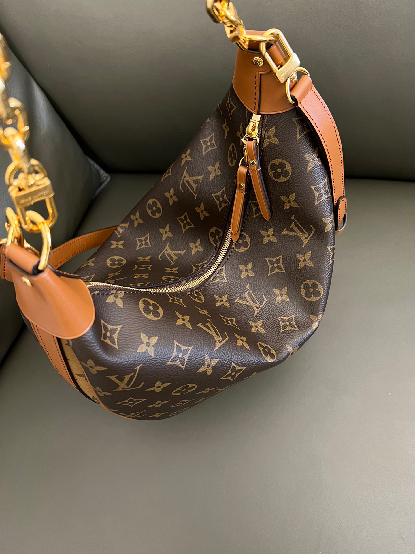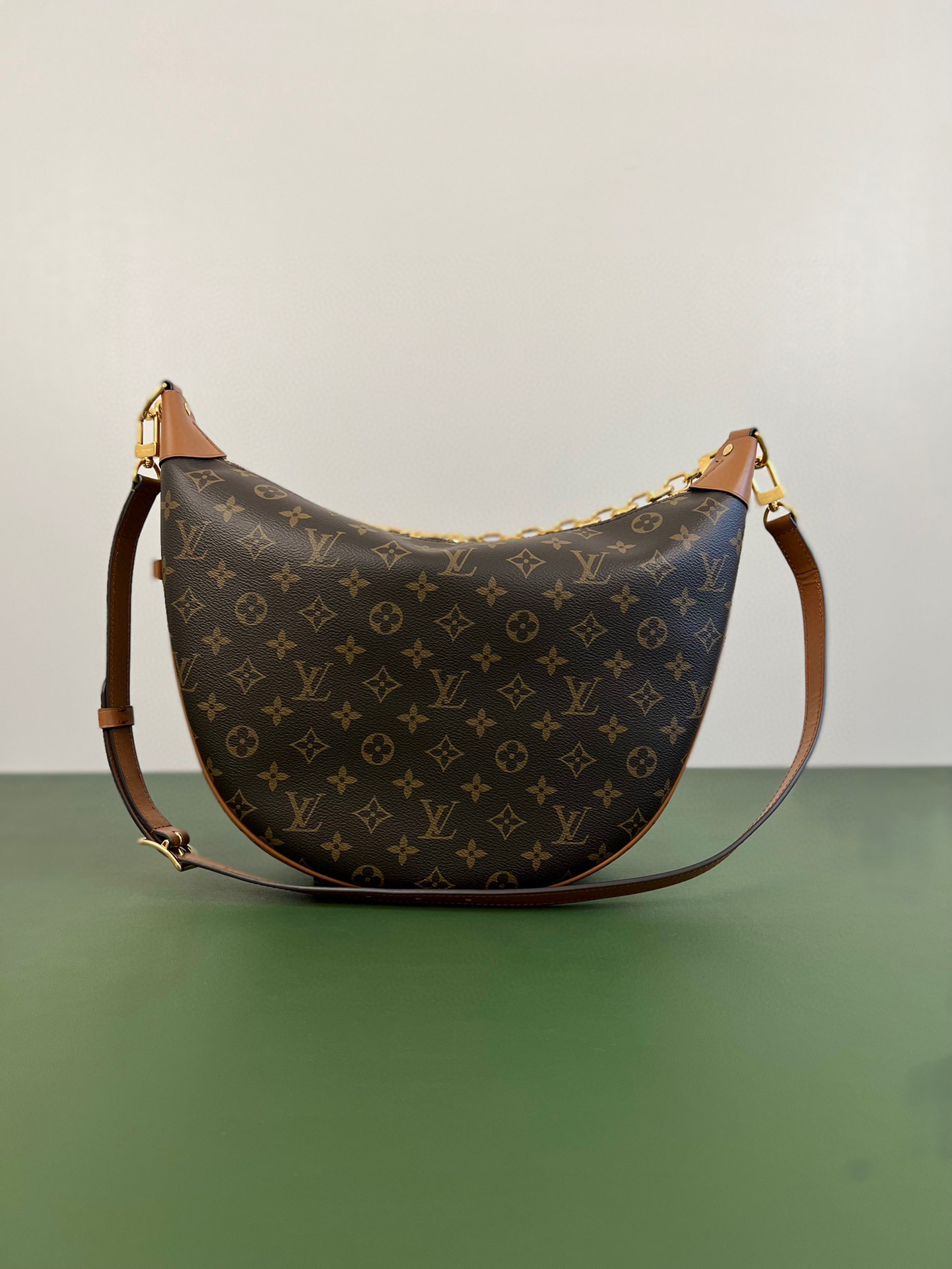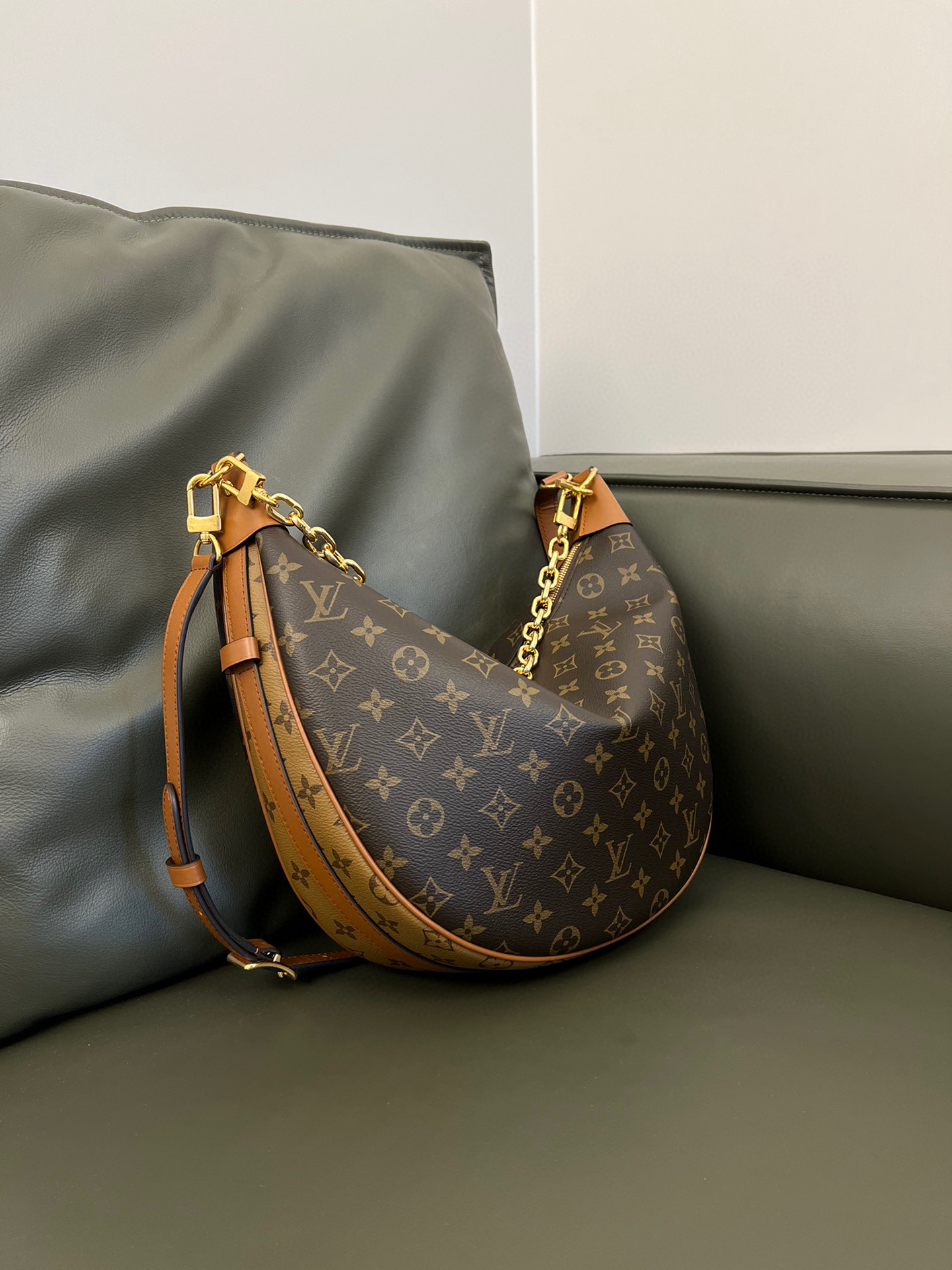 Louis Vuitton Loop Hobo Curry Leather Printed Chain Pea Bun Bag #nigo21736