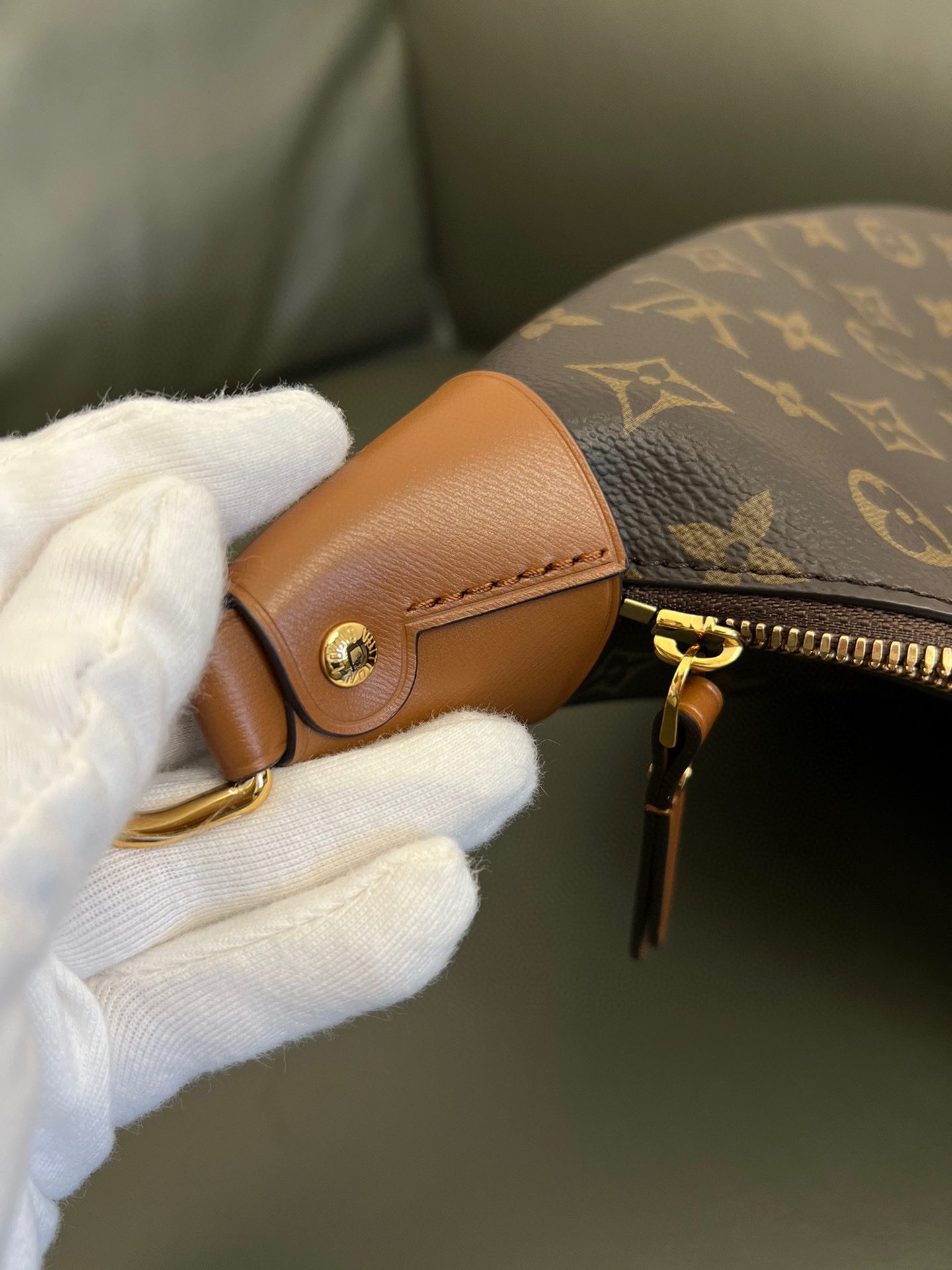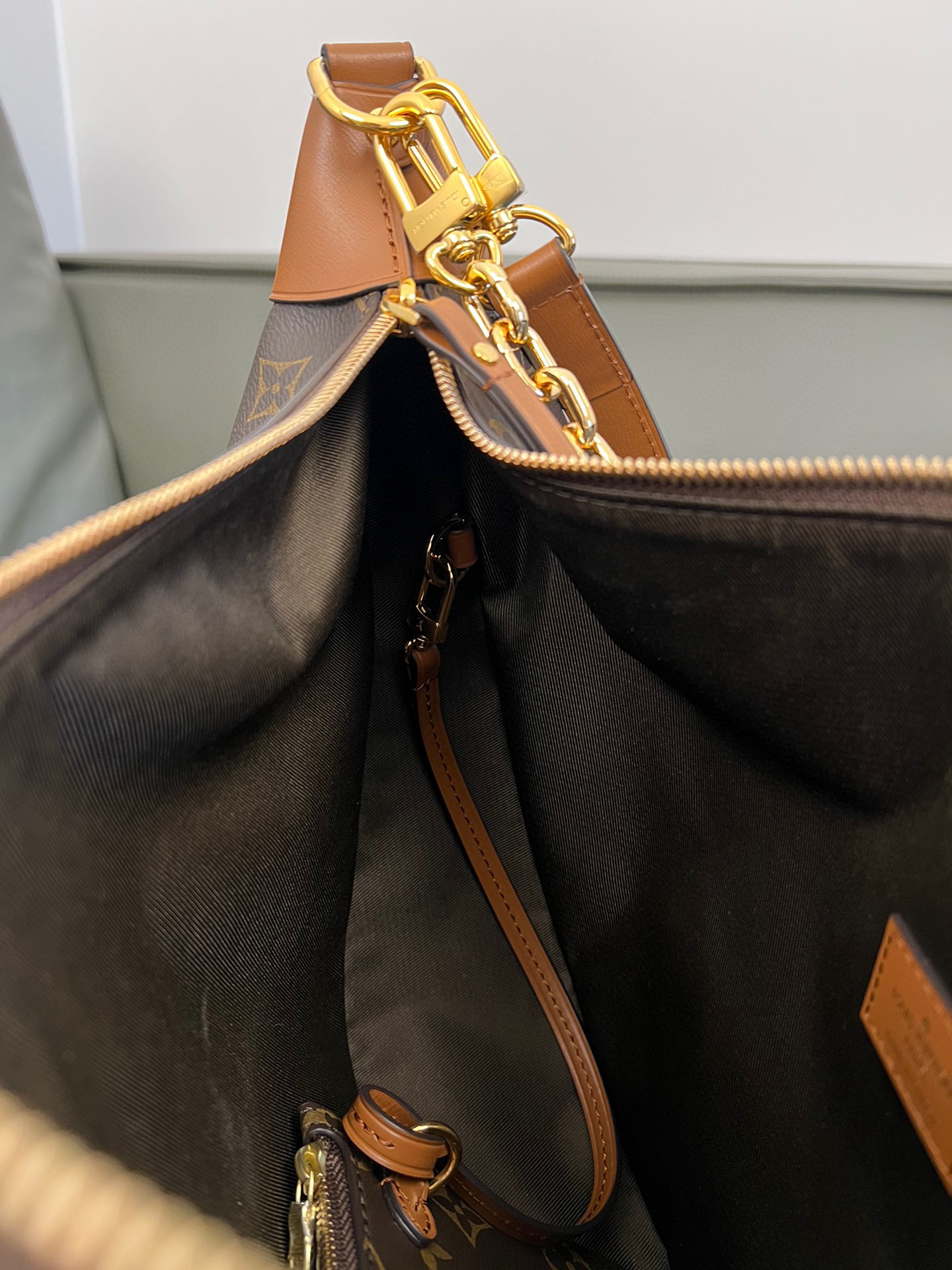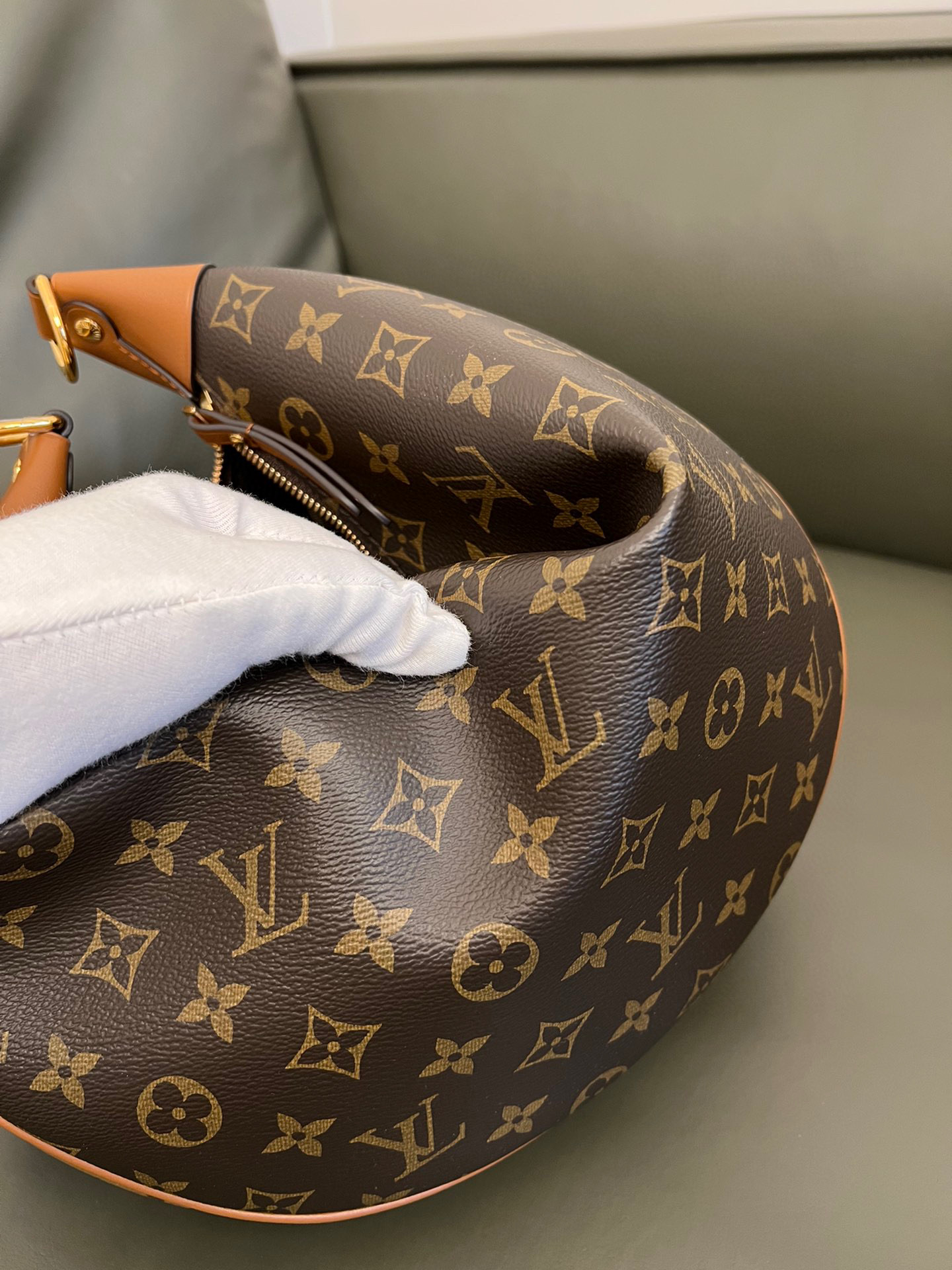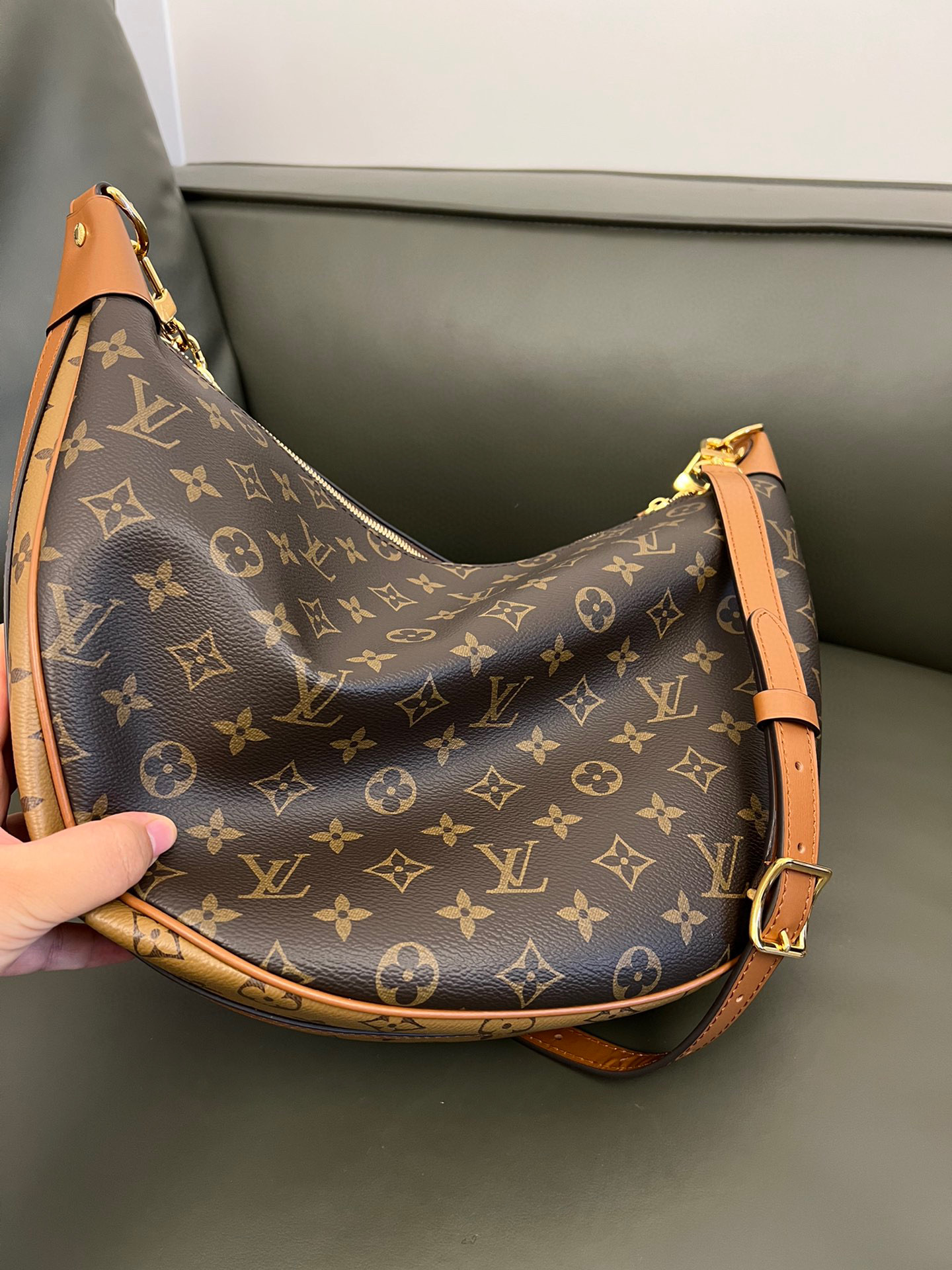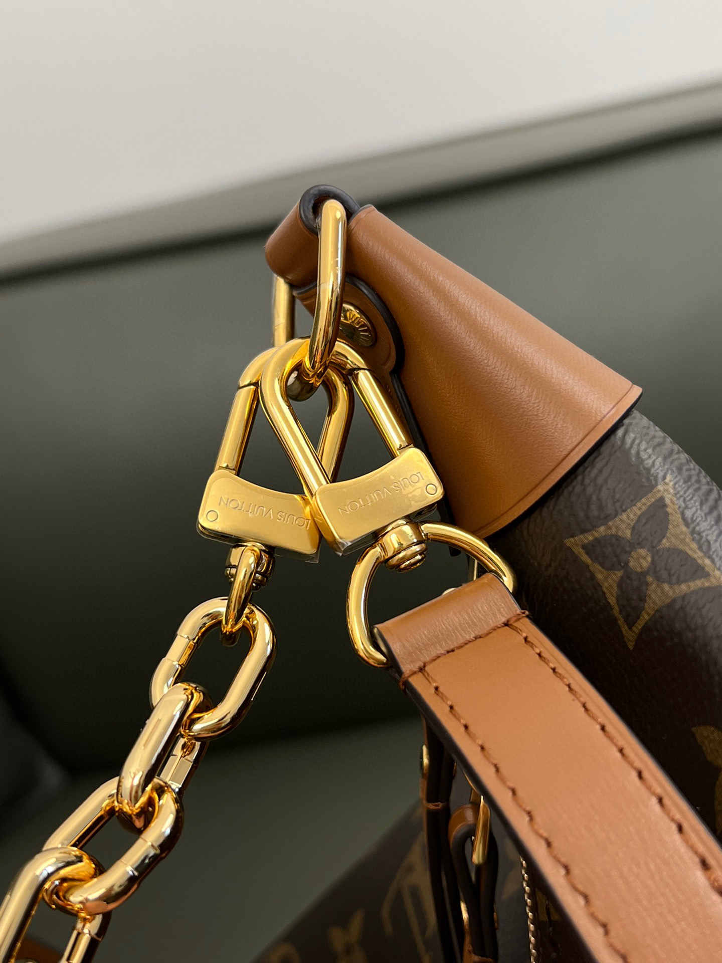 Louis Vuitton Loop Hobo Curry Leather Printed Chain Pea Bun Bag #nigo21736