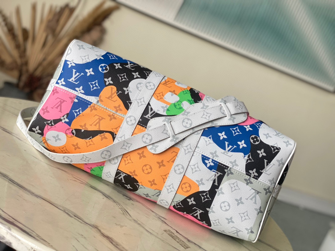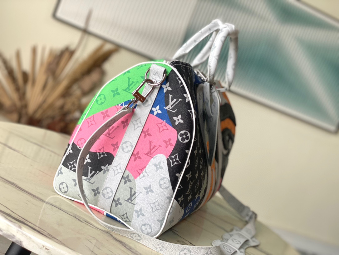 Louis Vuitton LV Portrait Coated Canvas + Cowhide Leather Travel Bag KEEPALL BANDOULIERE 45 #nigo96195