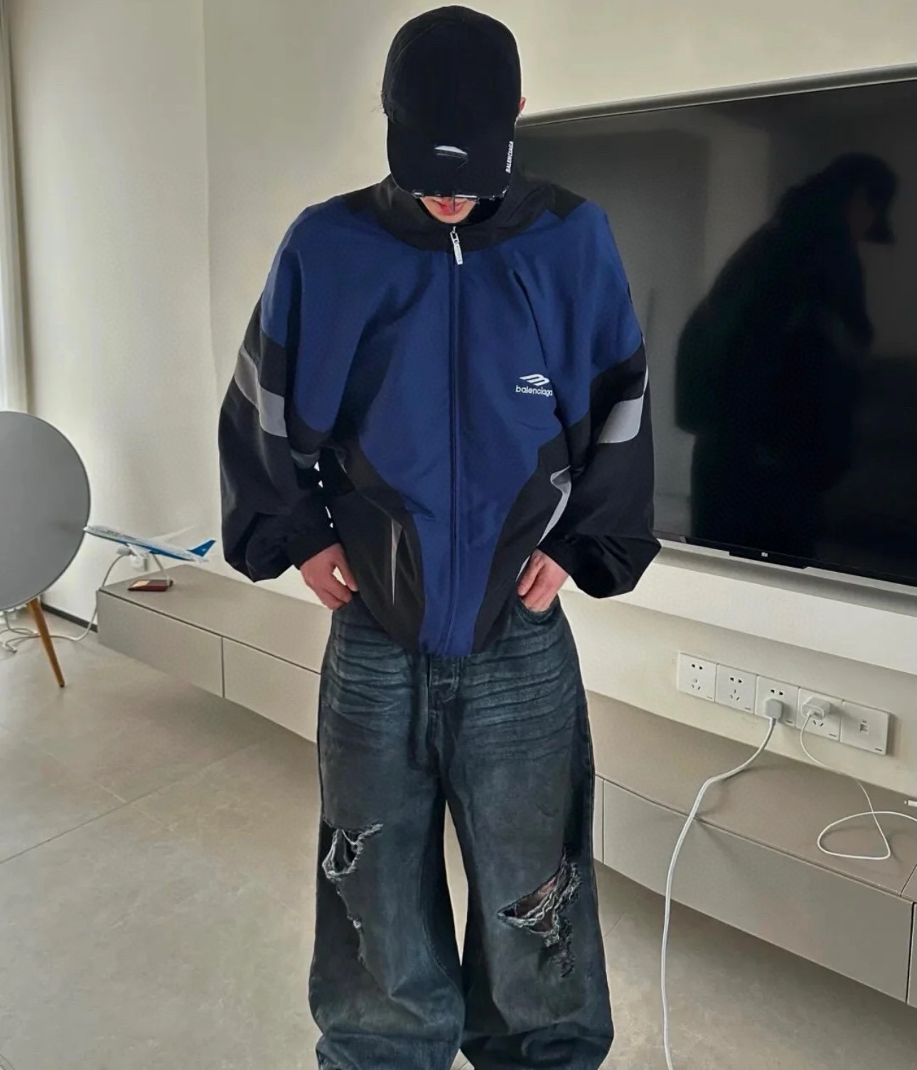 NIGO 3B Sports Icon Off Shoulder Balenciaga Men's and Women's Autumn and Winter Letter Logo Print Splicing Zip Loose Fit Long Sleeve Jacket #nigo72595