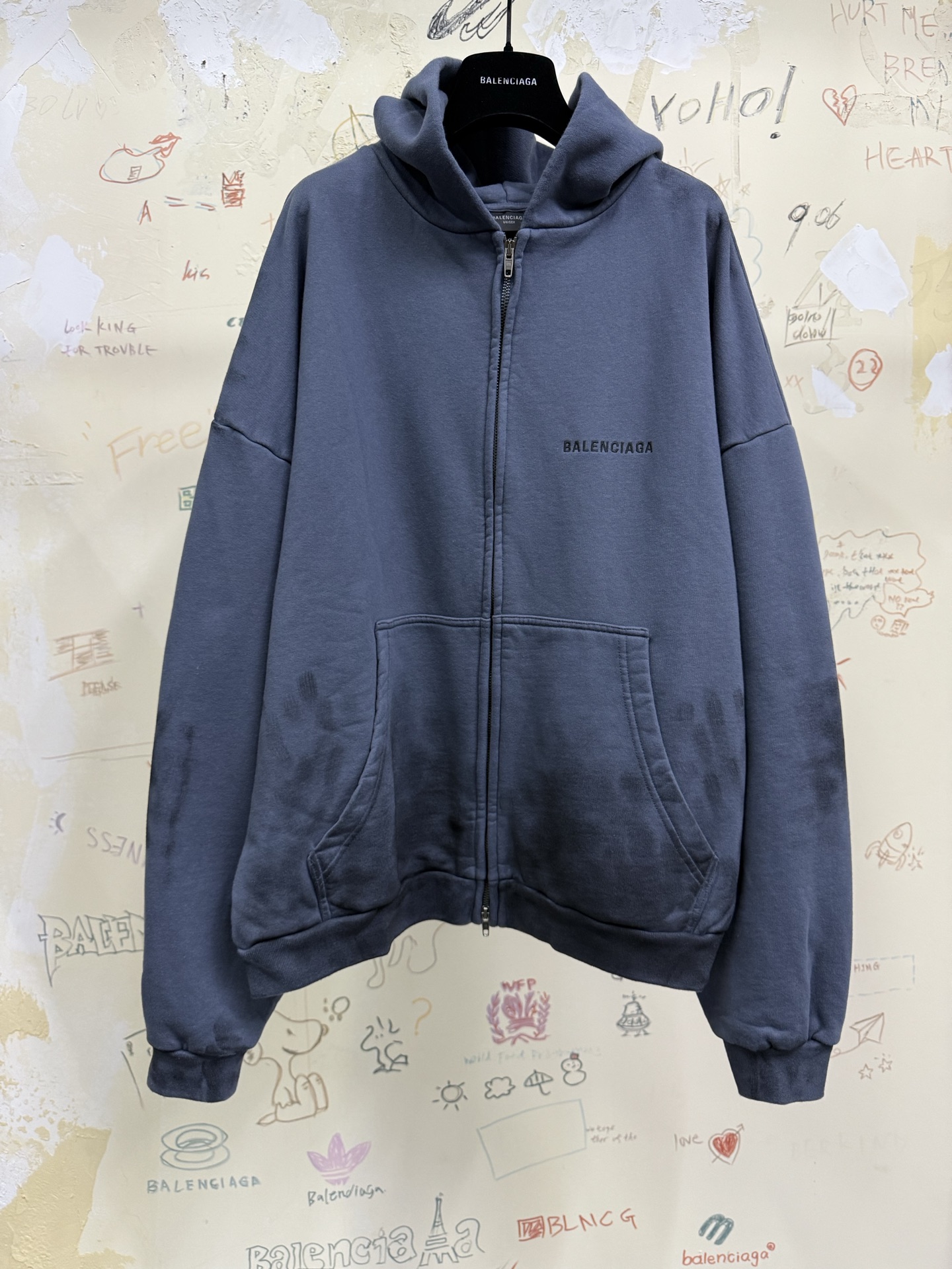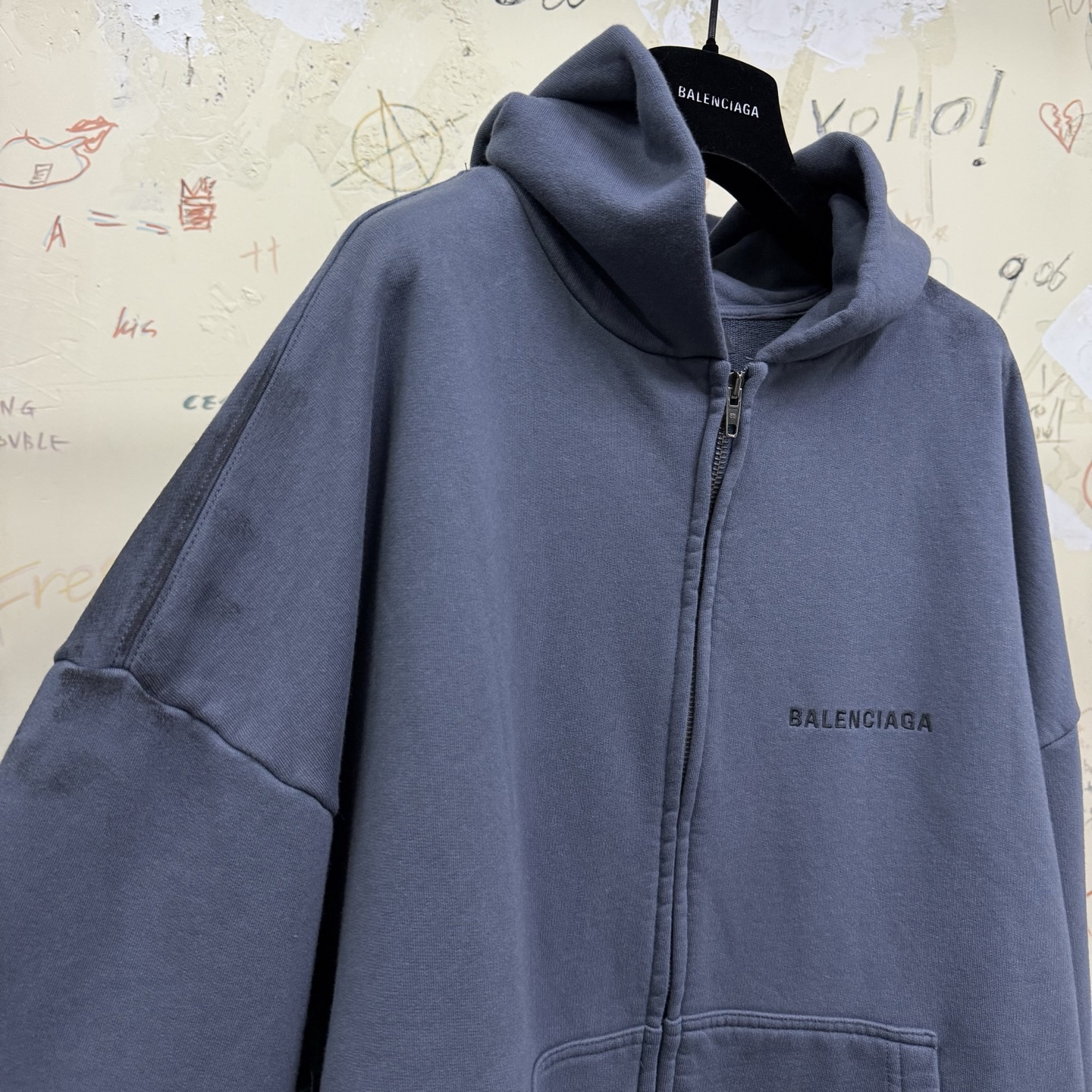 NIGO Balenciaga 25FW Men s Balenciaga Back Zipup Hoodie Regular Fit in Faded Dark Blue black Hoodie Shorts Set #nigo332366
