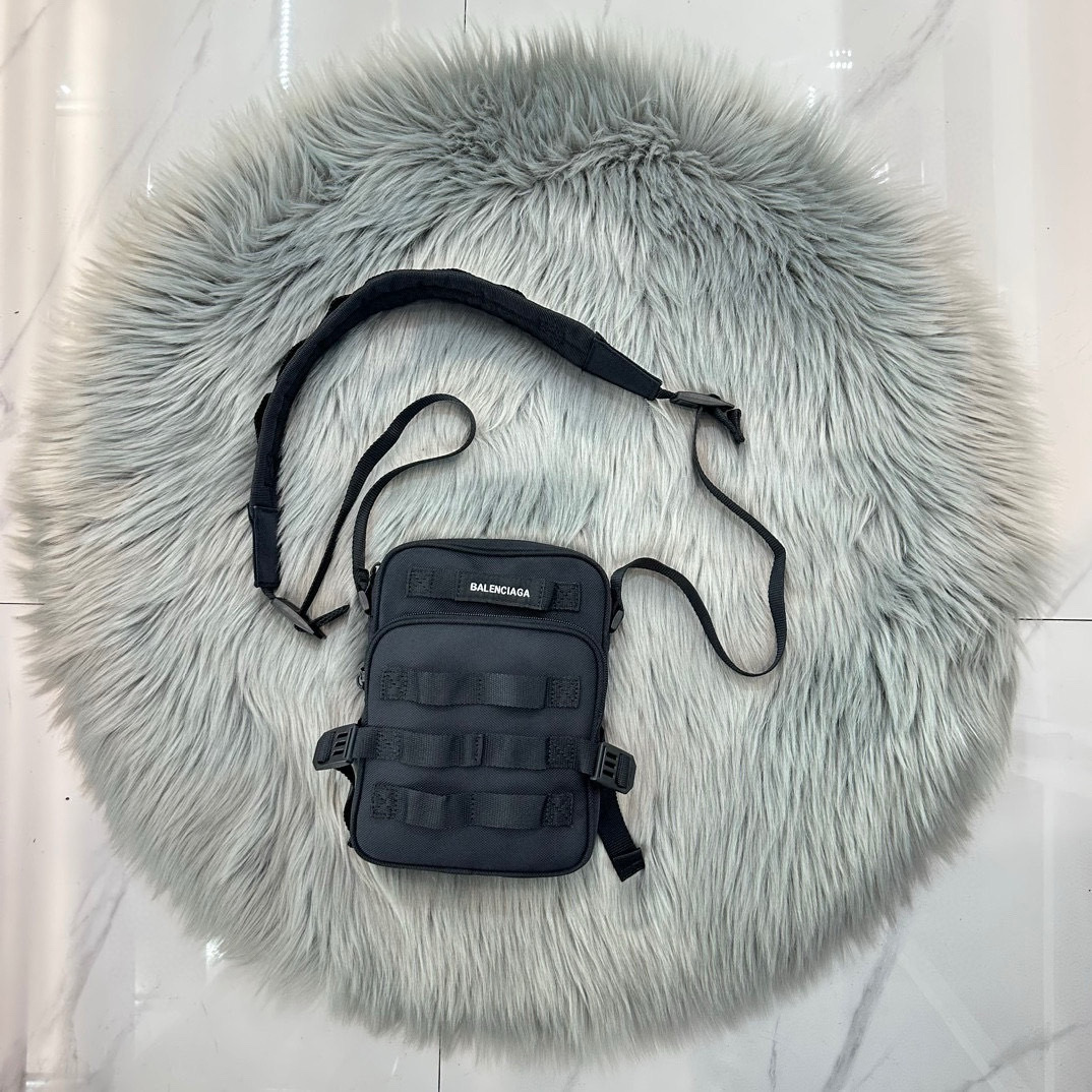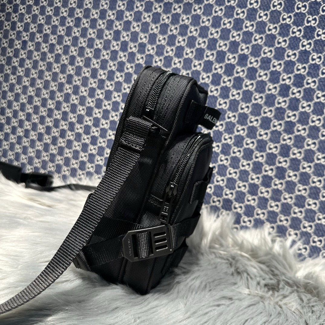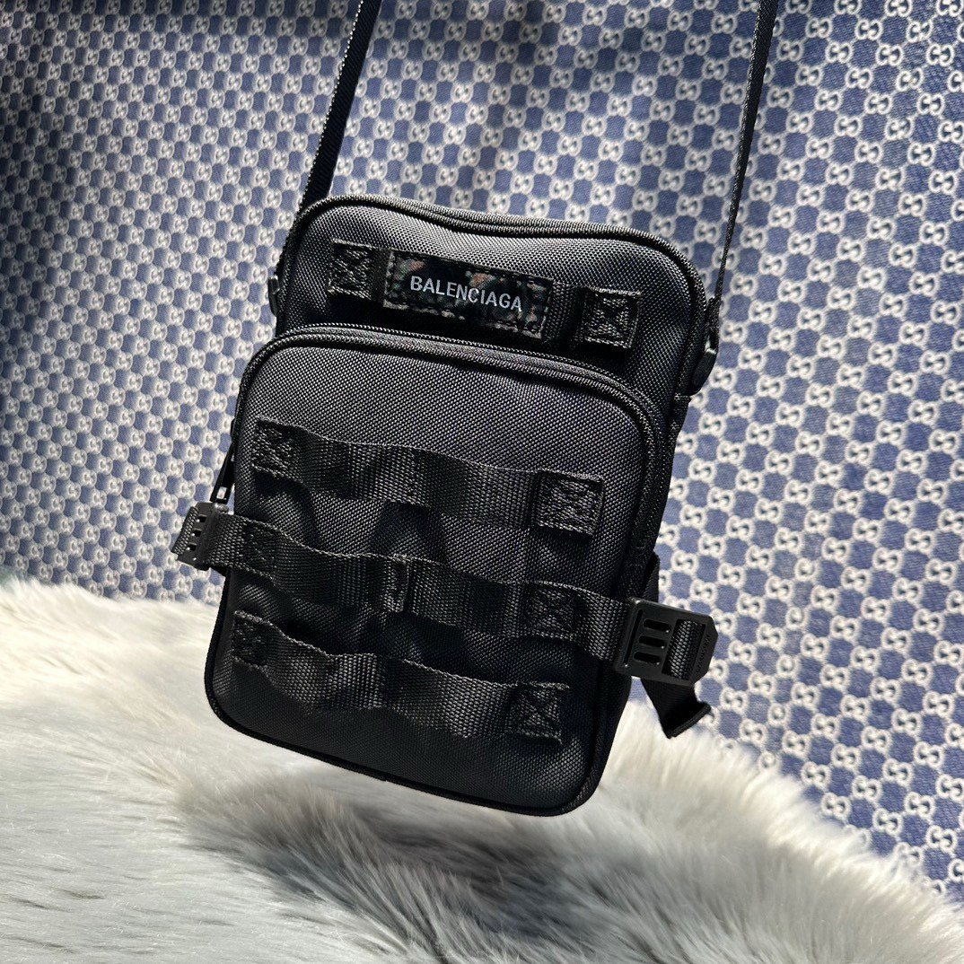 NIGO Balenciaga Army Men's Black Removable Adjustable Shoulder Strap Zipper Closure Nylon Polyester Shoulder Crossbody Bag #nigo98467