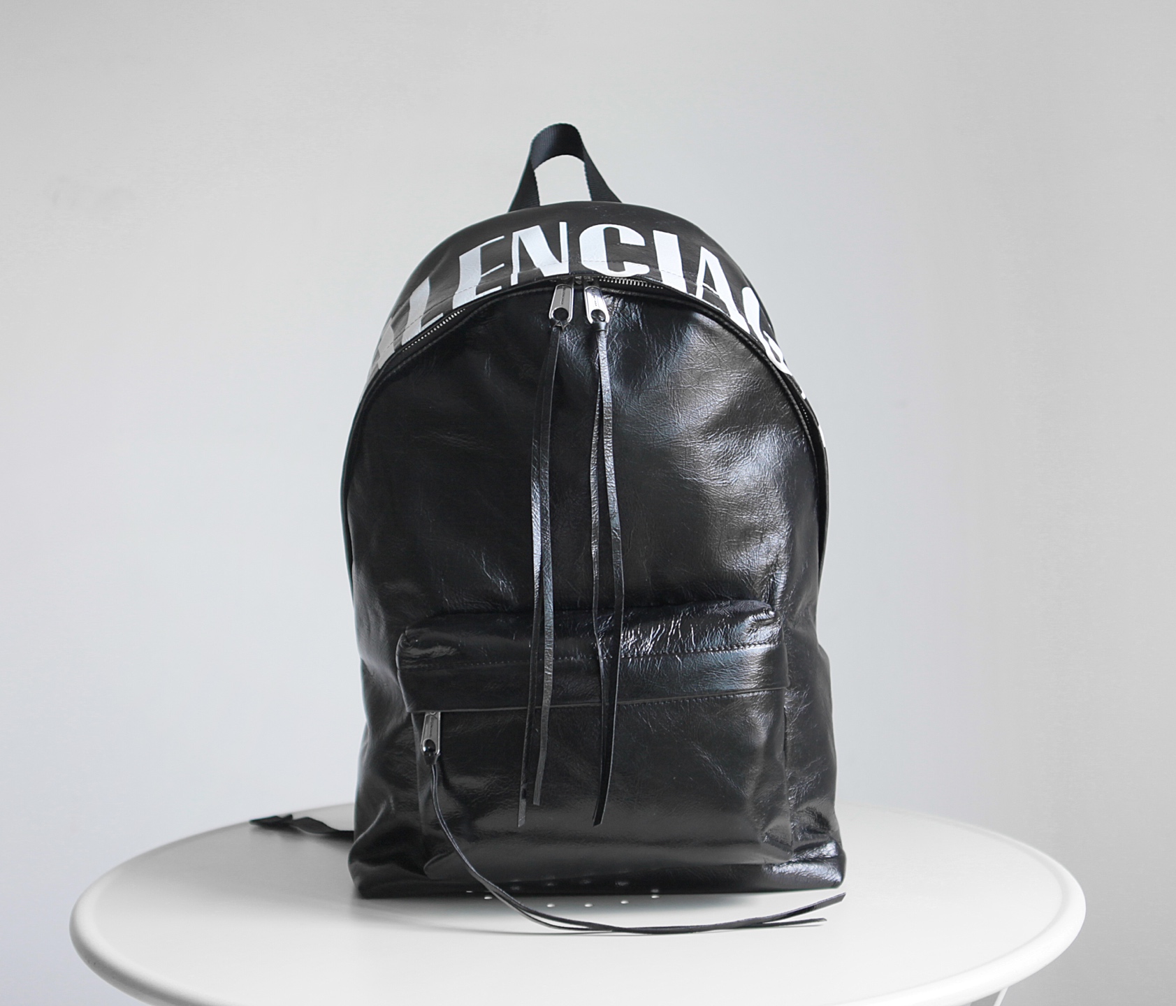NIGO Balenciaga Explorer Men's Letter Print Black Grained Cowhide Leather Backpack Bag Bags #nigo77713