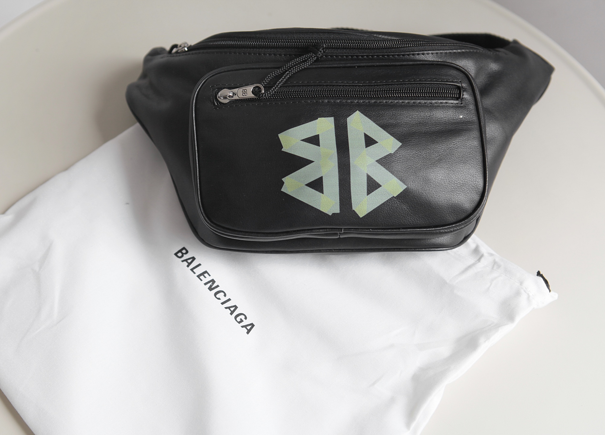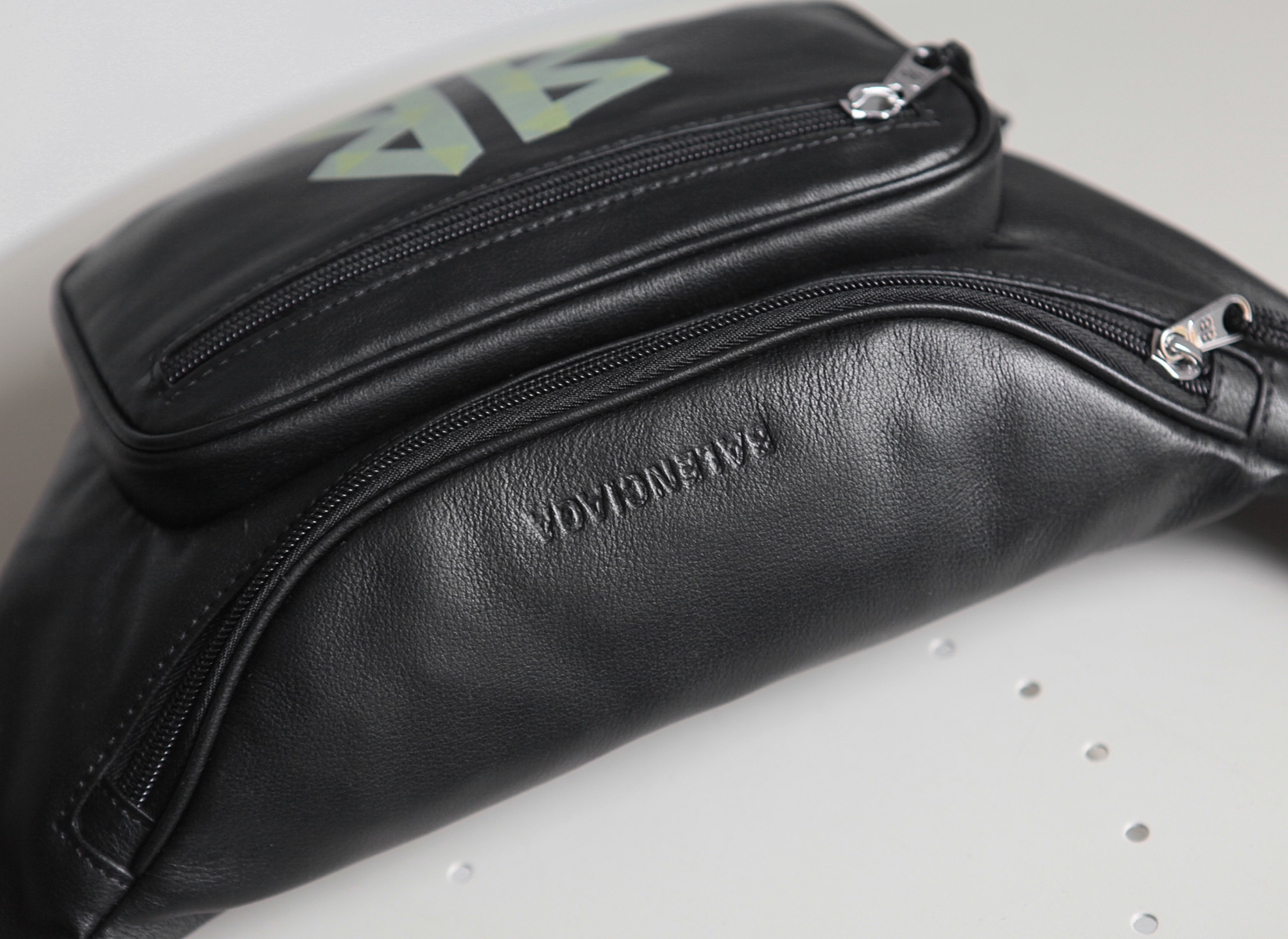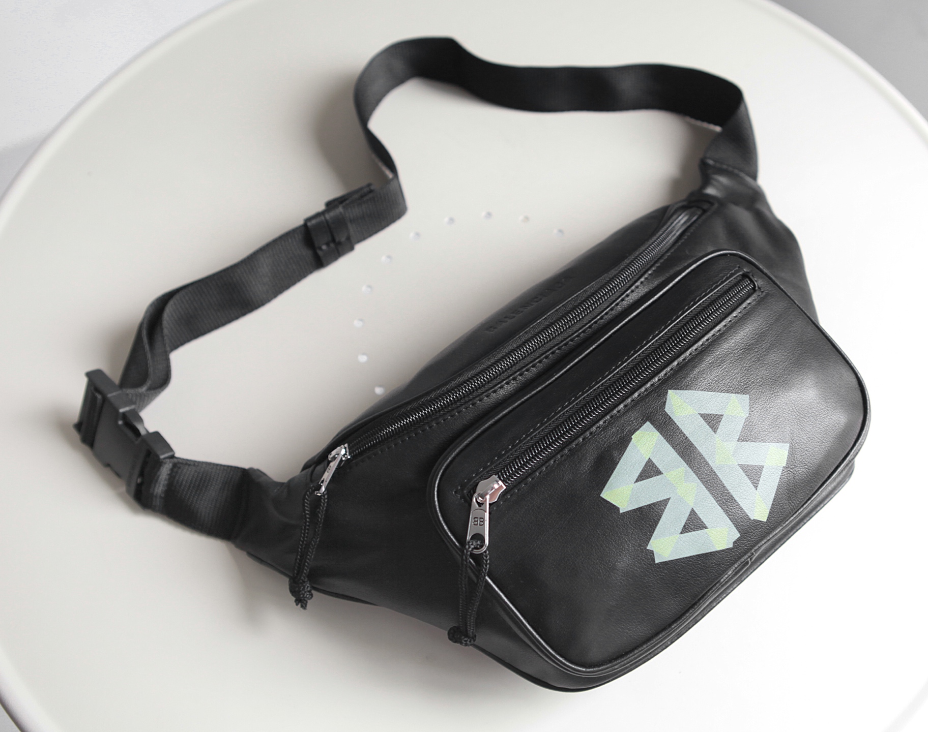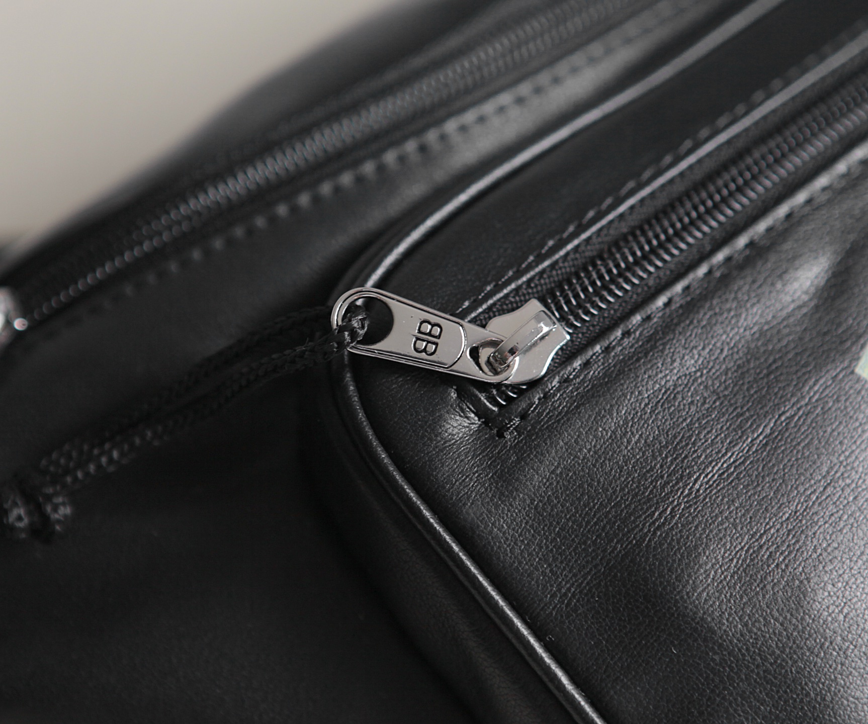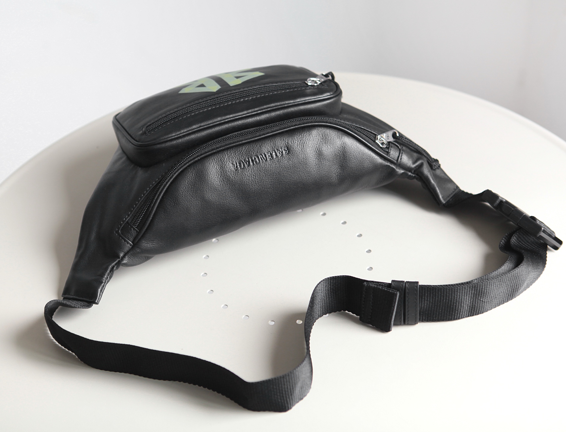 NIGO Balenciaga Explorer Men's Letter Print Zipper Closure Black Grained Cowhide Leather Single Shoulder Crossbody Belt Bag Bags #nigo77711