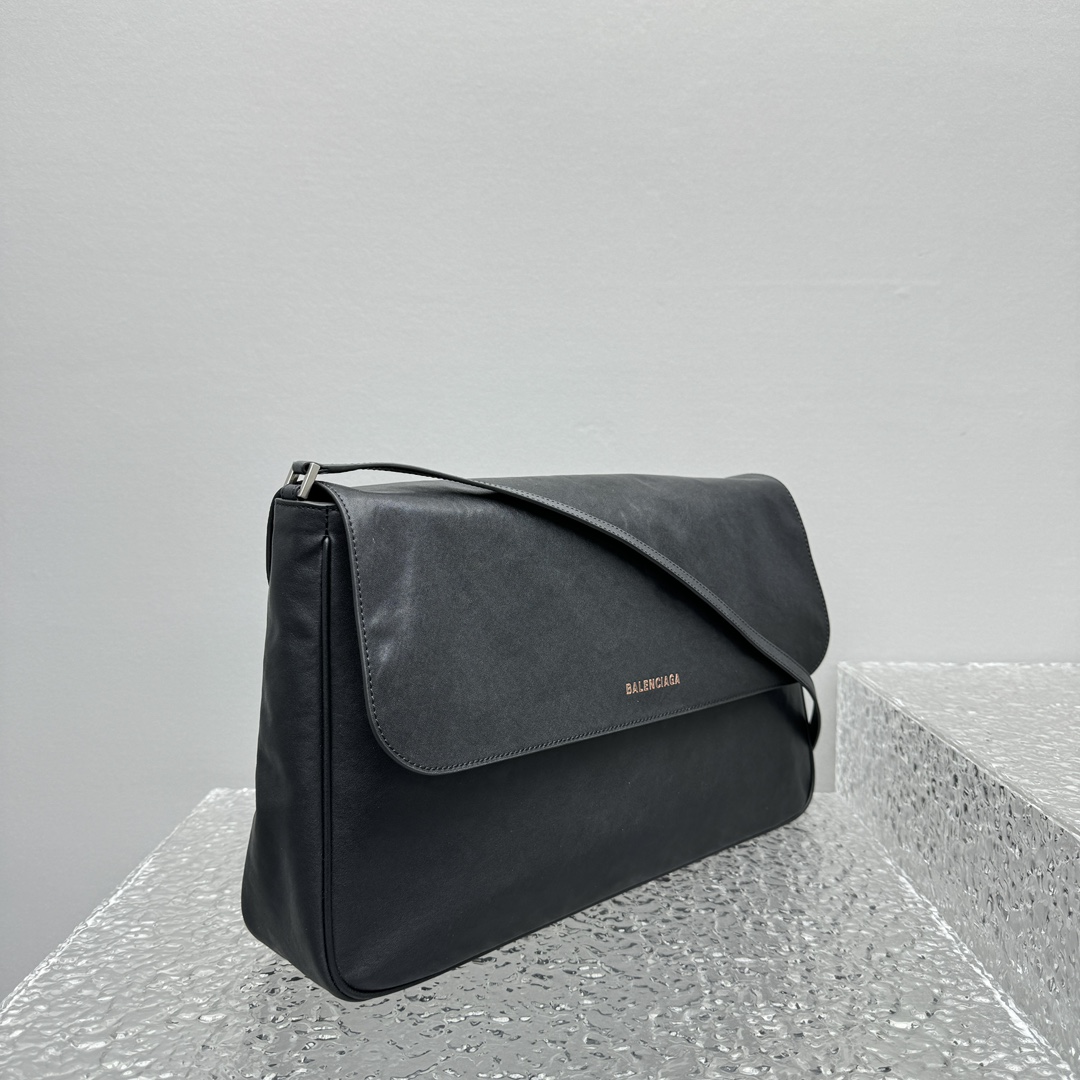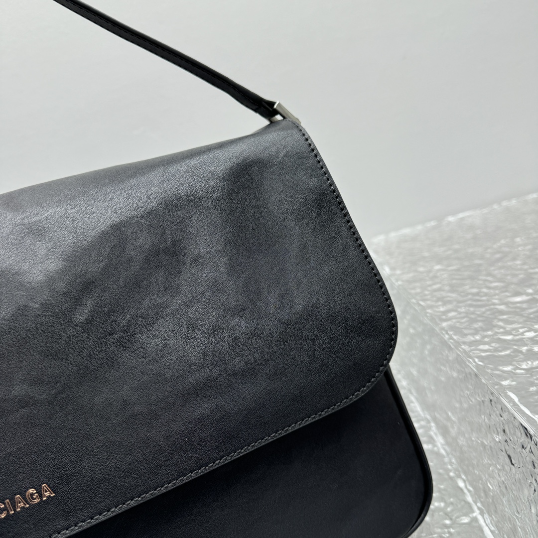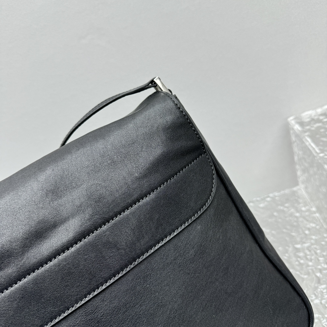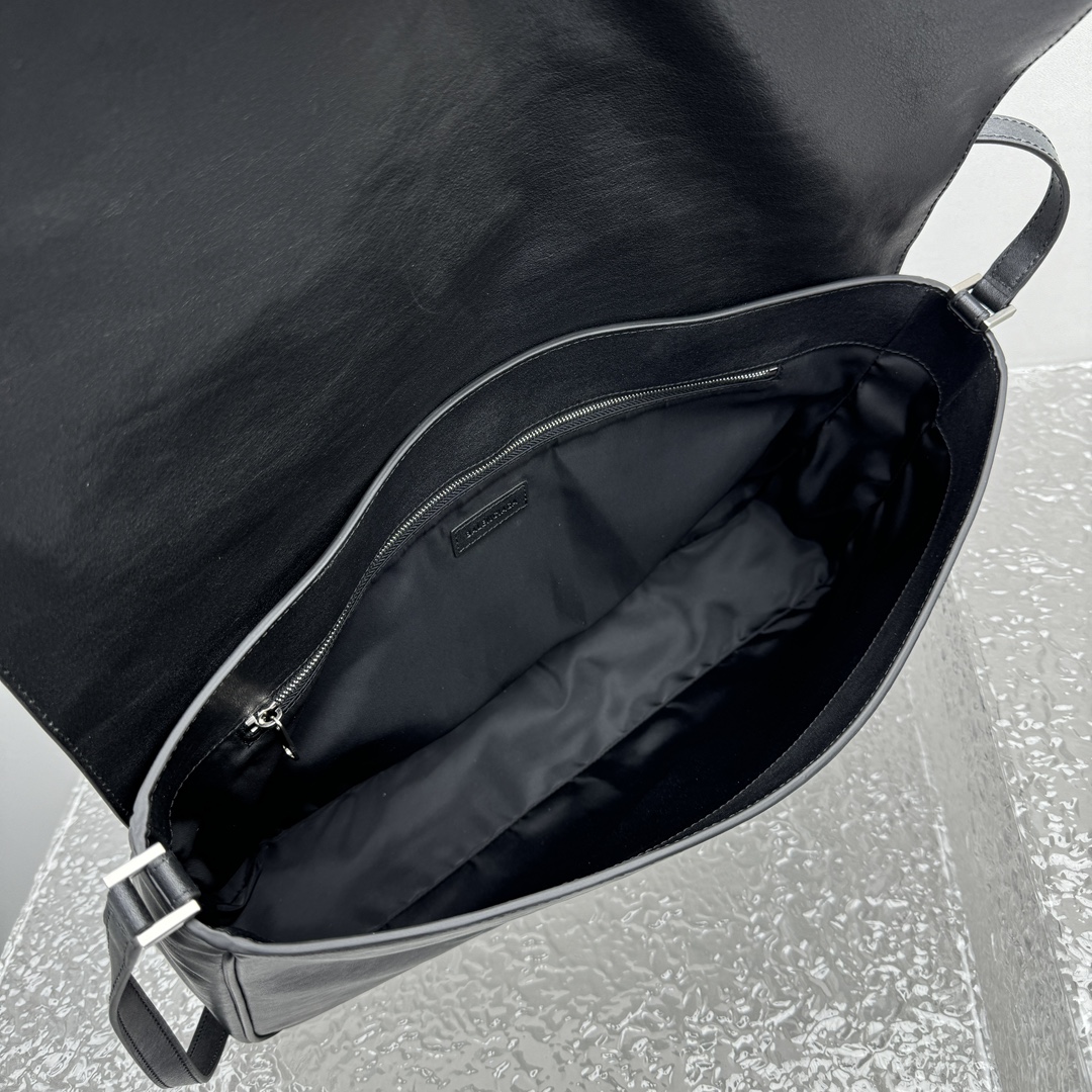 NIGO Balenciaga Grungy Men's Black Washed Smooth Cow Leather Medium Messenger Bag Crossbody Shoulder Bags #nigo74356