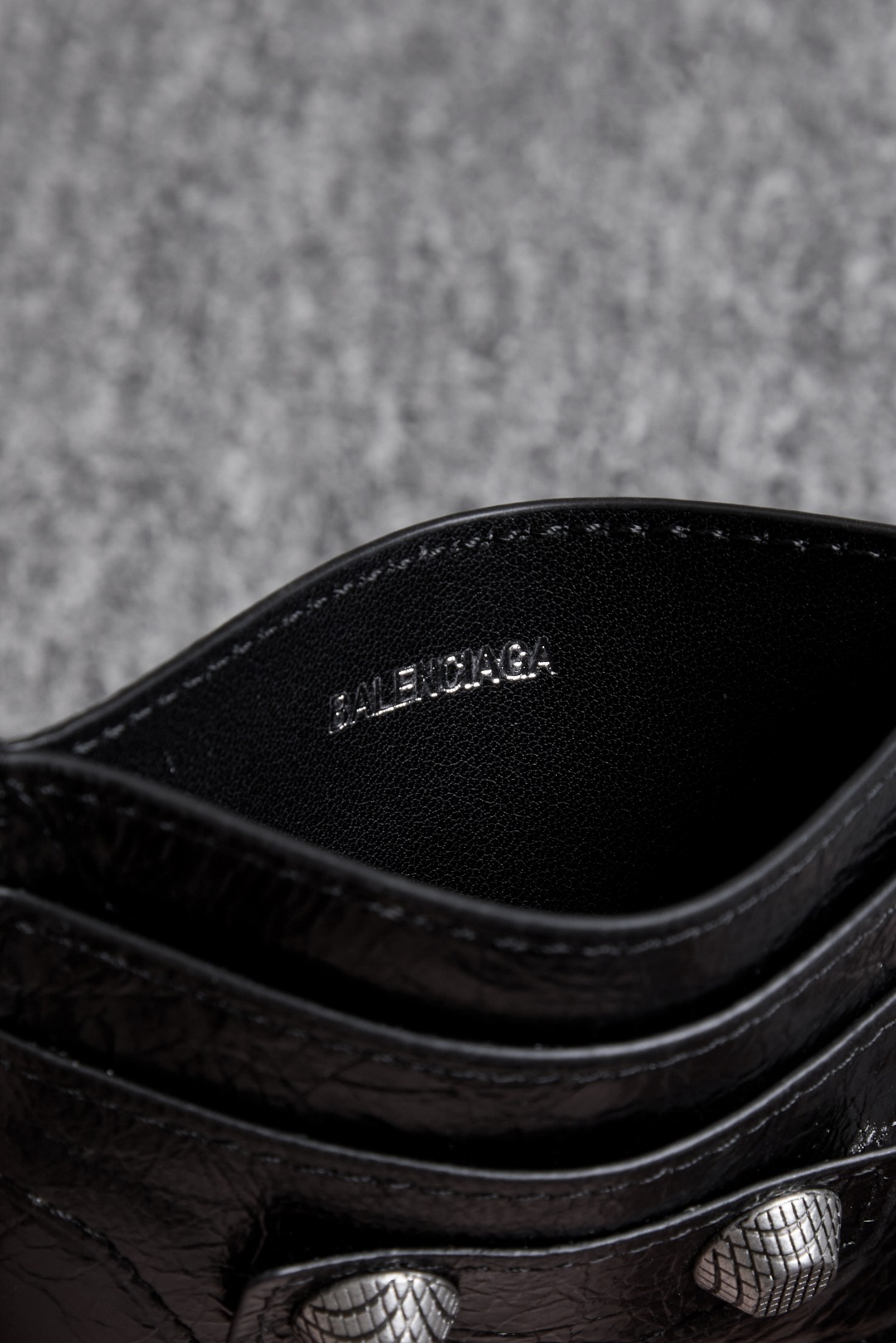 NIGO Balenciaga Le Cagole Distressed Silver Metal Accessory Logo Wallet Fine Grain Leather Card Holder Card Case Women's Black Bag Bags 764332210KR1000 Ngvp #nigo1995