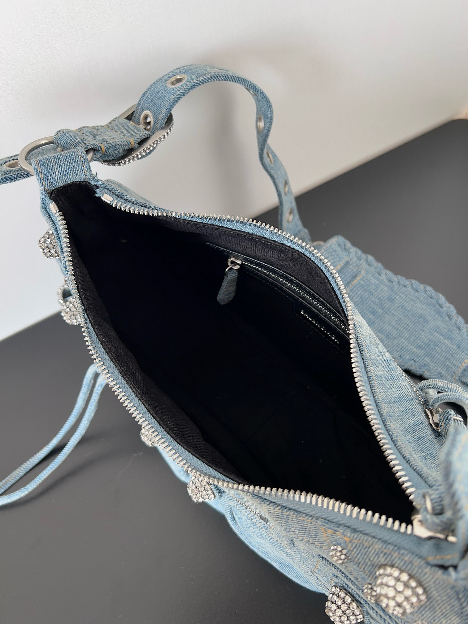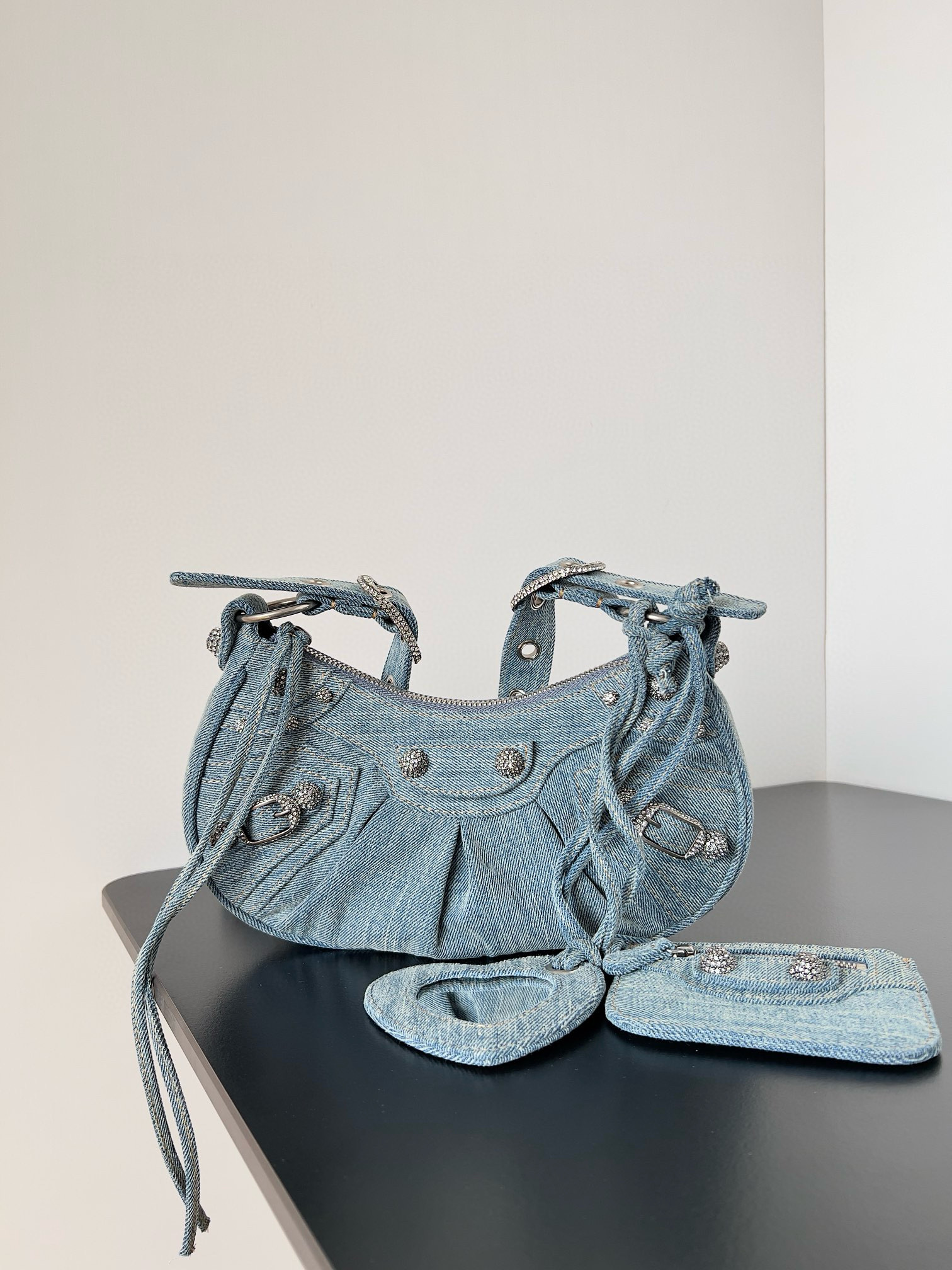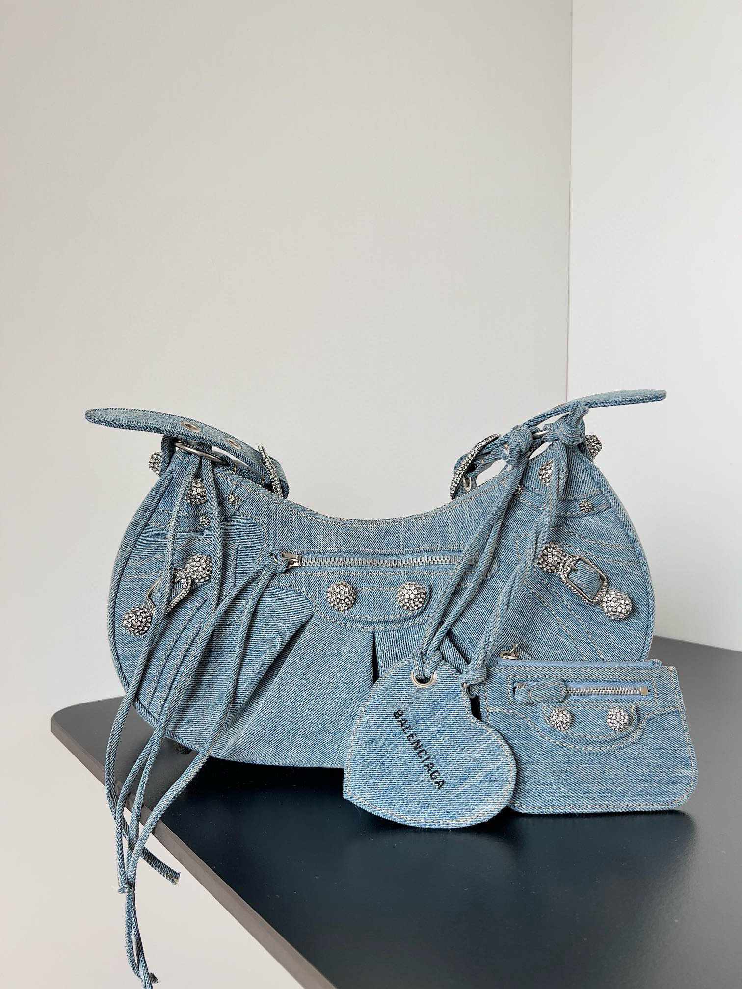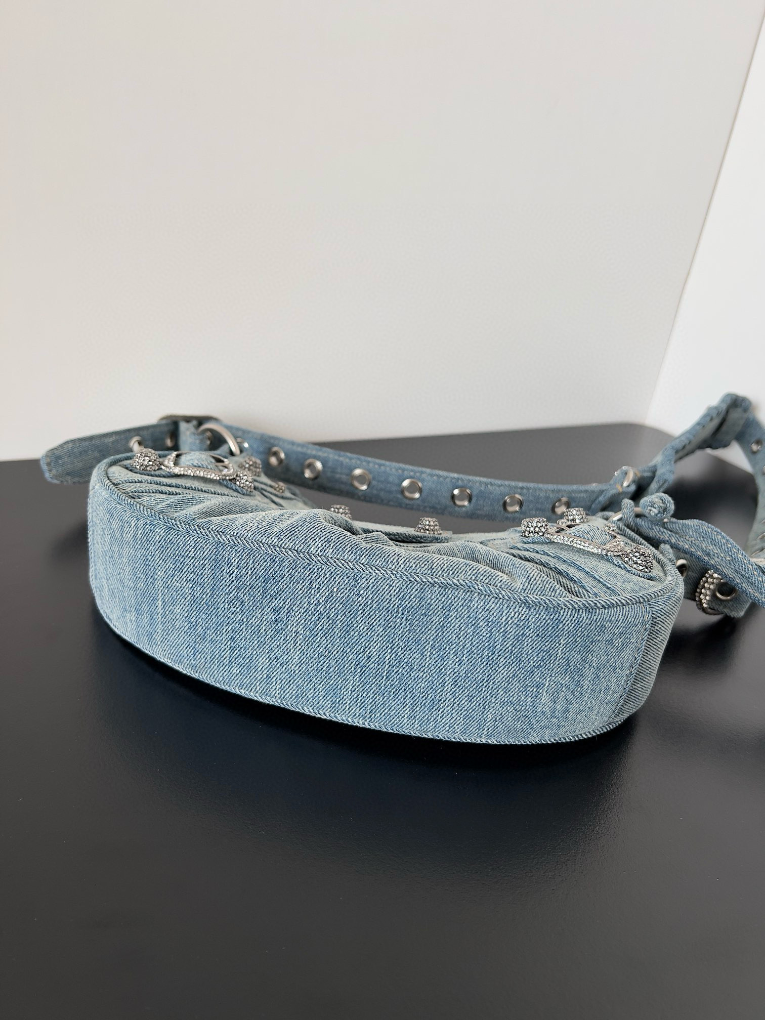 NIGO Balenciaga Le Cagole Women's Solid Colour Washed Worn Edge Adjustable Shoulder Strap Denim Shoulder Bag Armpit Bags #nigo76769