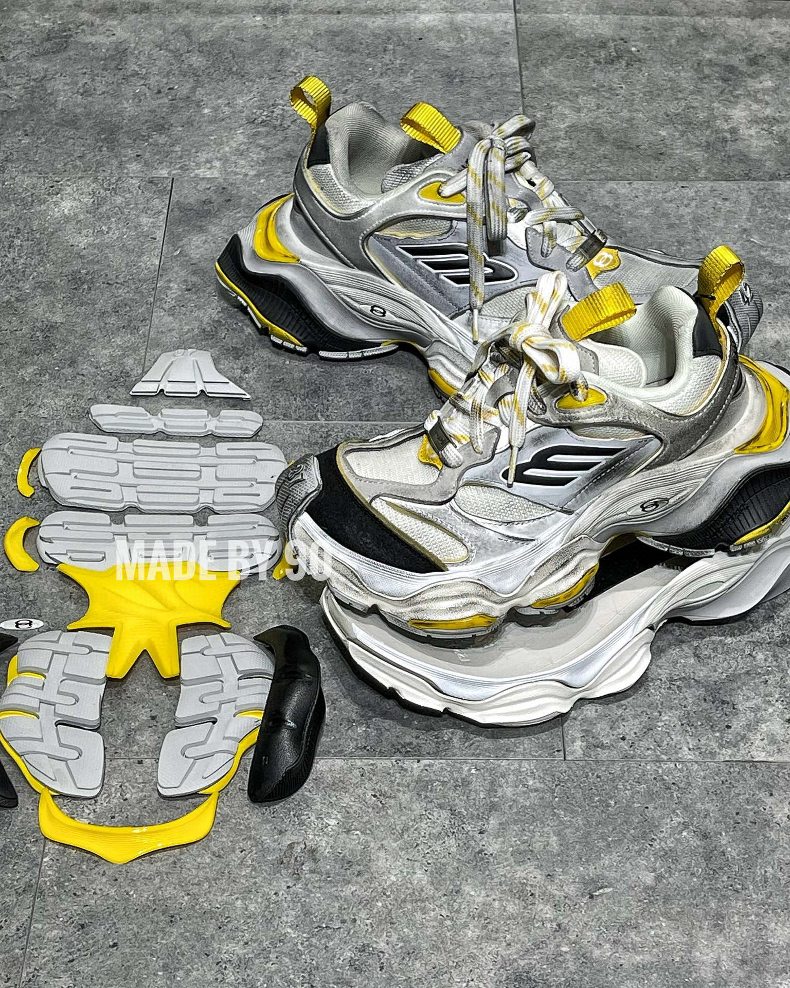 White, yellow and silver colour matching first shipment, the old process is completed by hand, the old degree of each shoe, the size and scope of the abrasion has a certain degree of variability, which is normal.