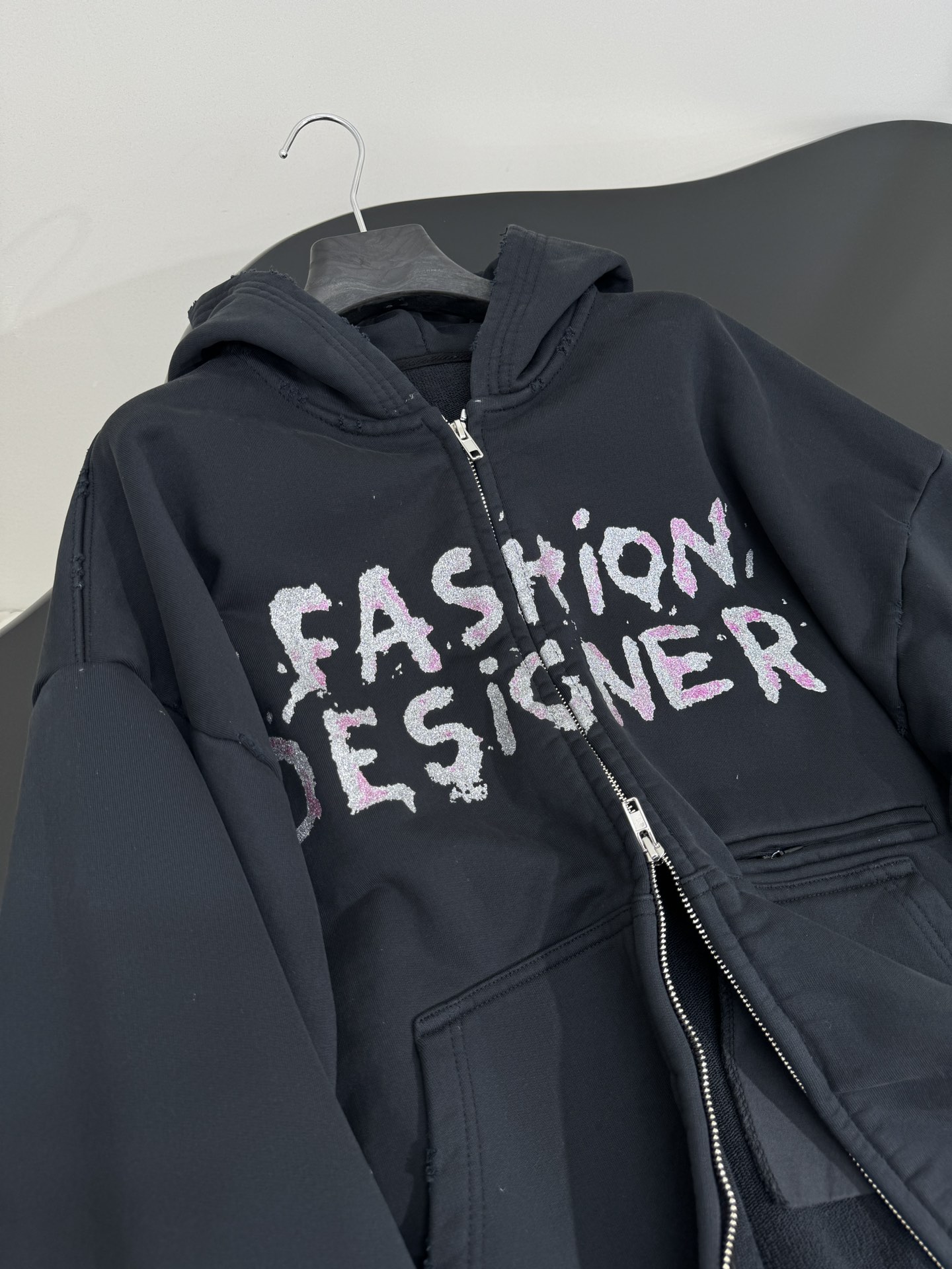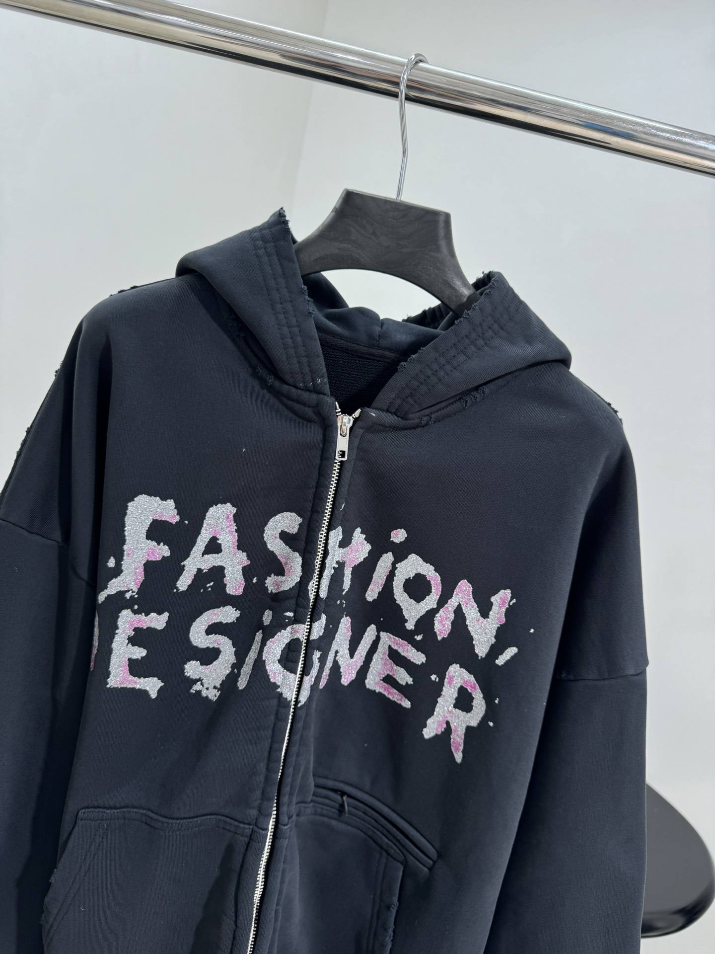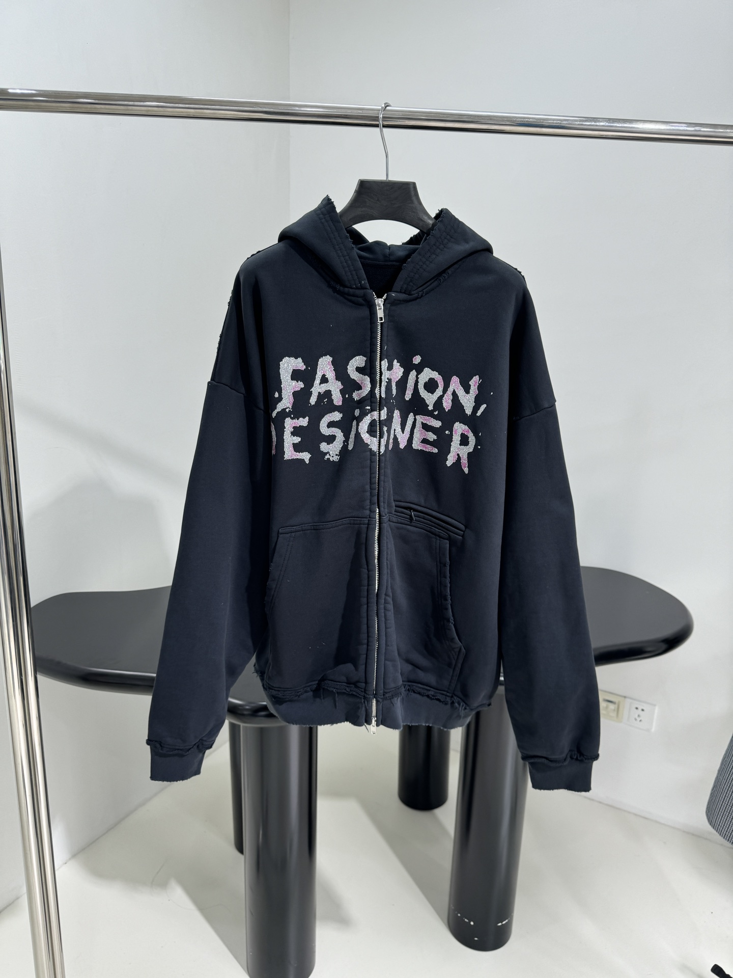 NIGO Balenciaga Men's And Women's Retro High Street Fashion Designer Pulled Zipper Large Fit Hoodie With Letter Print Faded Black Sweatshirt Ngvp #nigo2285