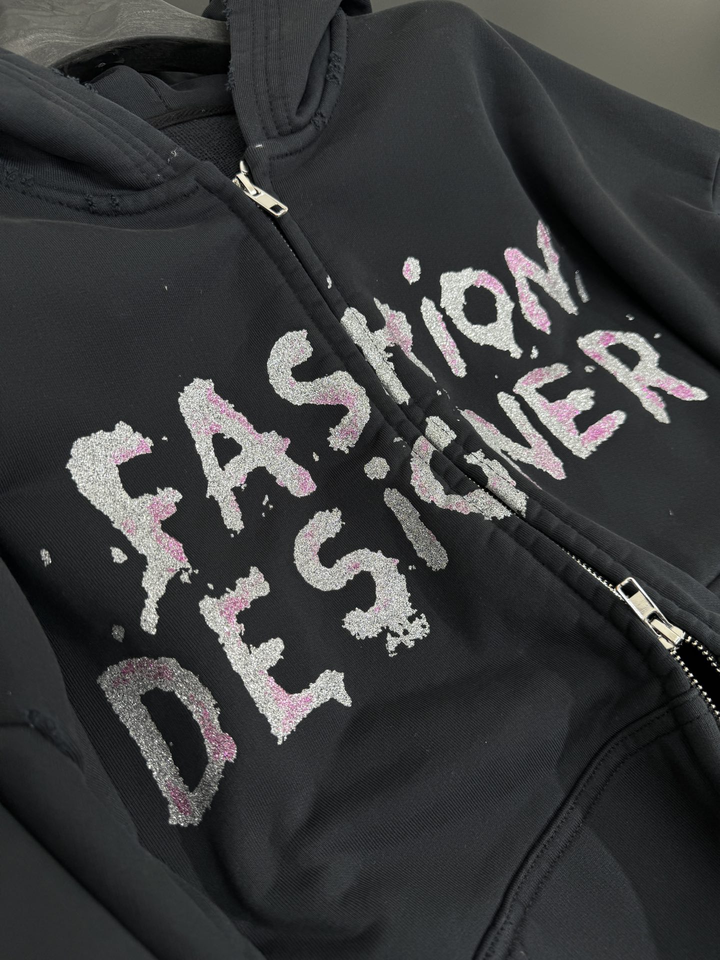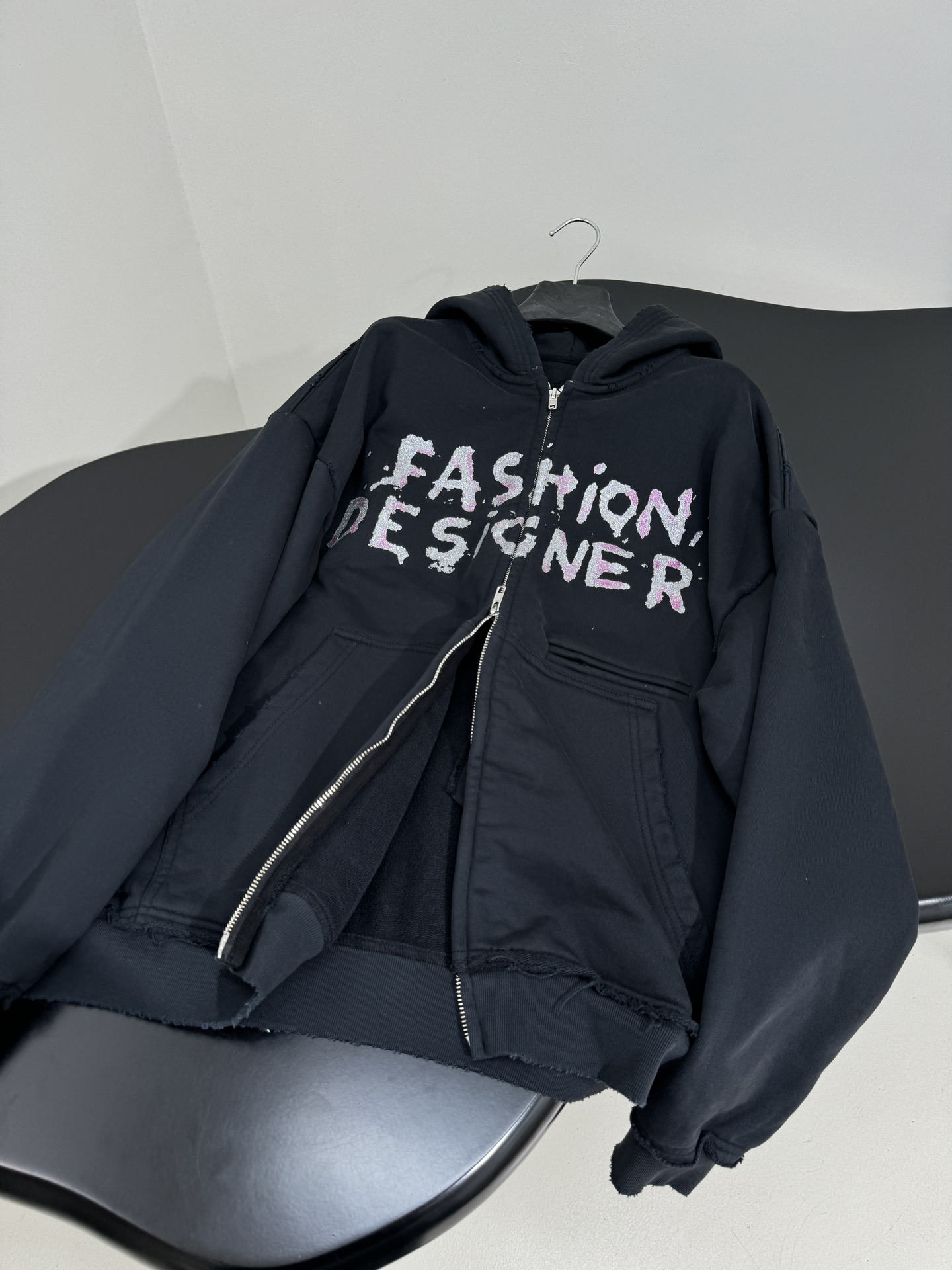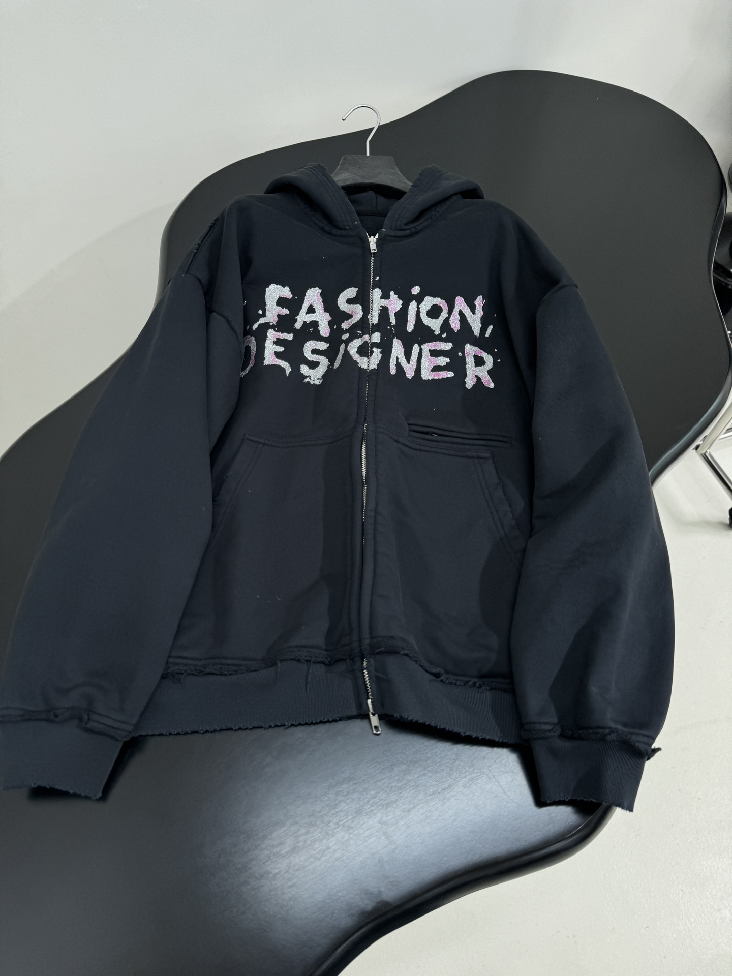 NIGO Balenciaga Men's And Women's Retro High Street Fashion Designer Pulled Zipper Large Fit Hoodie With Letter Print Faded Black Sweatshirt Ngvp #nigo2285