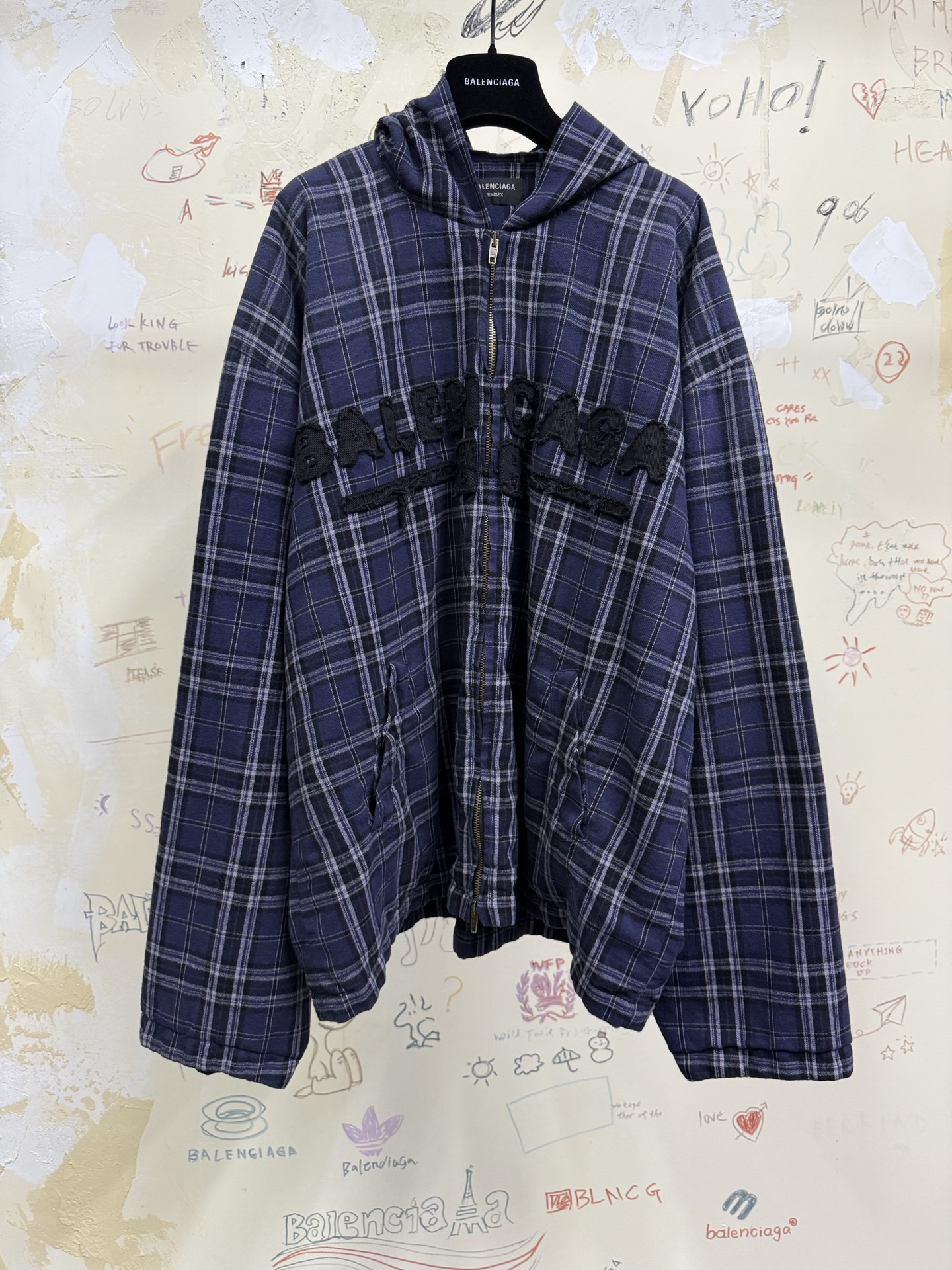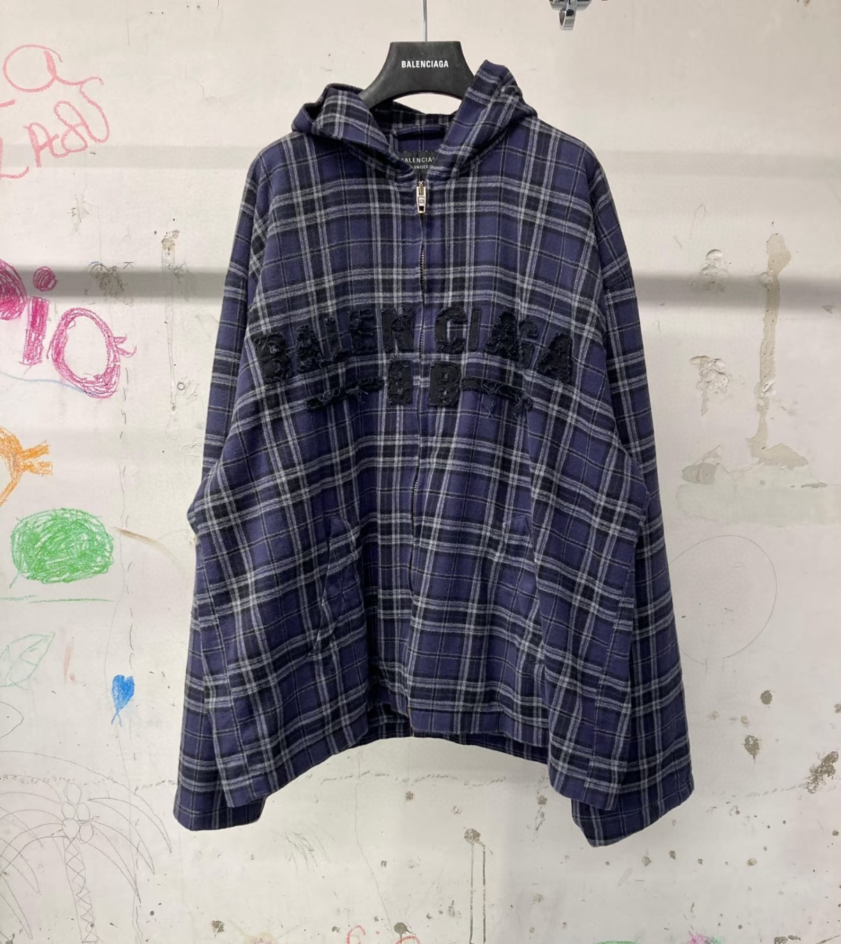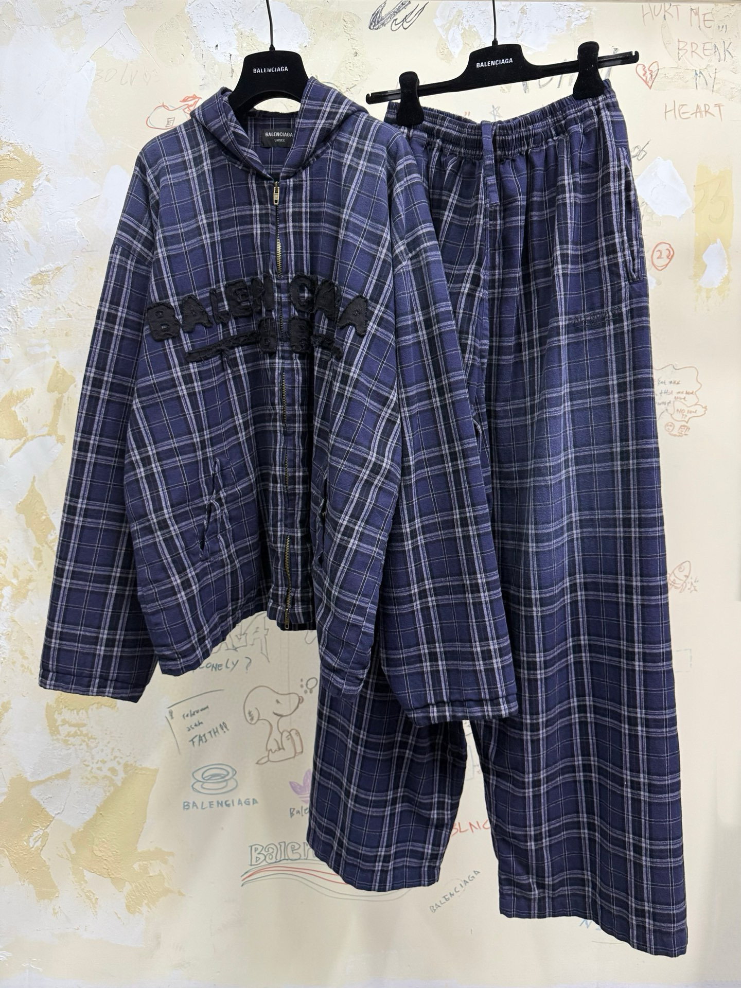 NIGO Balenciaga Men's And Women's Spring And Fall Embroidered Letter Print Purple Checkered Hooded Zipper Long Sleeve Jacket Pants Suit Set #nigo76546