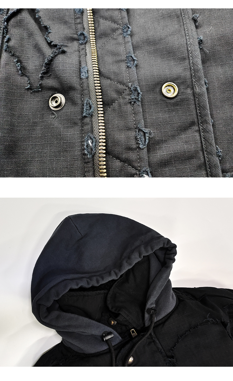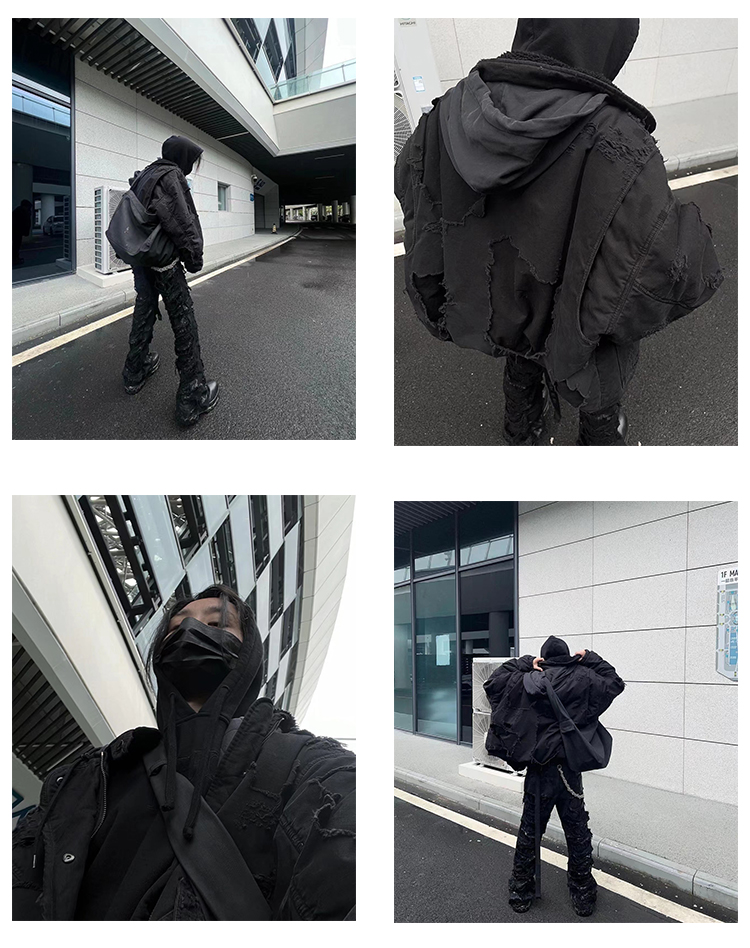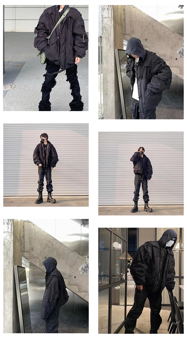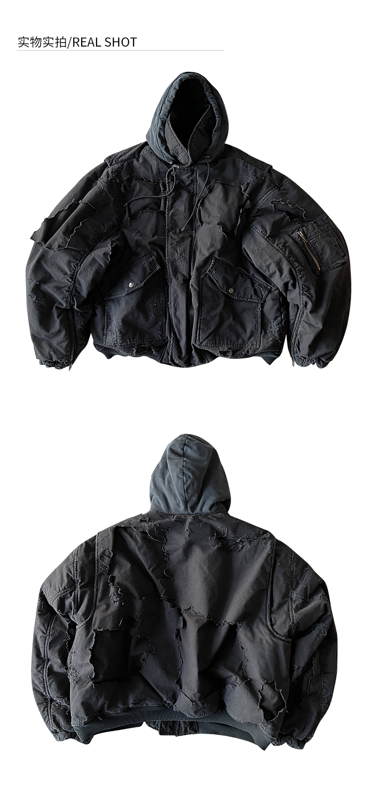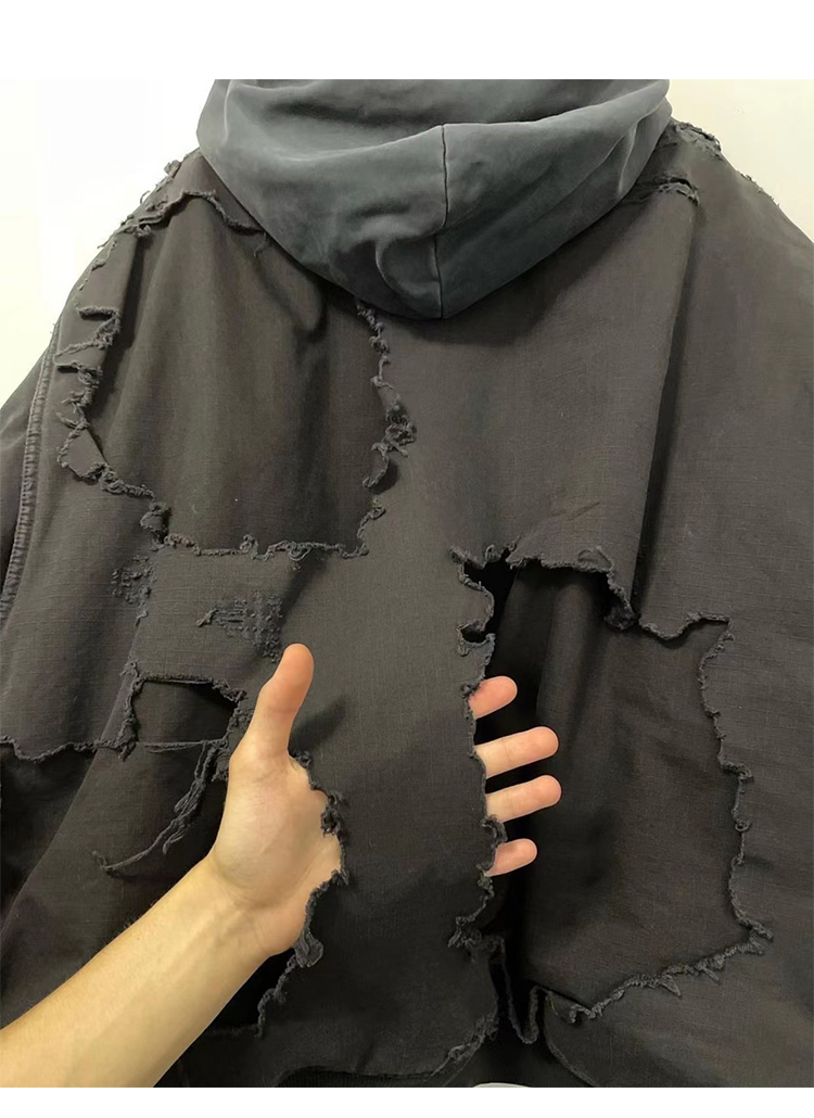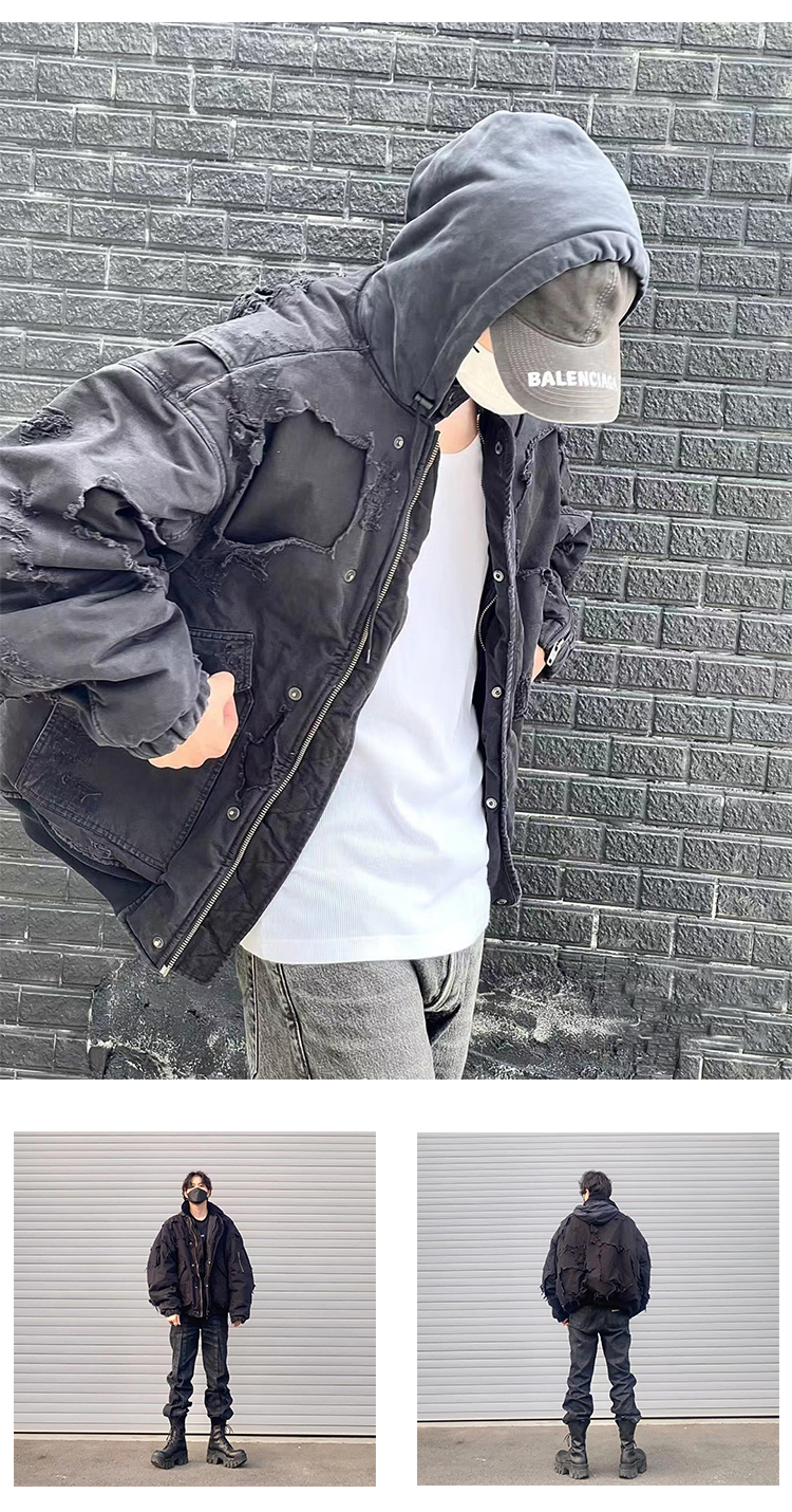 NIGO Balenciaga Men's Autumn And Winter Black Distressed Washed Zippered Hoodie Hooded Jacket Cotton Jacket Ngvp #nigo8613