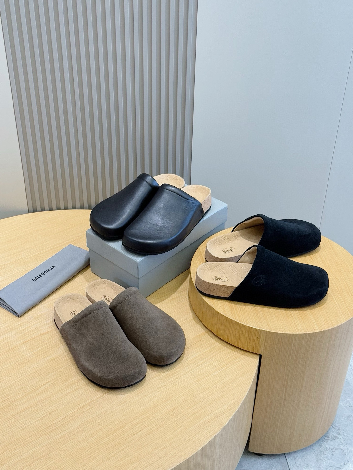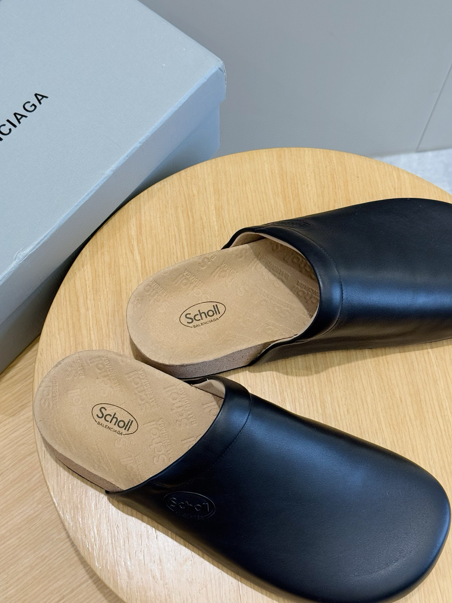 NIGO Balenciaga Men's Balenciaga I Scholl Flat Mule In Black Cowhide Flat Logo Birkenstock Shoes Fashion Temperament Trend Casual Shoes Slippers Ngvp #nigo1973