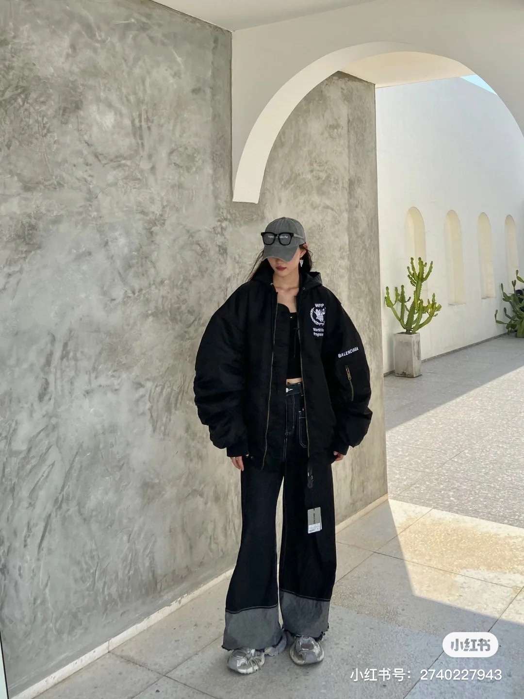 NIGO Balenciaga Men's Black Autumn/Winter Monogram Printed Loose Fit Hooded Zip Jacket #nigo73343