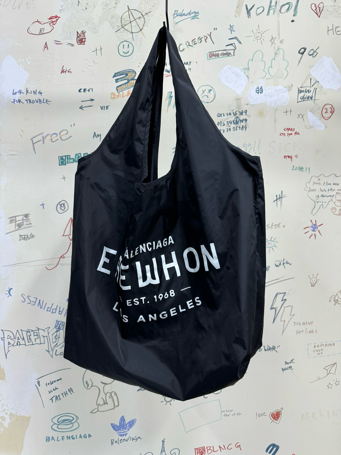 NIGO Balenciaga Men's Black Letter Logo Nylon Tote Bag Shopper Tote Handbags Bags #nigo98919